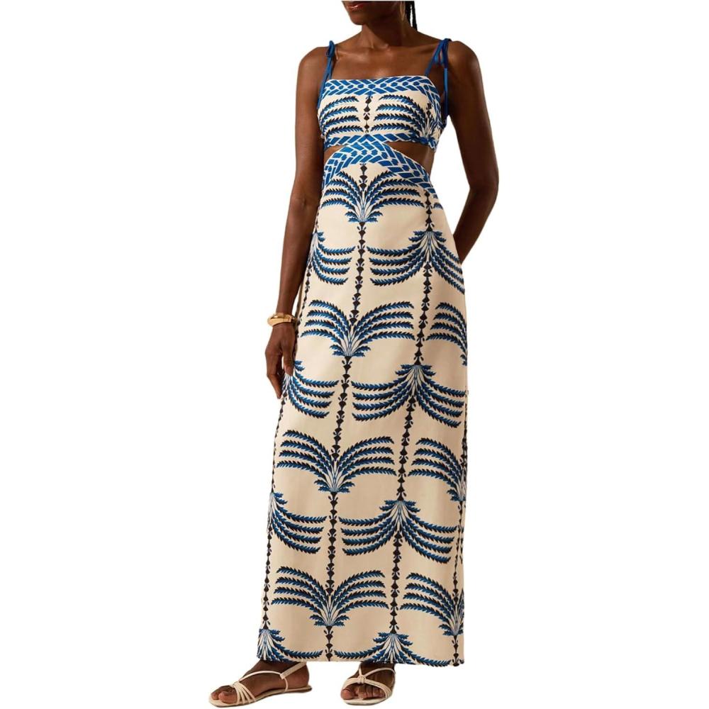 SOLY HUX Women’s Summer Maxi Dress Boho Print Tie Shoulder Spaghetti Strap Cut Out Tie Back Cami Dresses Sundress(Blue and Apricot)