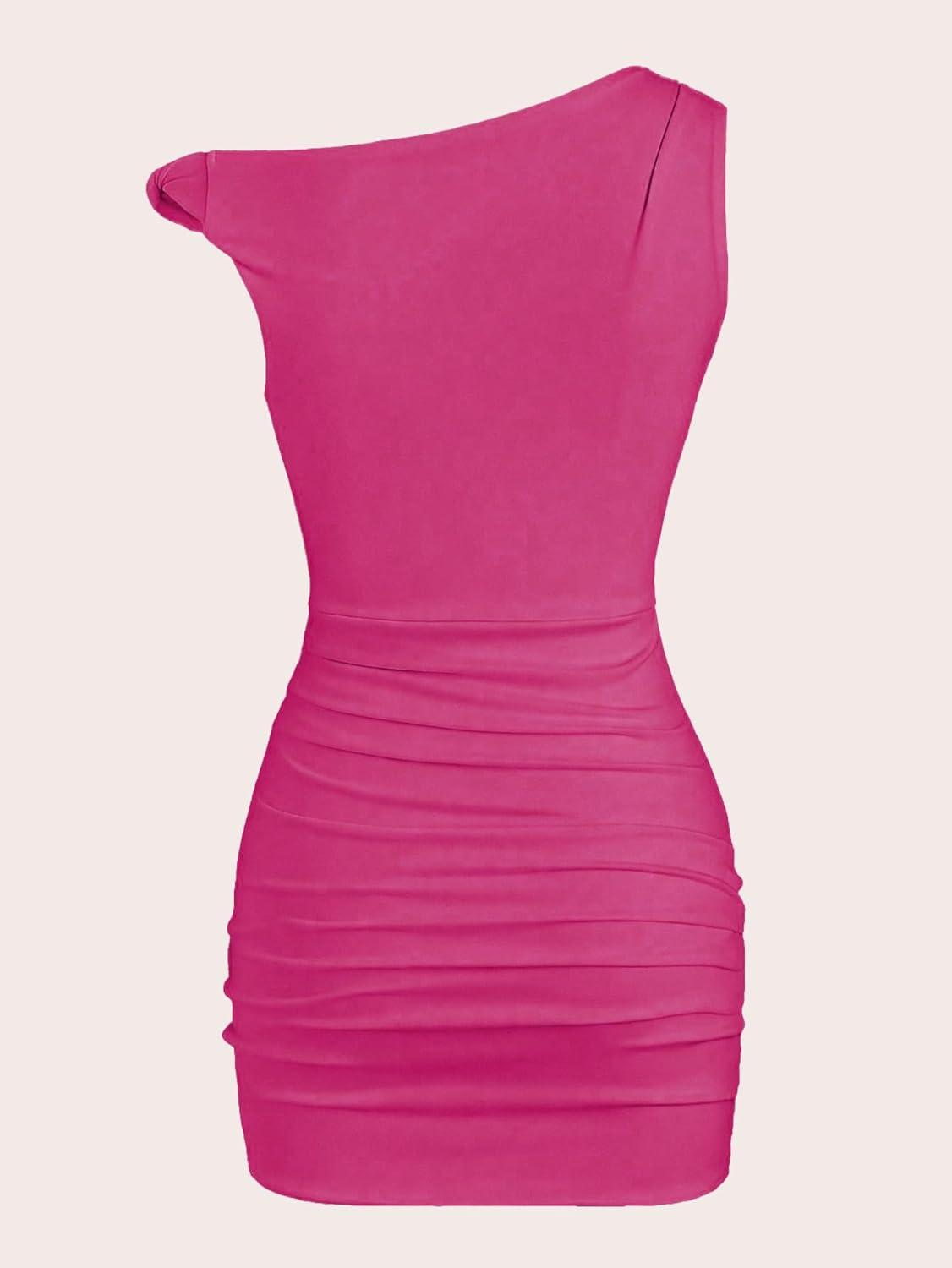 imageSOLY HUX Womens Summer Mini Dresses Off The Shoulder Ruched Bodycon Graduation Dress Sexy Going Out Party Club OutfitsSolid Pink