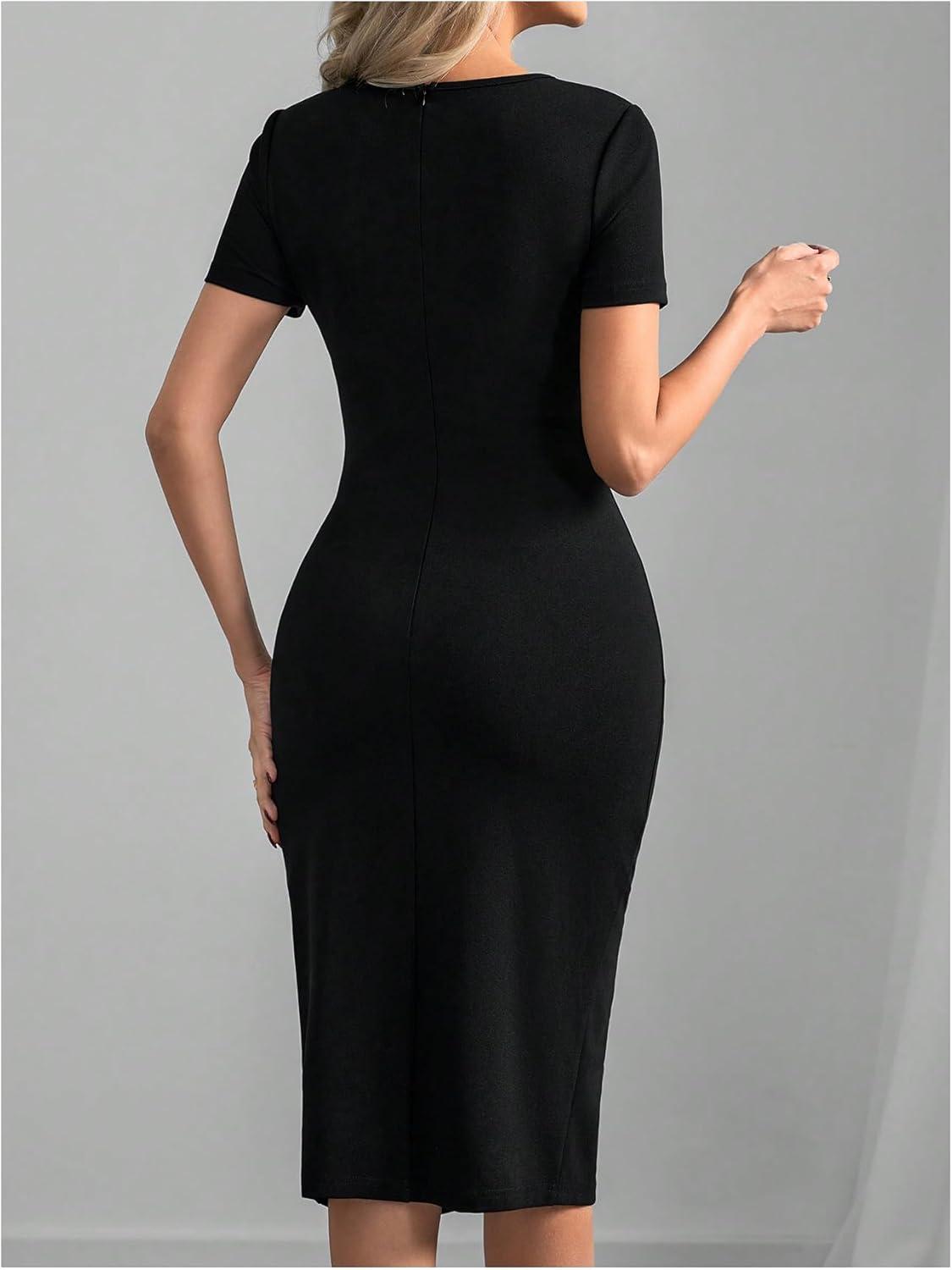 Be the first to review “SOLY HUX Women’s Summer Short Sleeve Midi Dress PU Leather Zipper Split Bodycon Dresses(Solid Black)”