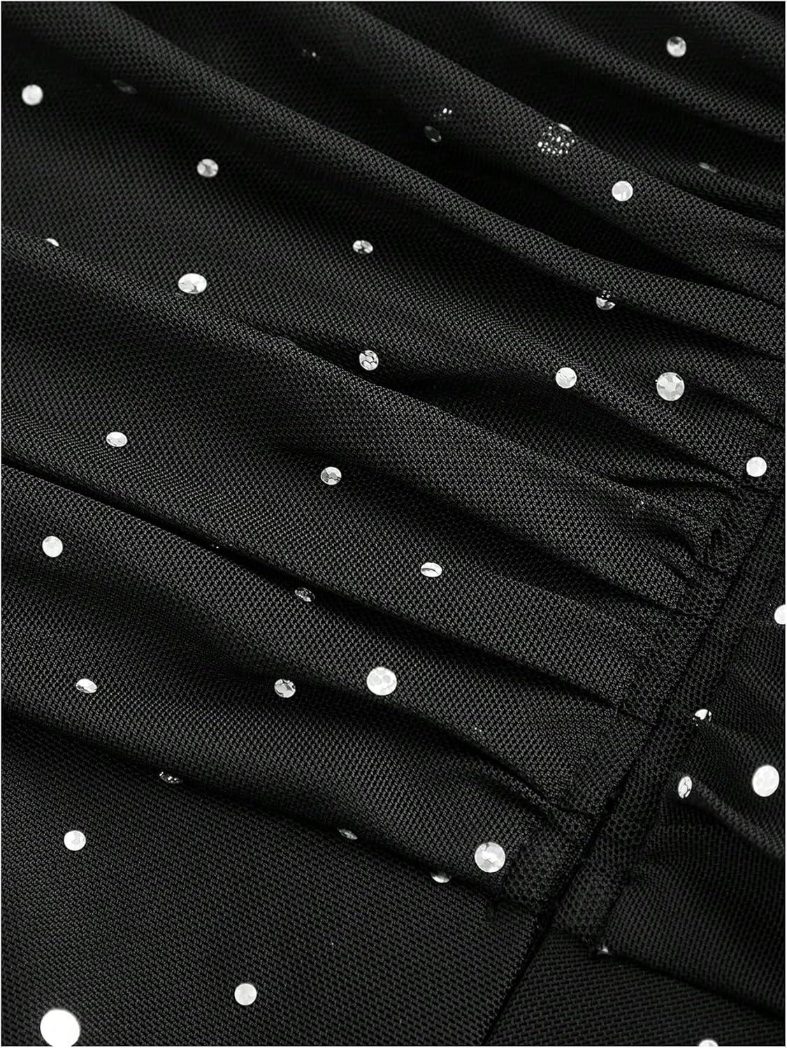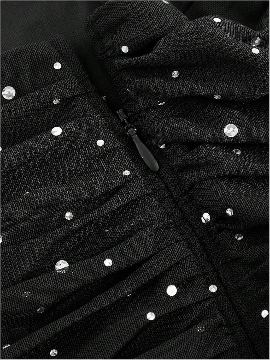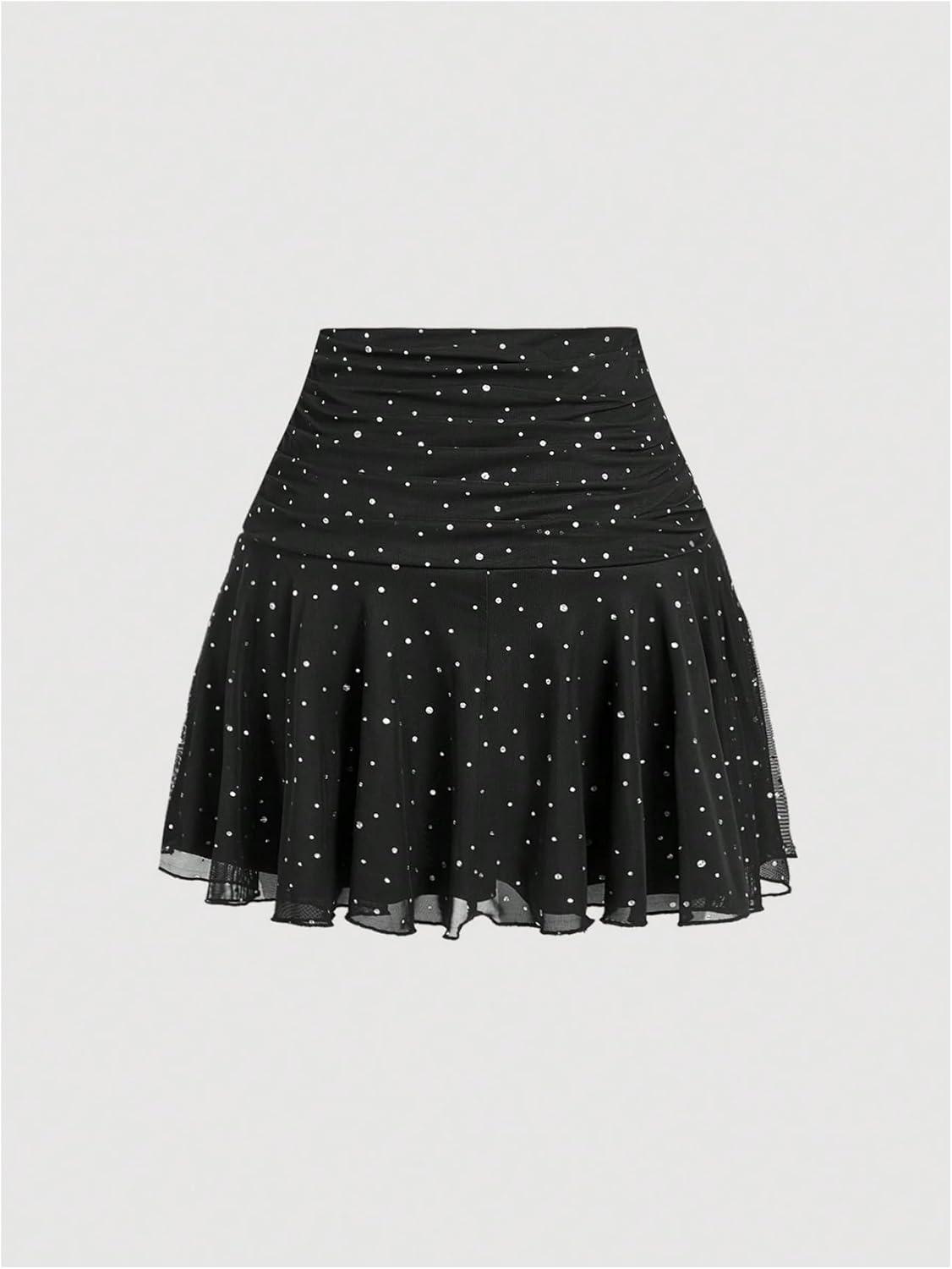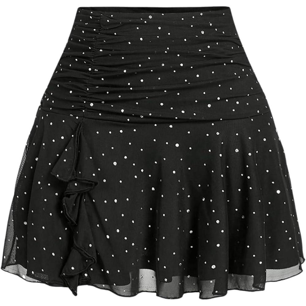 SOLY HUX Women’s Summer Skirts High Waisted Ruffle Mini Skirts Flared Flowy Beach Short Skirt(Black Rhinestone)