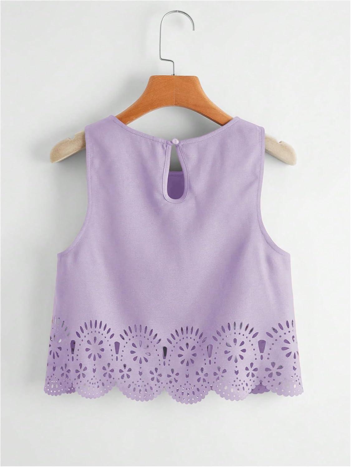SOLY HUX Women’s Summer Tank Tops Hollow Out Scallop Trim Sleeveless Vest Crop Top(Mauve Purple)