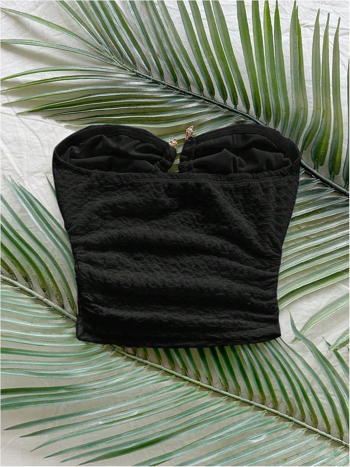 SOLY HUX Women’s Summer Tube Tops Strapless Sleeveless Cut Out Ruched Bandeau Y2k Going Out Crop Top Plain Black Small