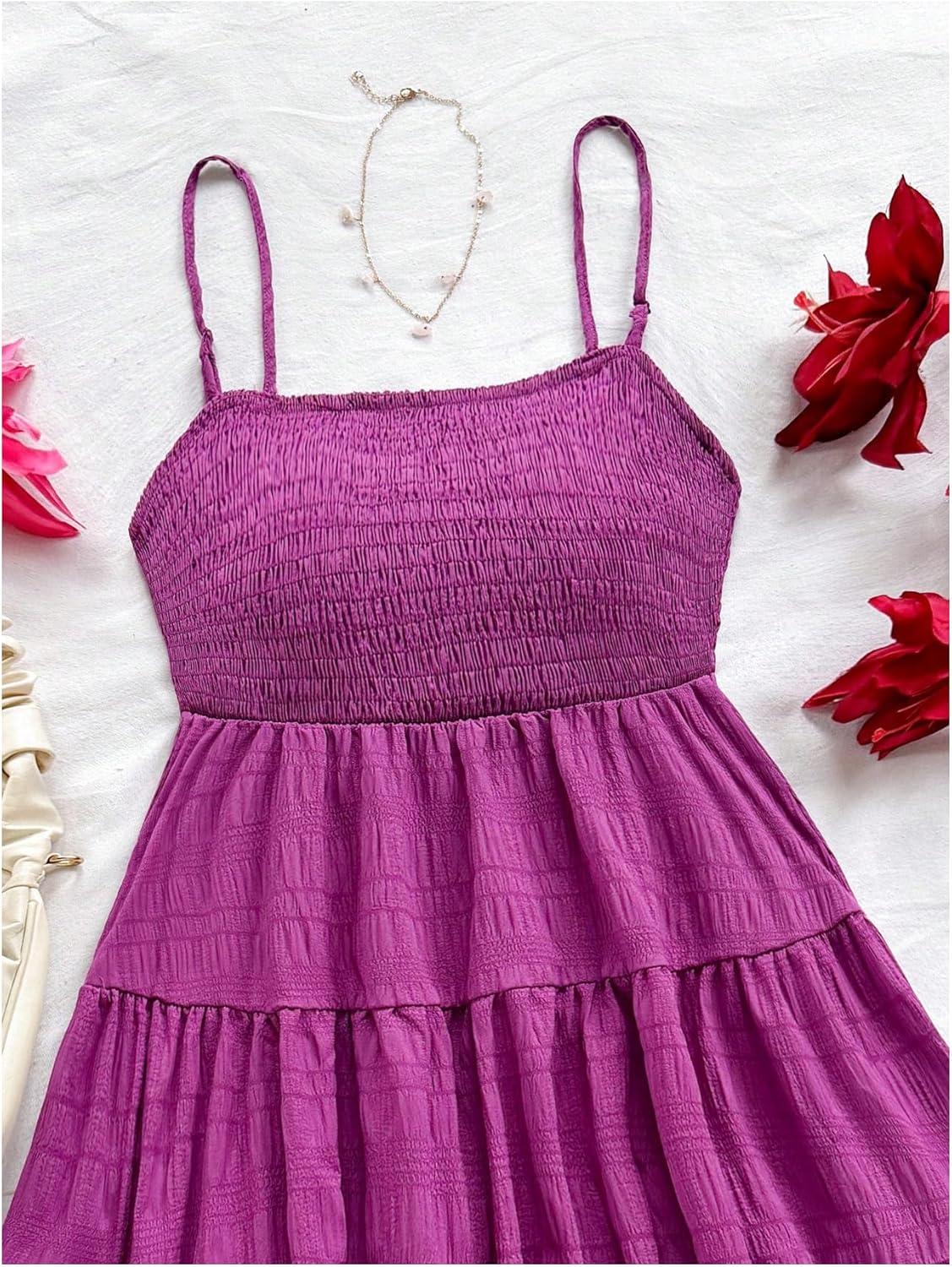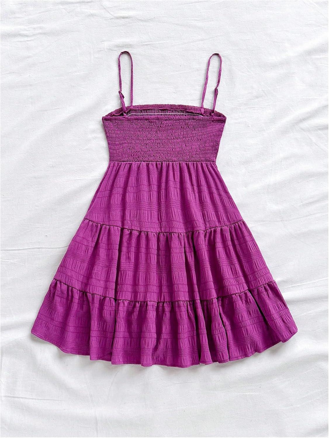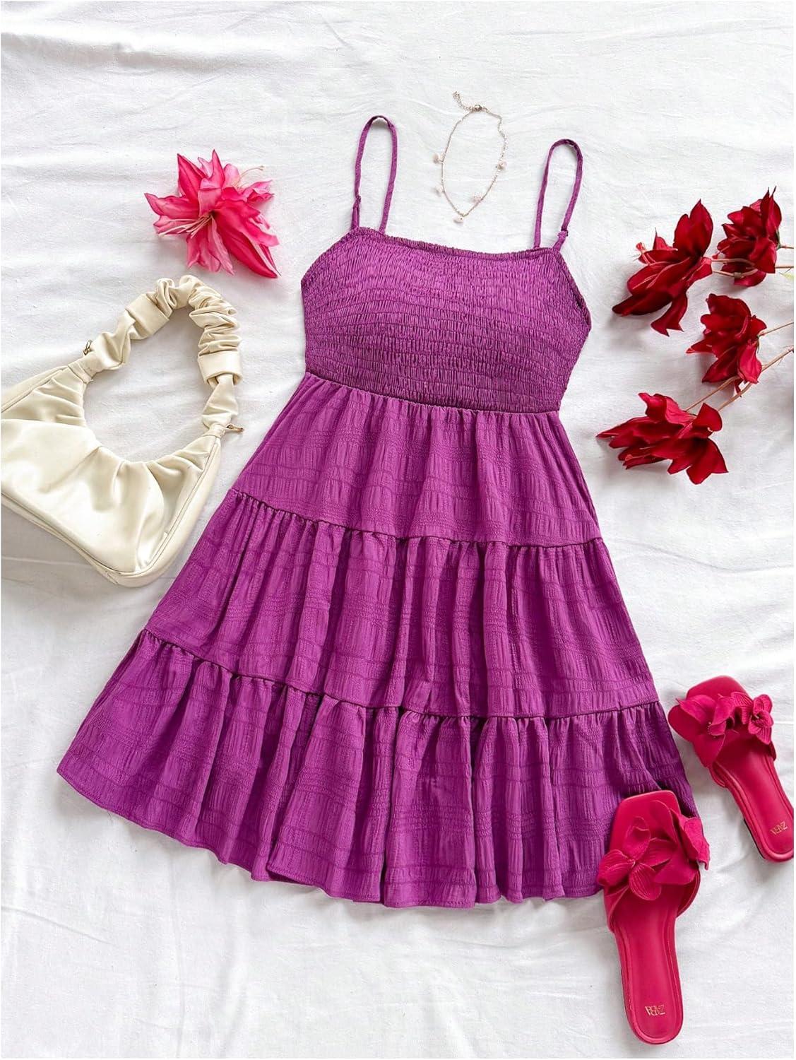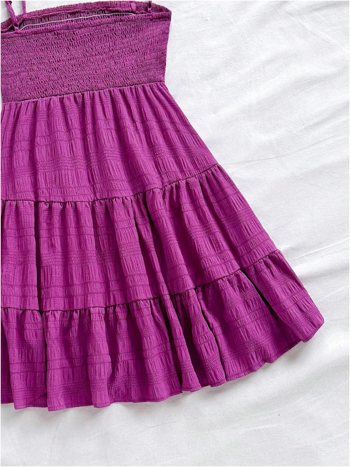 SOLY HUX Women’s Sundress Smock Cami Mini Dress Sleeveless Swing A Line Short Dresses Casual Cute Summer Dresses(Pure Purple)