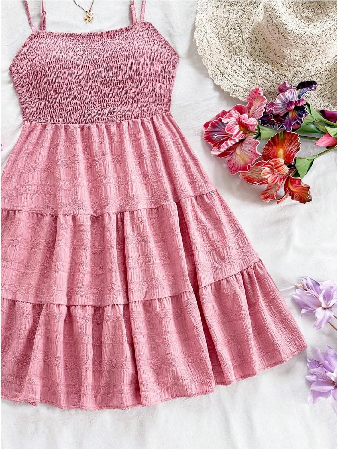 SOLY HUX Women’s Sundress Smock Cami Mini Dress Sleeveless Swing A Line Short Dresses Casual Cute Summer Dresses(Solid Dusty Pink)