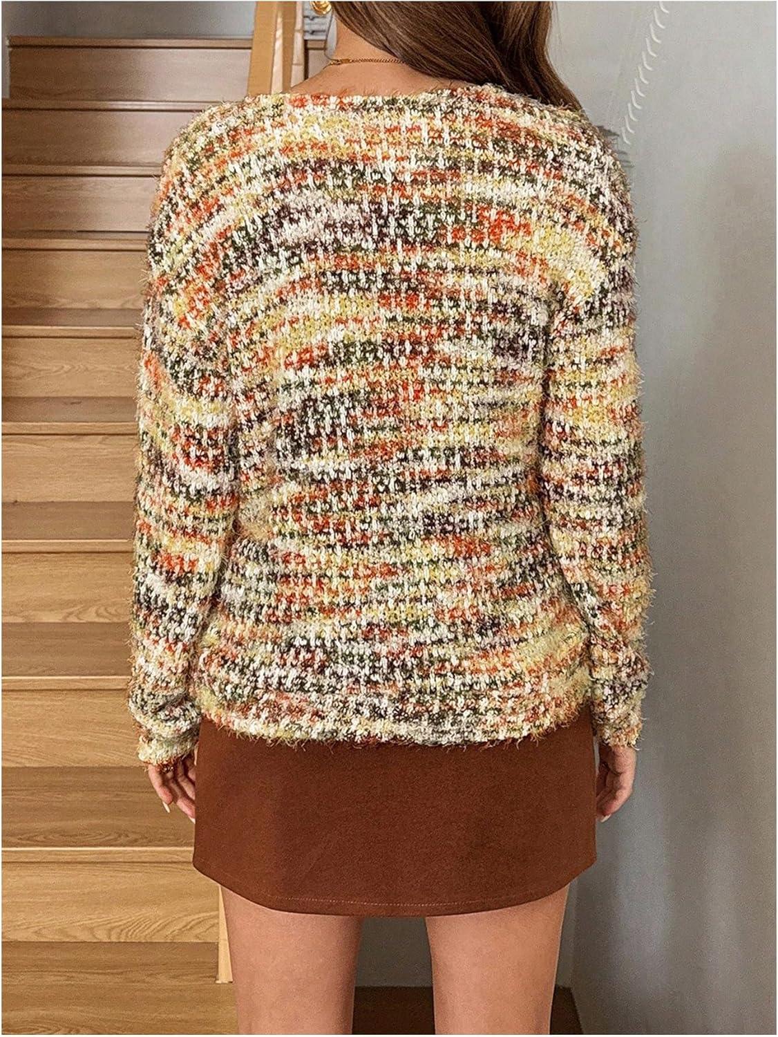 SOLY HUX Women’s Sweaters Rainbow Pom V Neck Long Sleeve Knit Fall Trendy Pullover Sweater Tops(Multicolor Fuzzy)