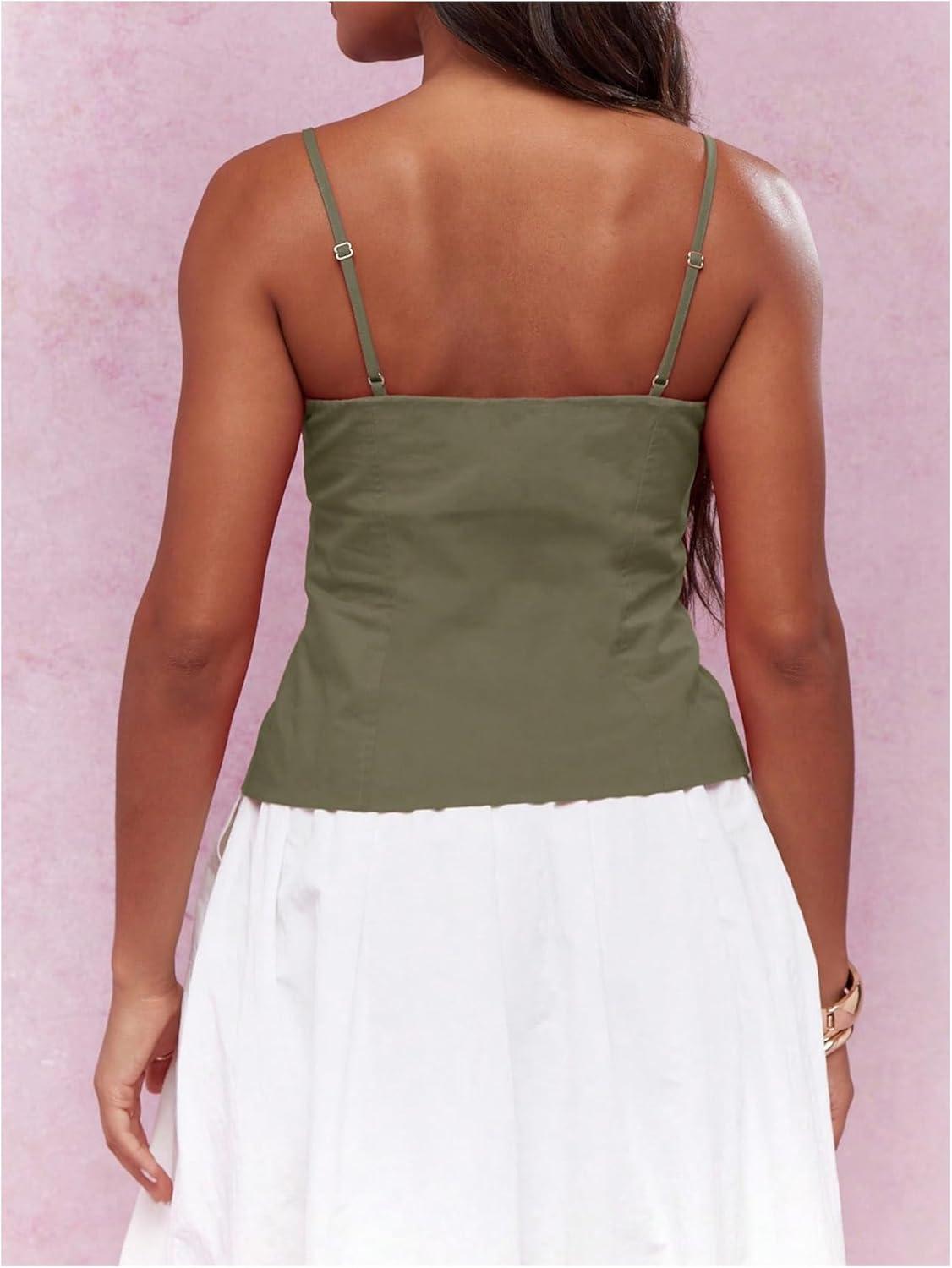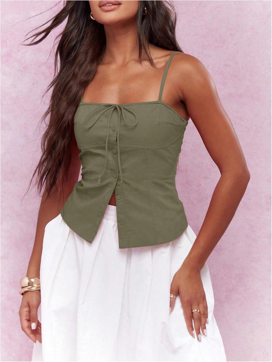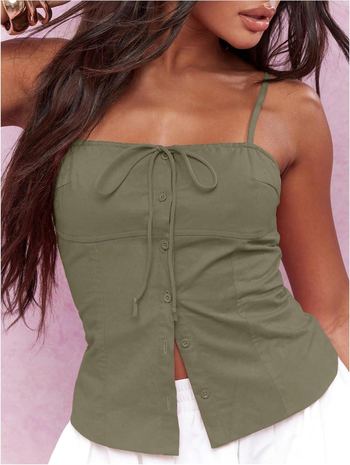 SOLY HUX Women’s Tie Front Button Down Cami Top Y2k Spaghetti Strap Bustier Corset Tops Camisole(Plain Green)