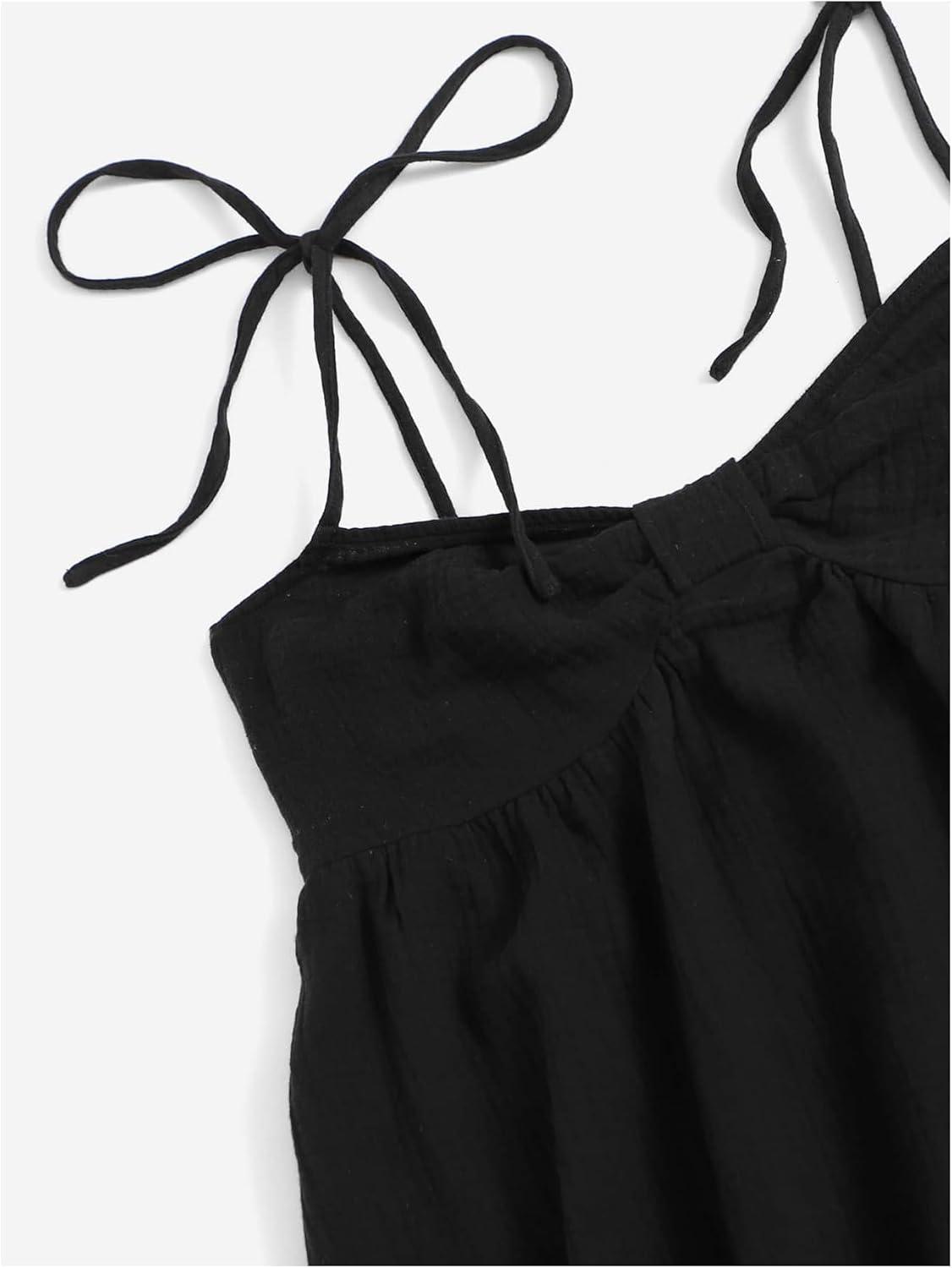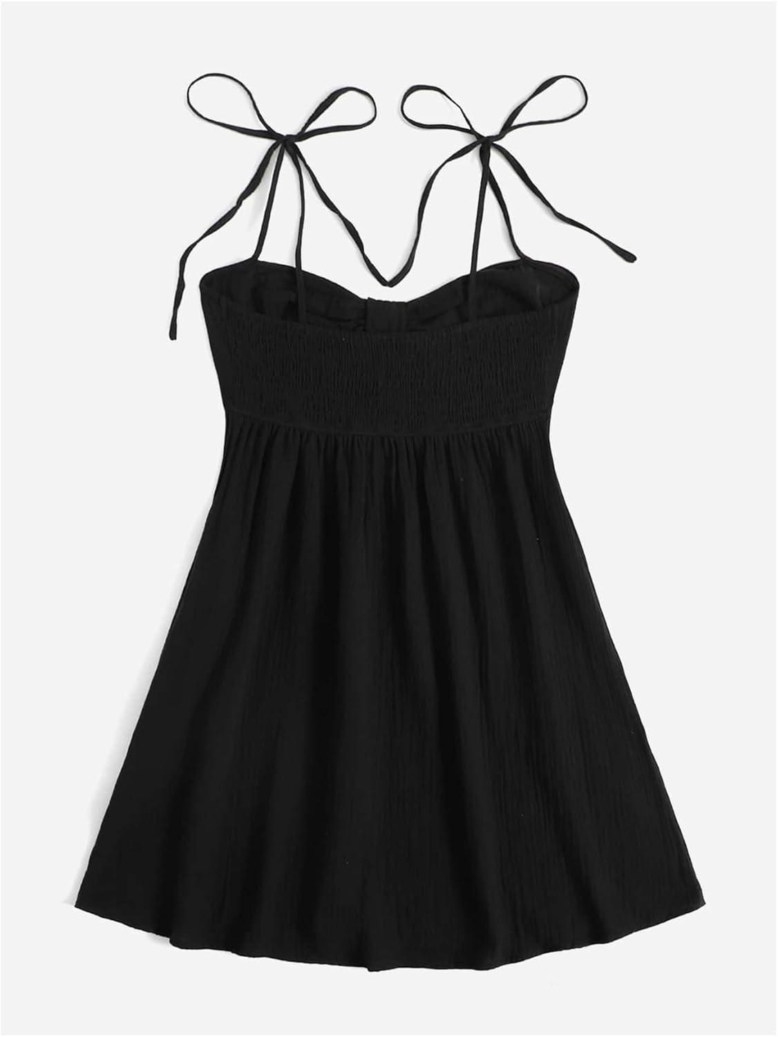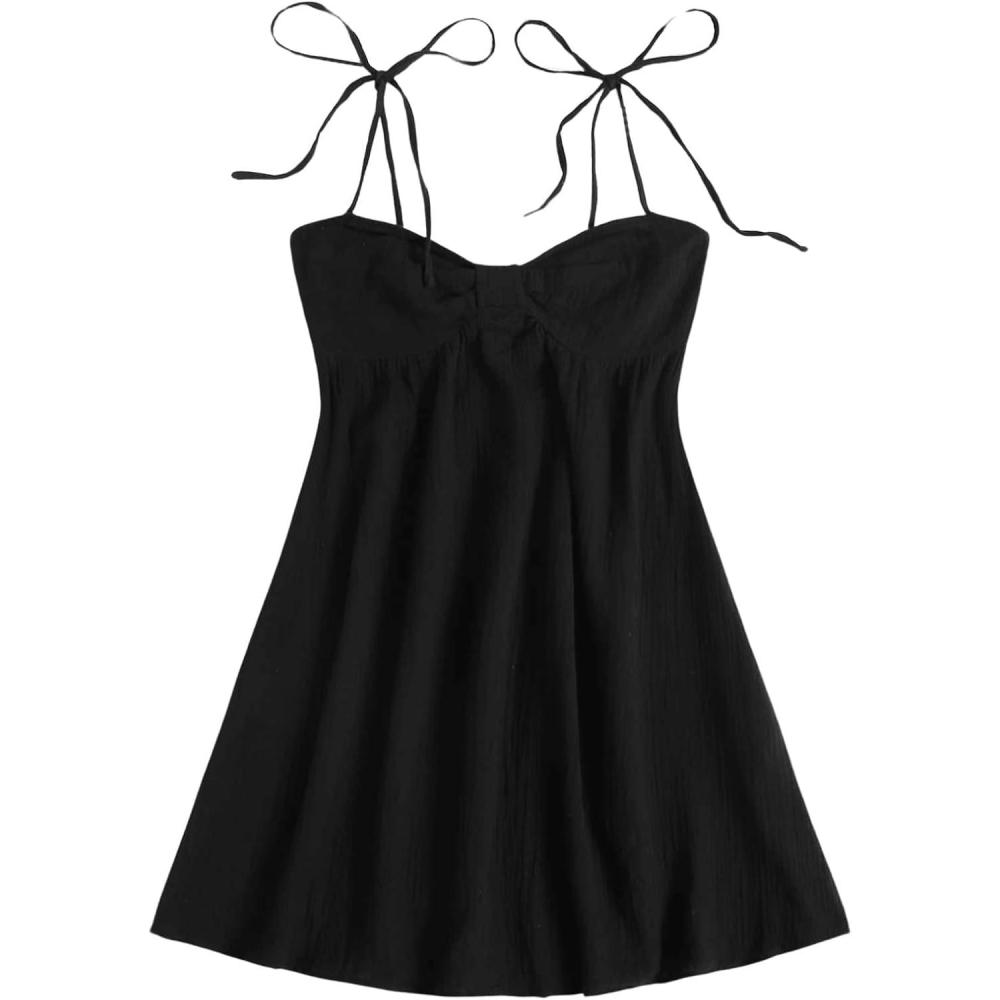 SOLY HUX Women’s Tie Shoulder Y2k Cami Sun Dress Cute Spaghetti Strap Casual Summer A Line Short Mini Dresses(Plain Black)