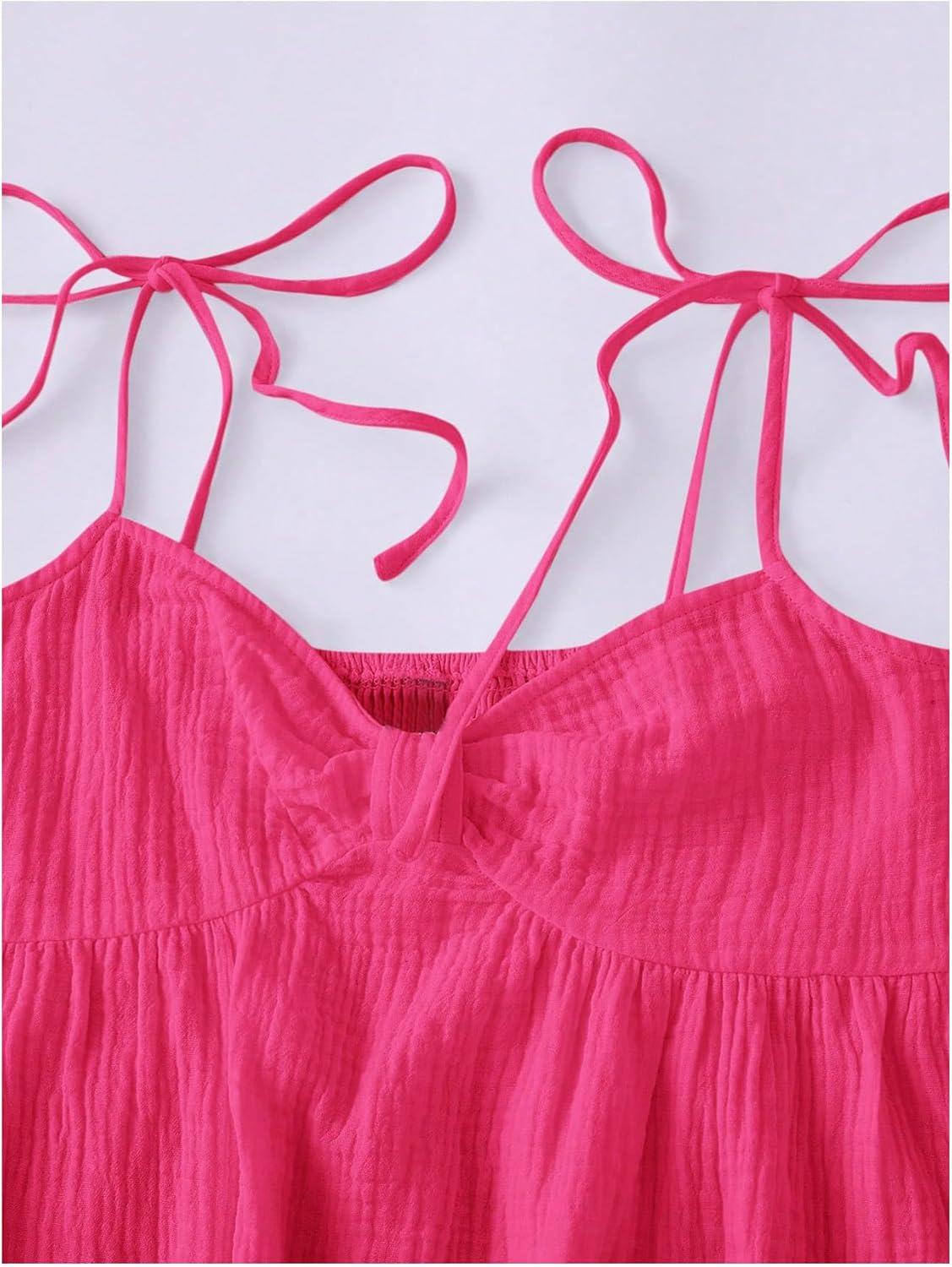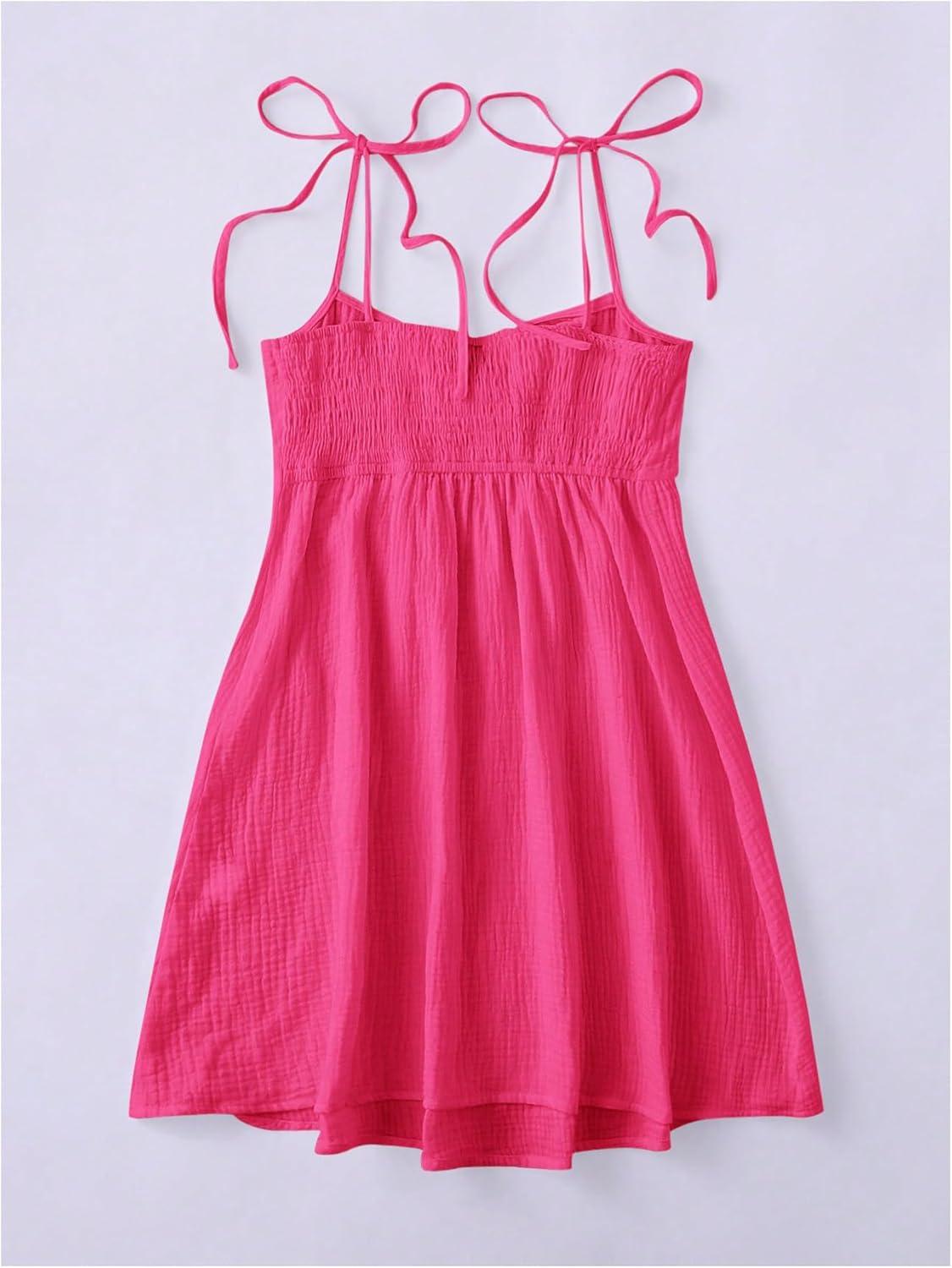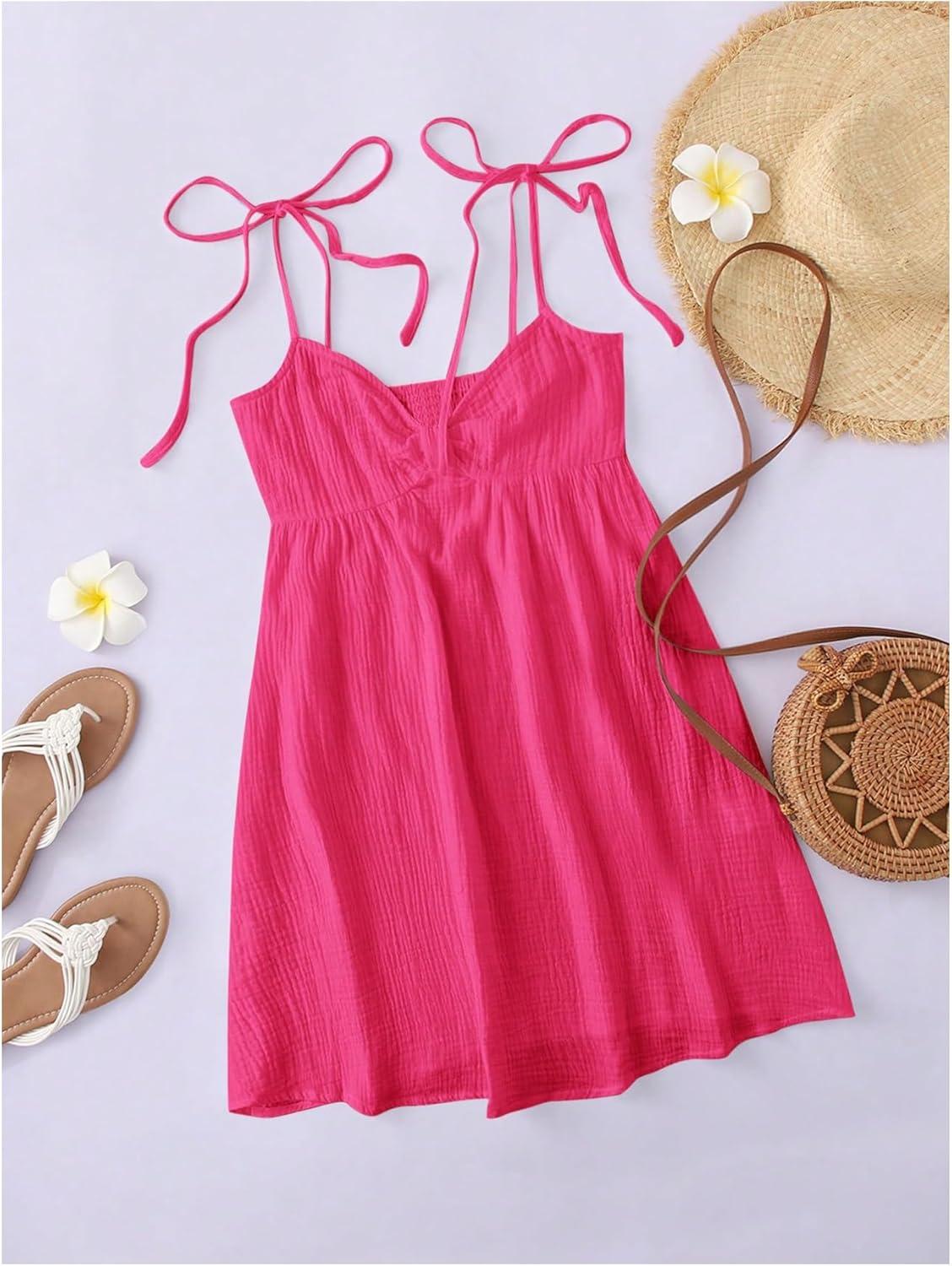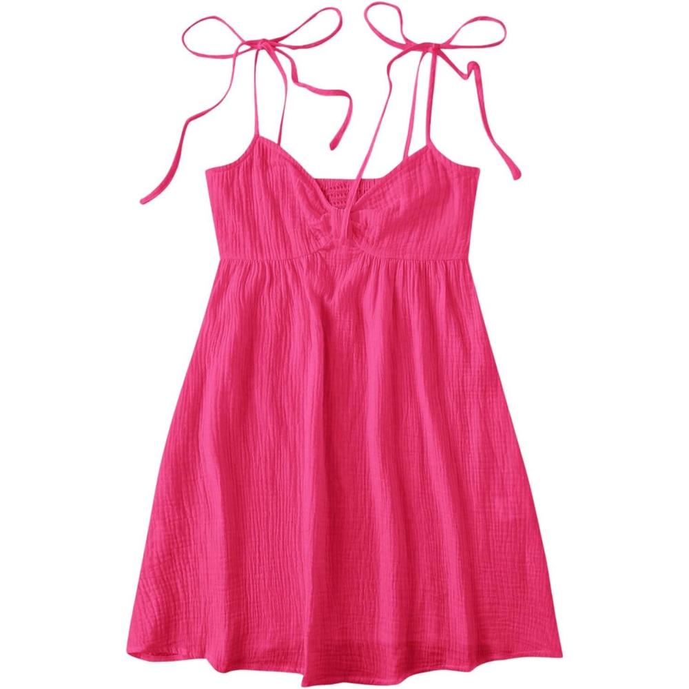 SOLY HUX Women’s Tie Shoulder Y2k Cami Sun Dress Cute Spaghetti Strap Casual Summer A Line Short Mini Dresses(Plain Hotpink)
