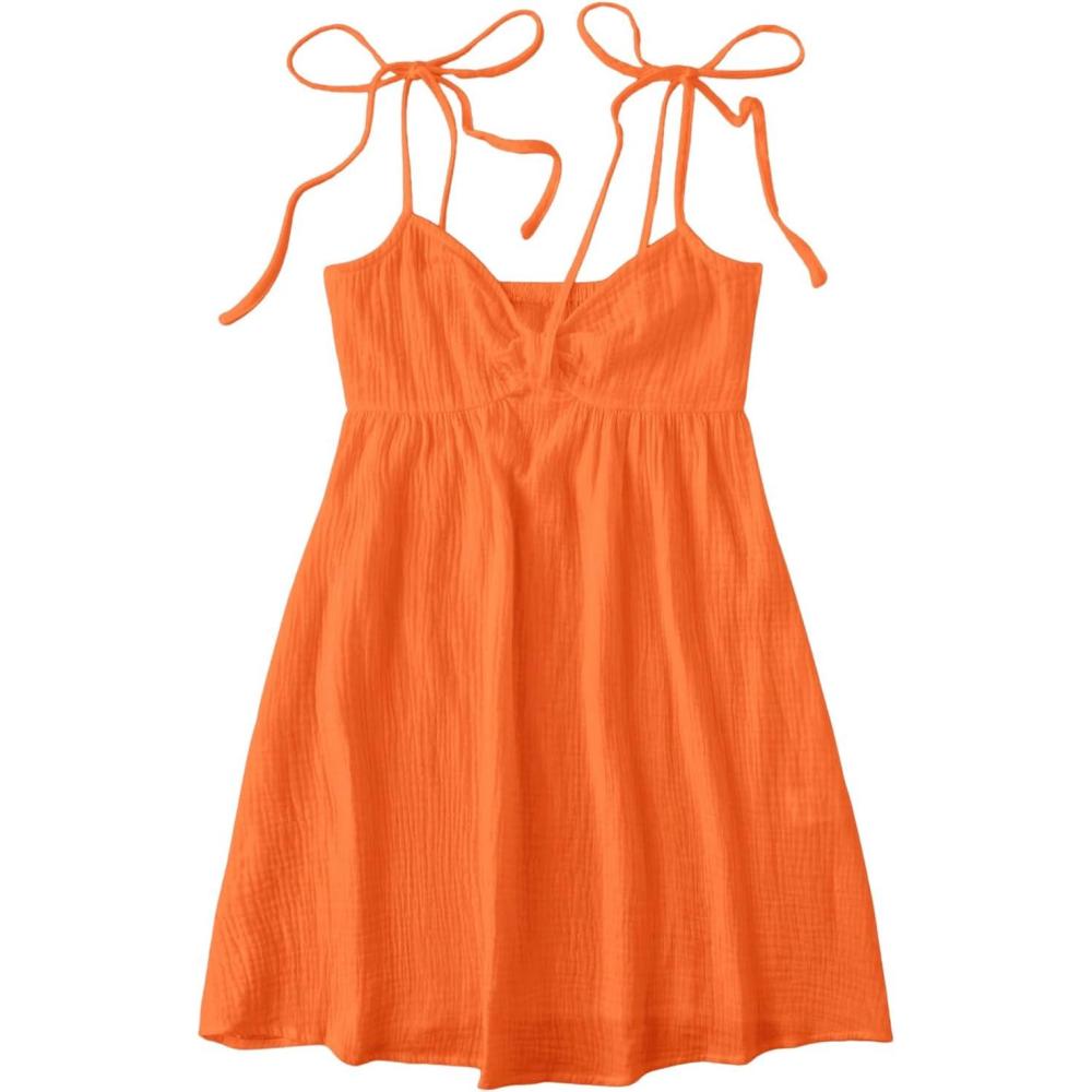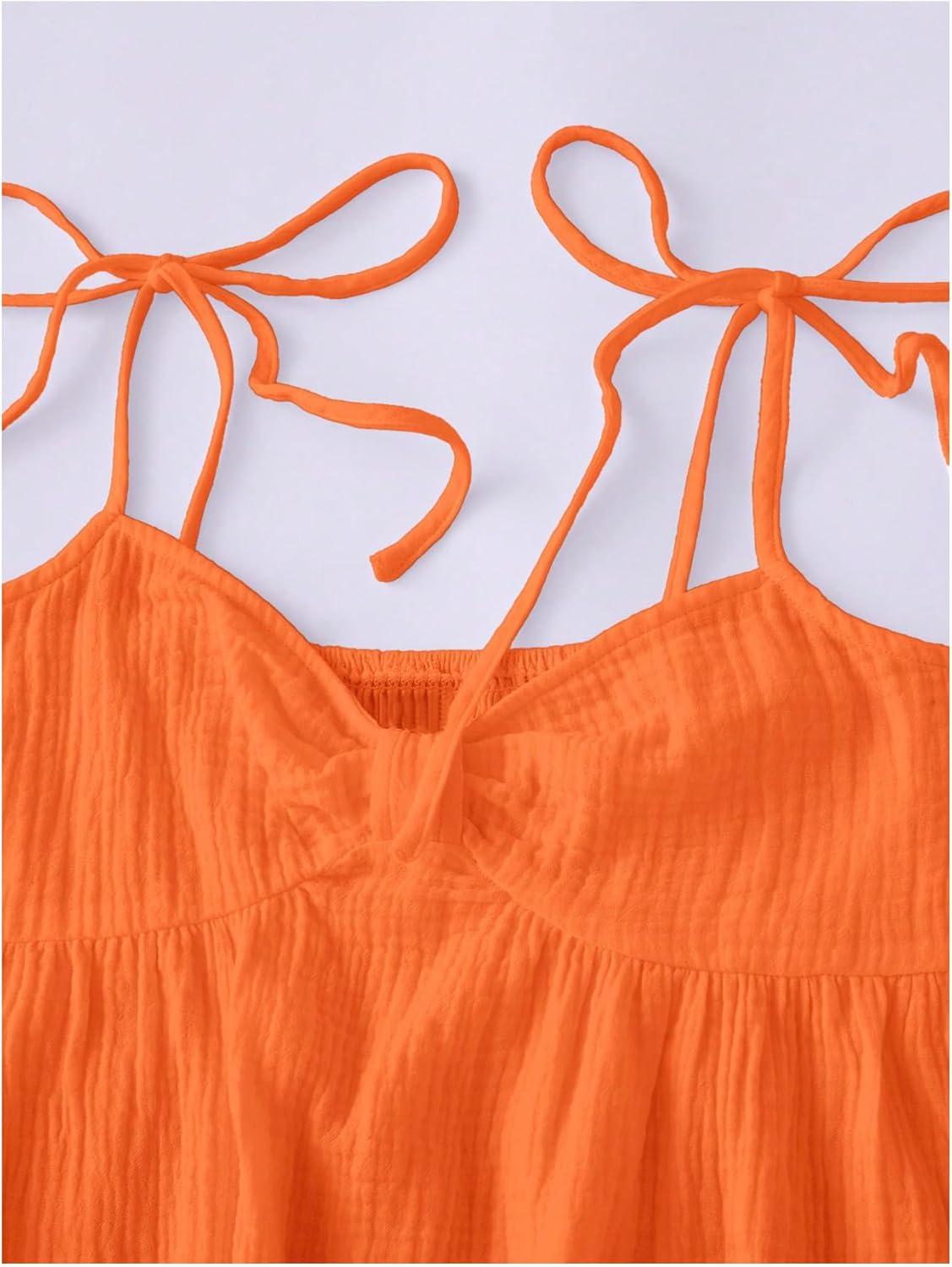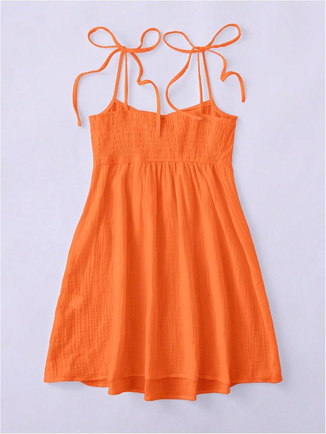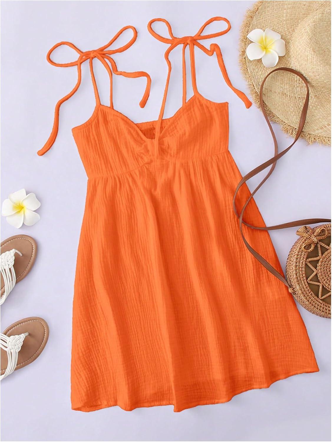 SOLY HUX Women’s Tie Shoulder Y2k Cami Sun Dress Cute Spaghetti Strap Casual Summer A Line Short Mini Dresses(Plain Orange)