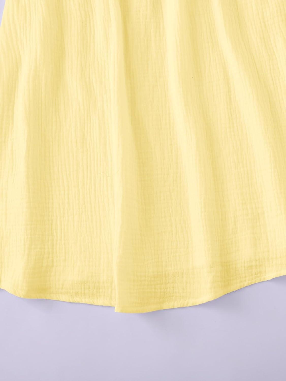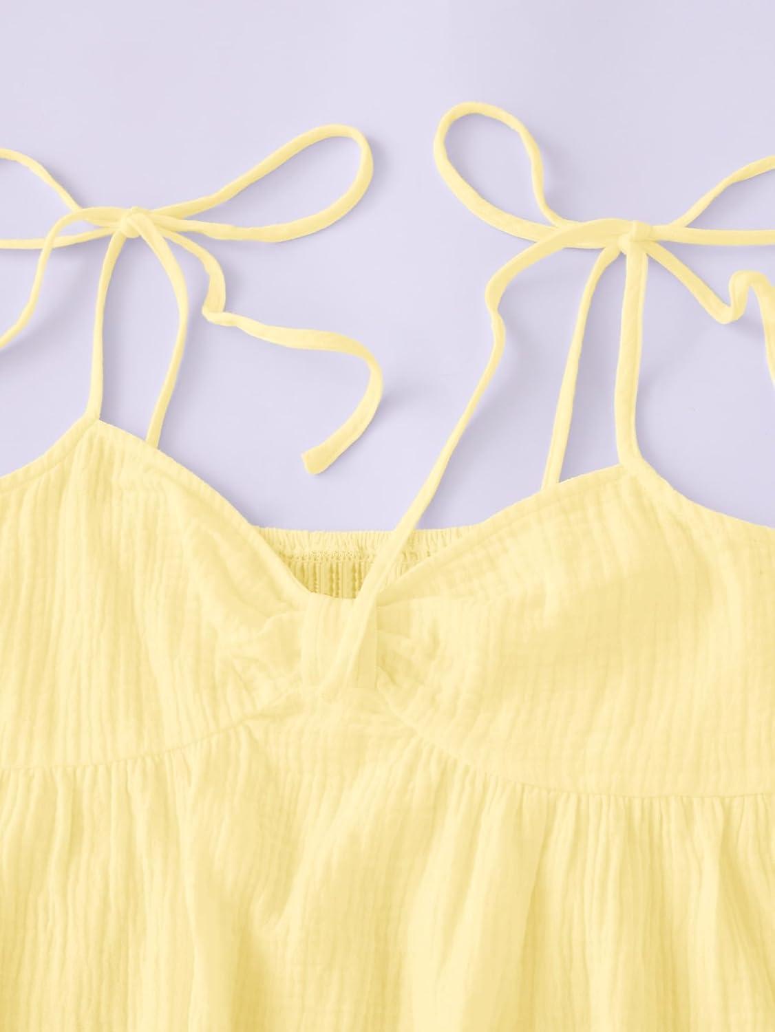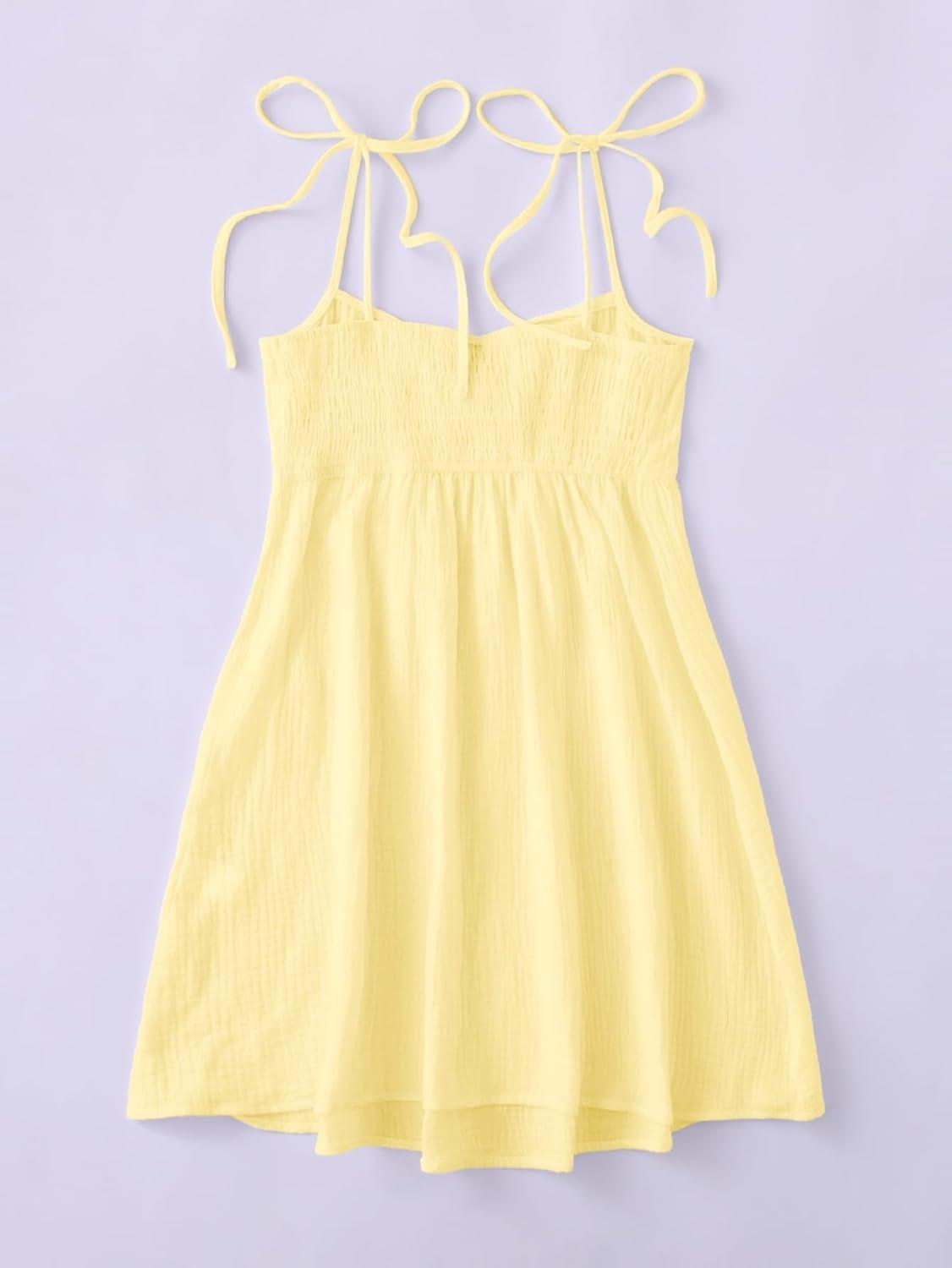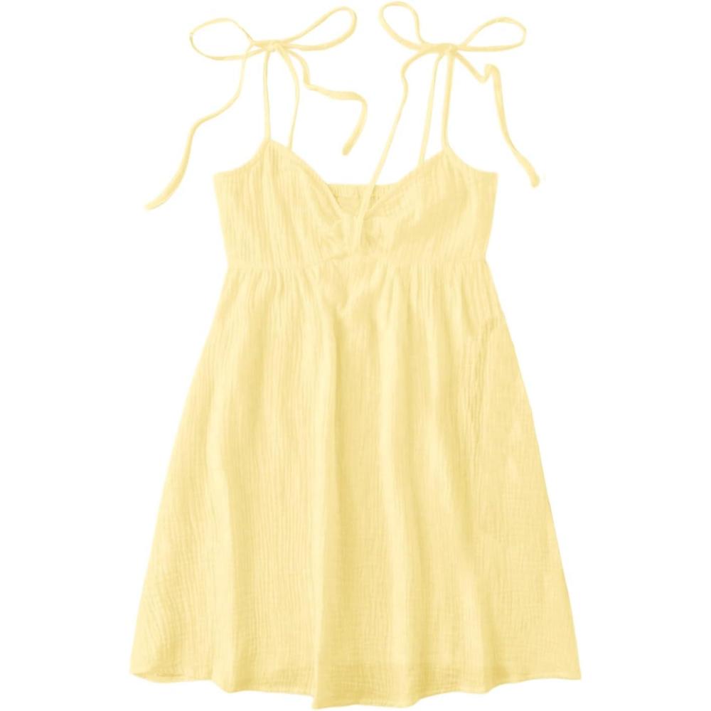 SOLY HUX Women’s Tie Shoulder Y2k Cami Sun Dress Cute Spaghetti Strap Casual Summer A Line Short Mini Dresses(Plain Yellow)