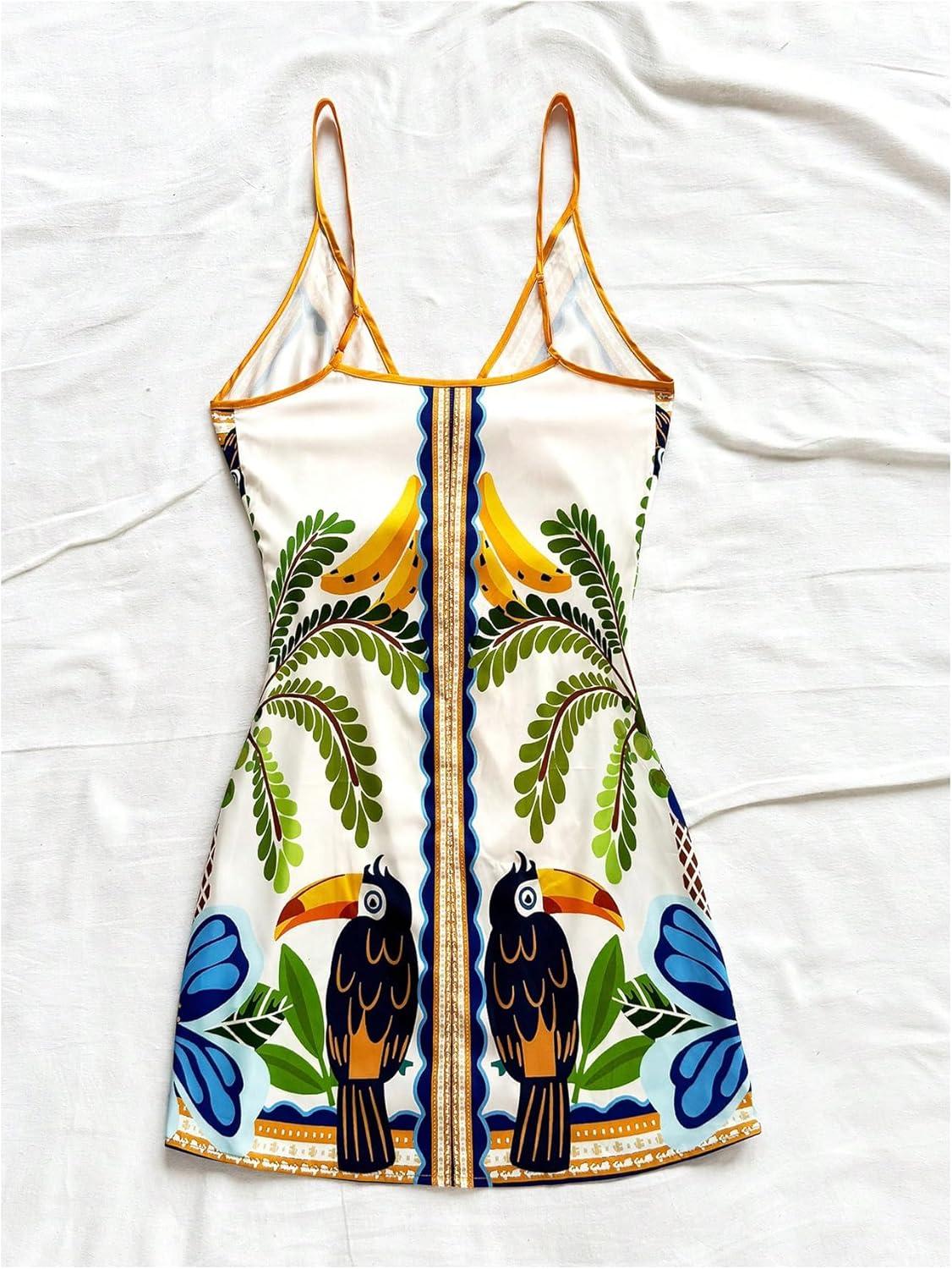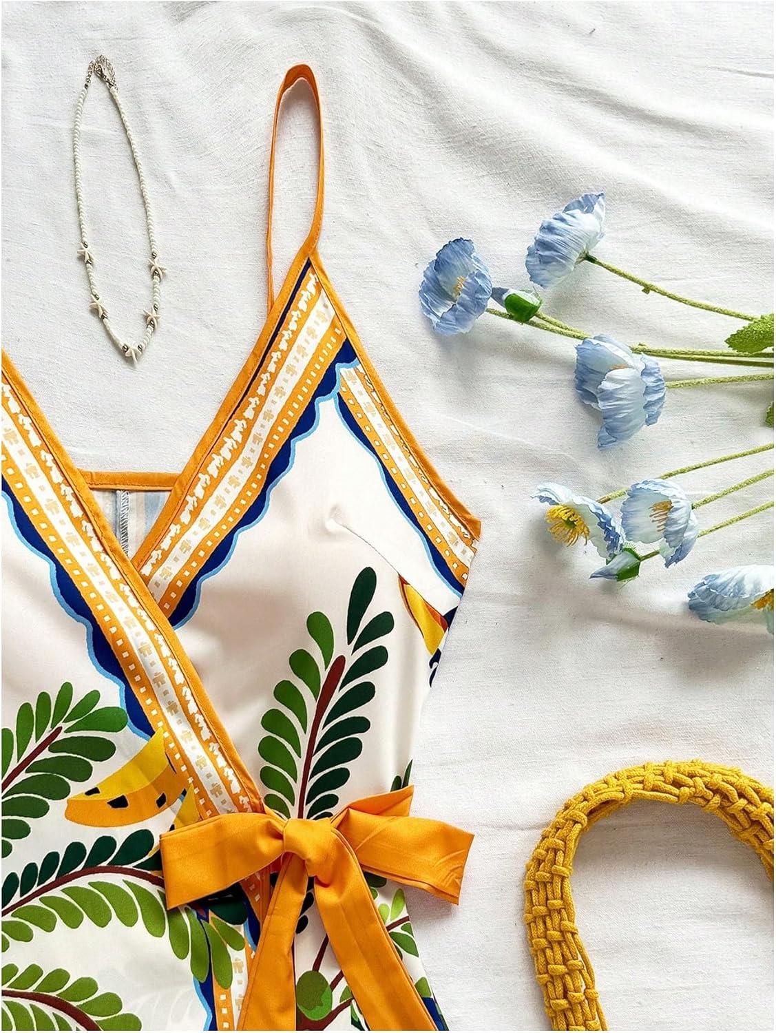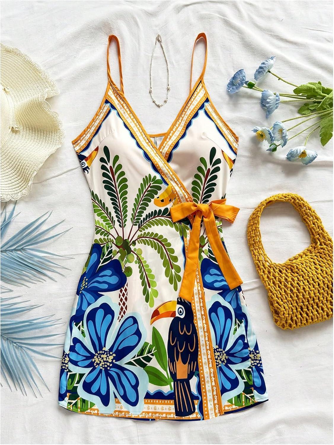 SOLY HUX Women’s Tropical Print Mini Dress Summer Wrap V Neck Bow Tie Vacation Dresses(Multi Floral)