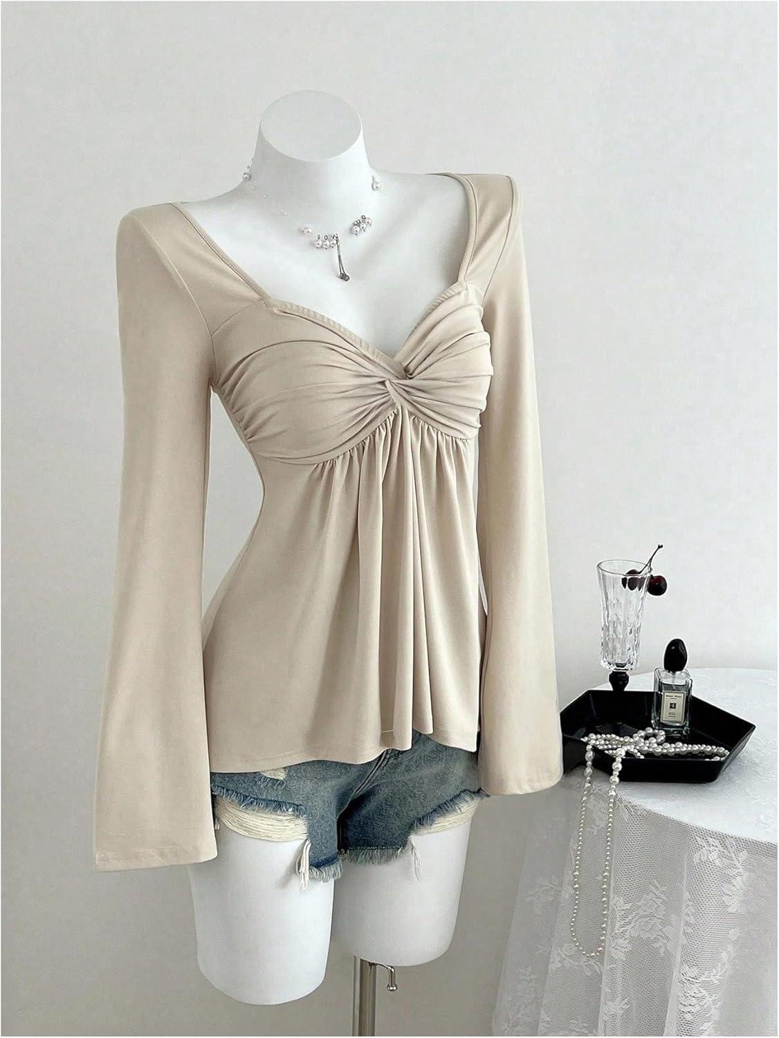 Be the first to review “SOLY HUX Women’s Twist Front Peplum Tops Long Sleeve Sweetheart Neck Tee Ruffle Hem T Shirt(Plain Apricot)”