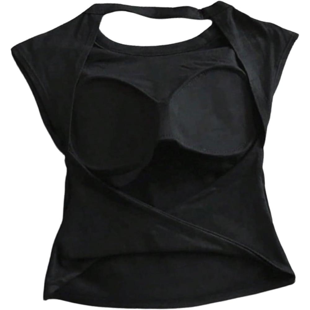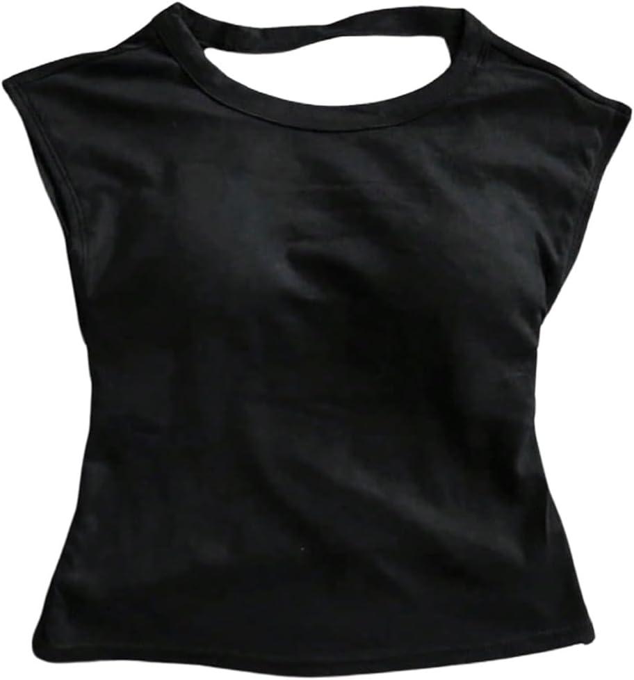 SOLY HUX Women’s Twist Open Back Tank Tops with Built in Bra Sleeveless Crewneck Backless Summer Crop Top(Pure Black)