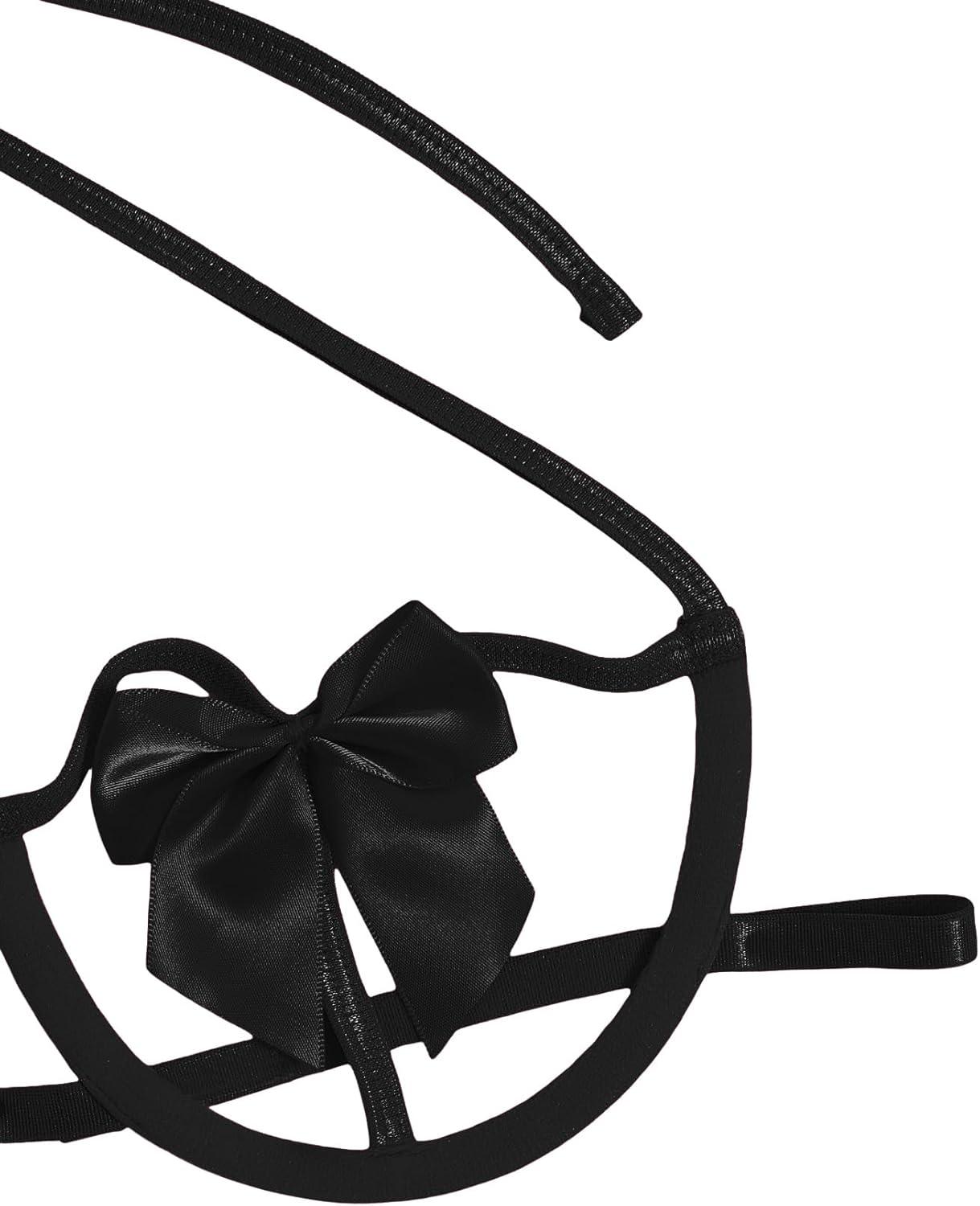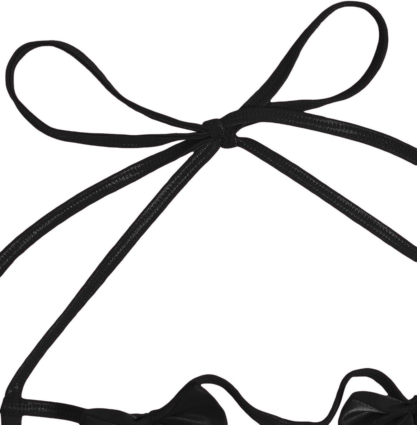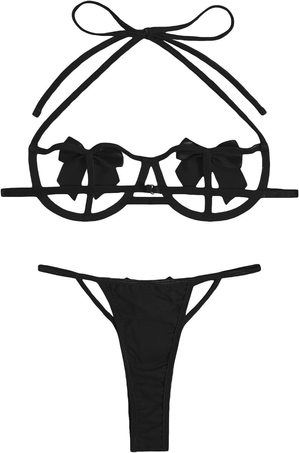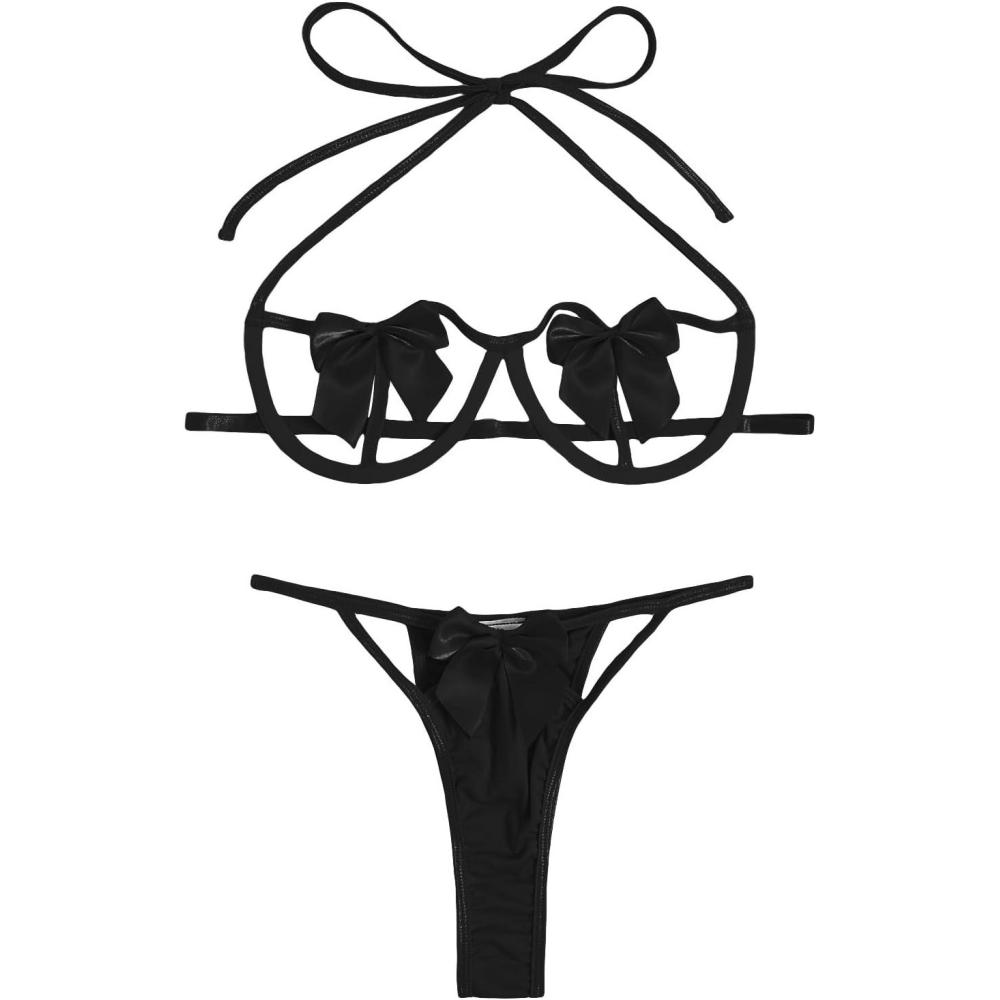 SOLY HUX Women’s Two Piece Underwire Lingerie Set Bow Knot Cut Out Halter Bra and Panty Sleepwear(Pure Black)