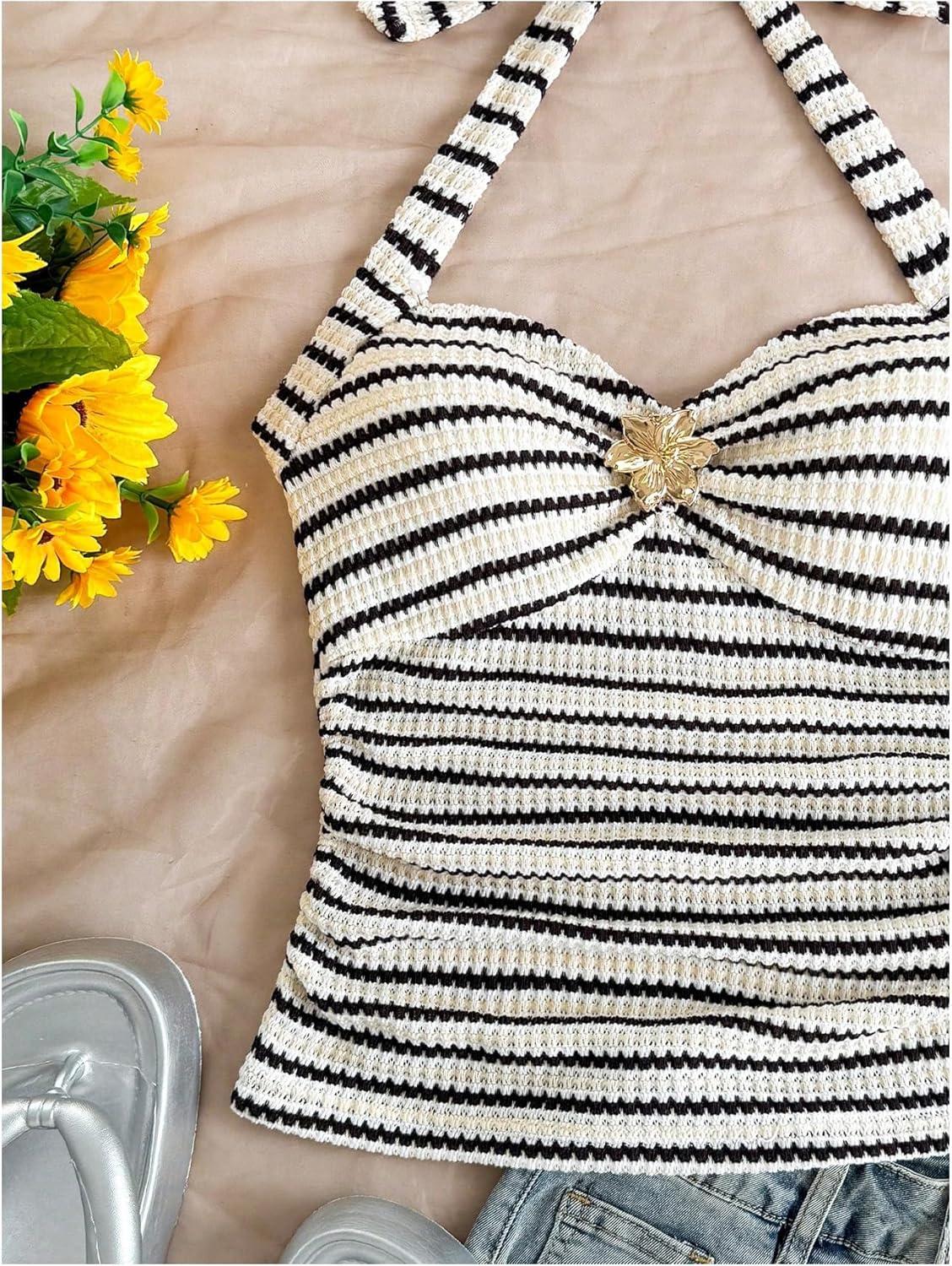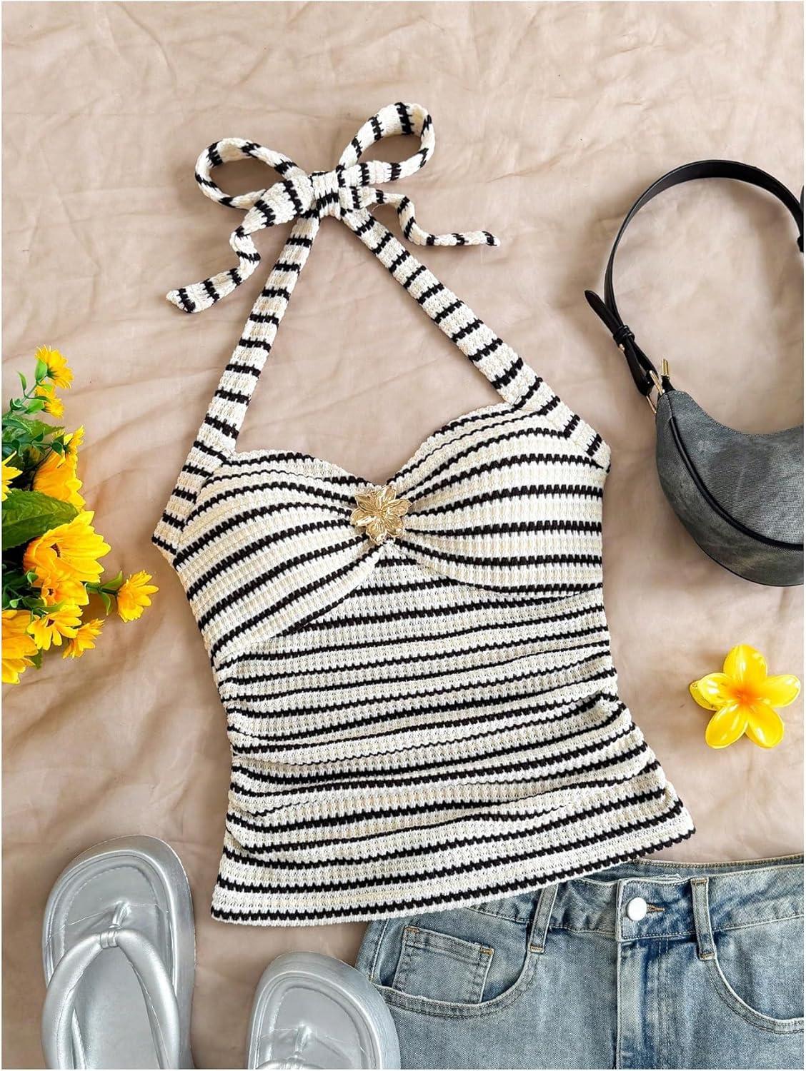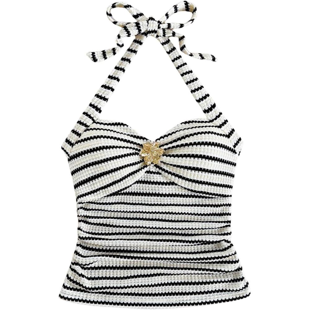 Save up to 40% on SOLY HUX Women’s V Neck Halter Tops Open Back Y2k Ruched Floral Metal Summer Going Out Cami Tops(Black and White) styles during our end-of-season sale.