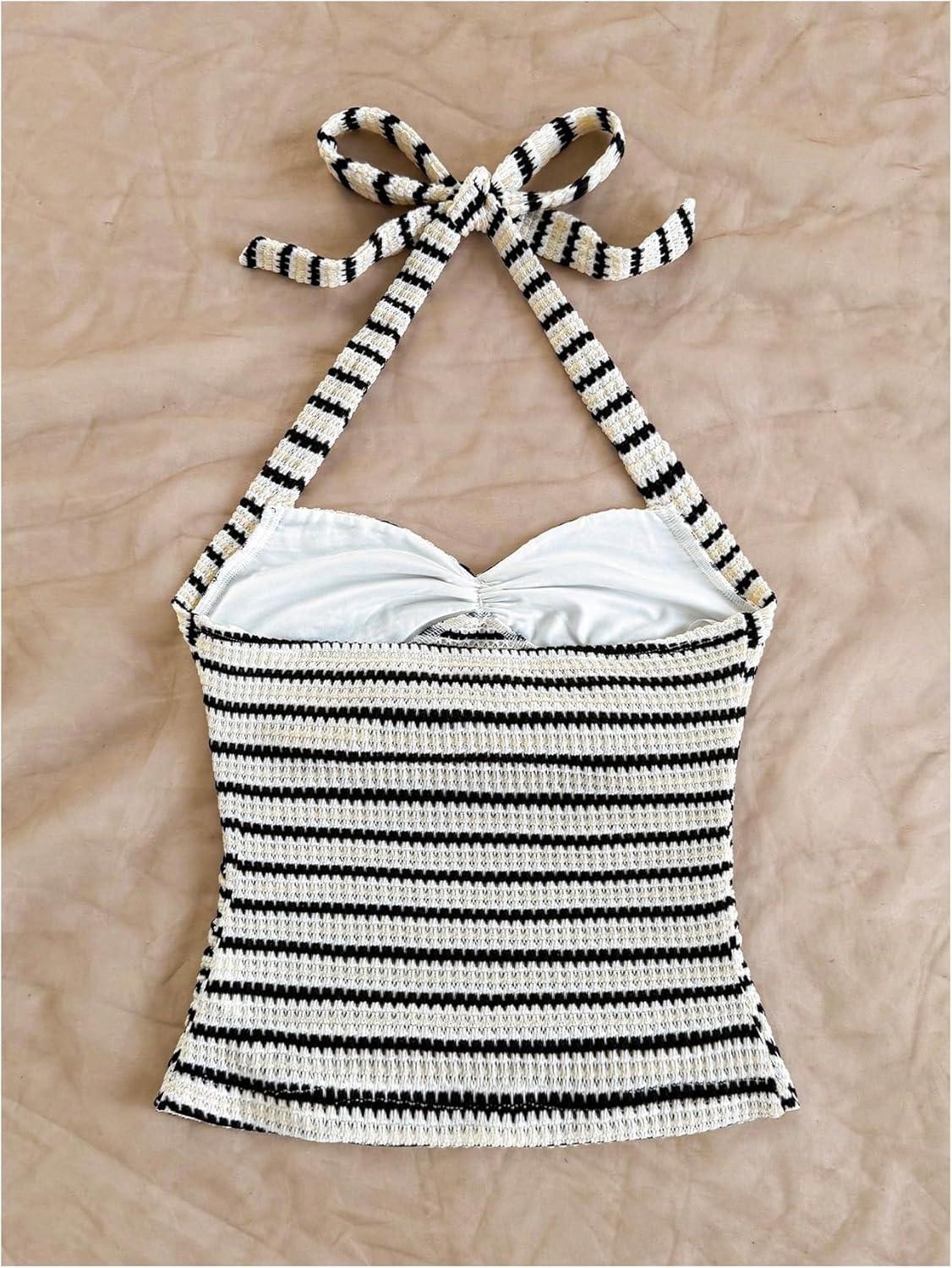 Be the first to review “SOLY HUX Women’s V Neck Halter Tops Open Back Y2k Ruched Floral Metal Summer Going Out Cami Tops(Black and White)”