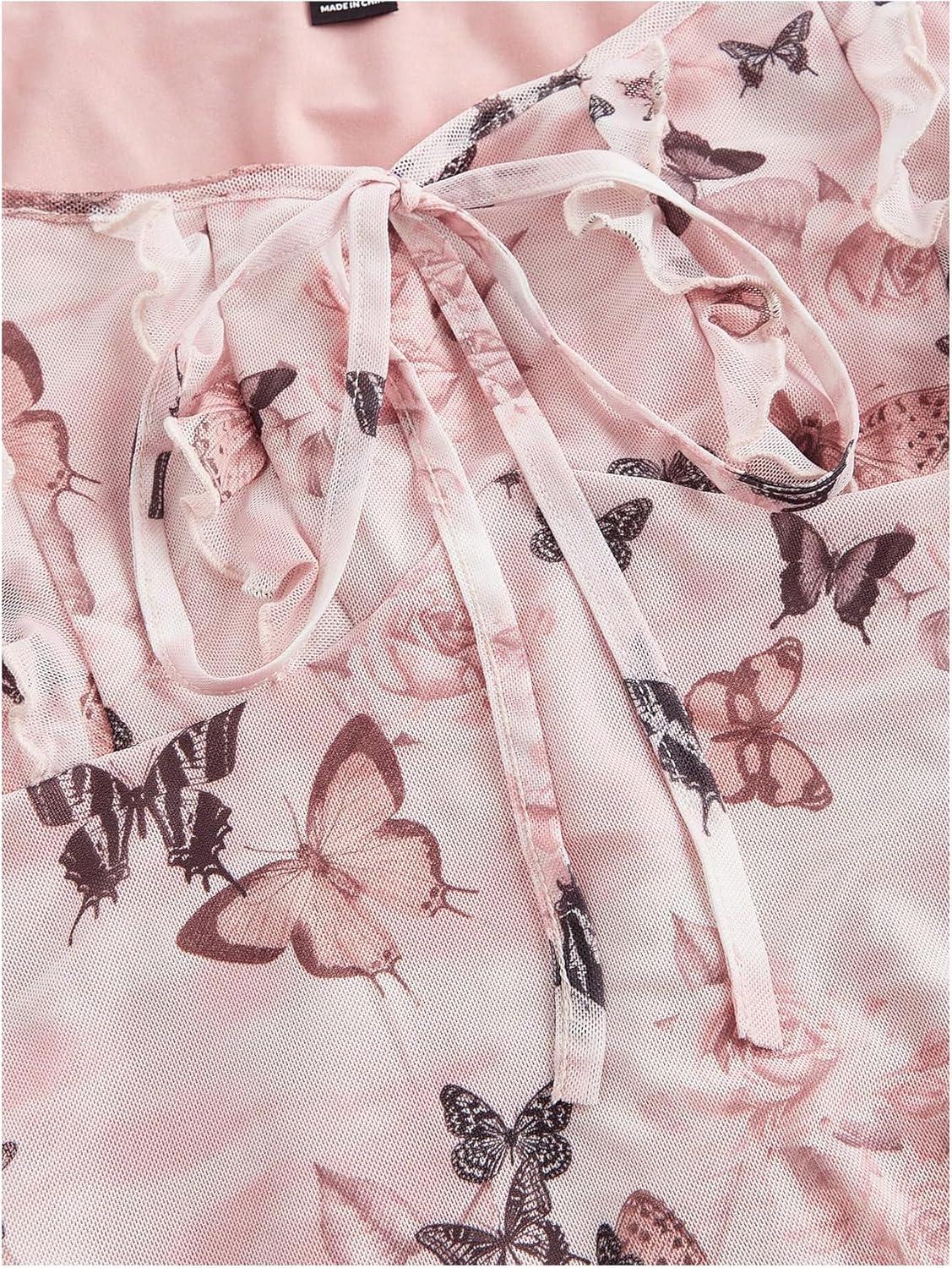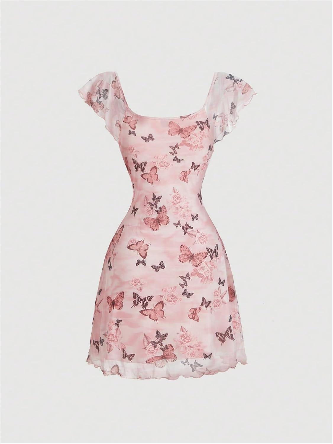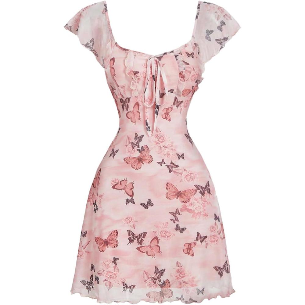 SOLY HUX Women’s Vintage Floral Dress Summer Cap Sleeve Mini Dresses Going Out Beach Short Dress(Pink Butterfly)