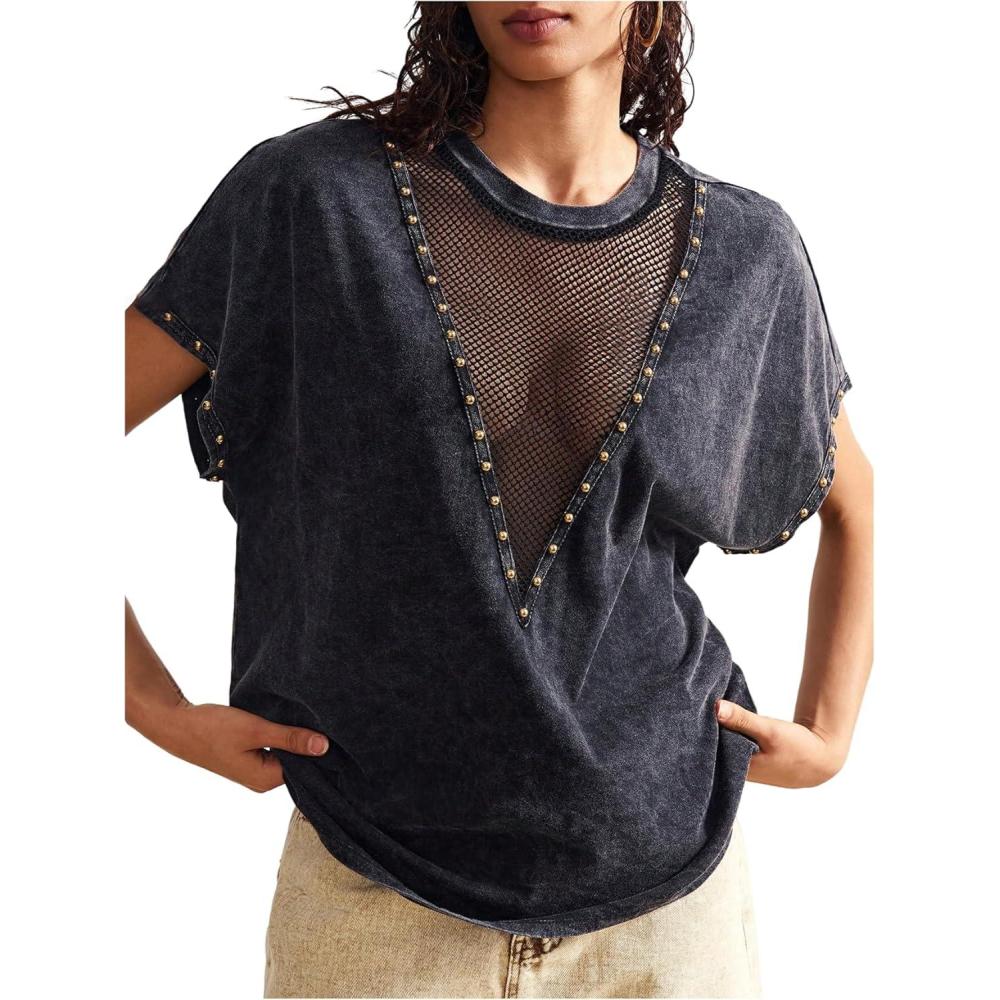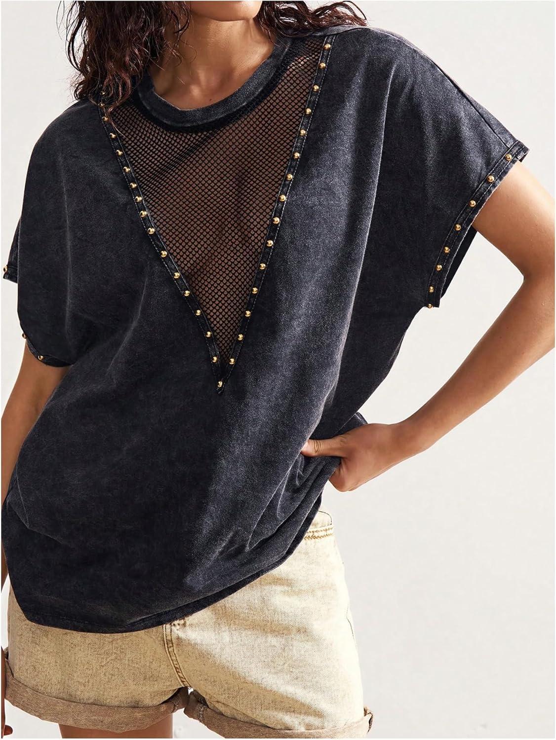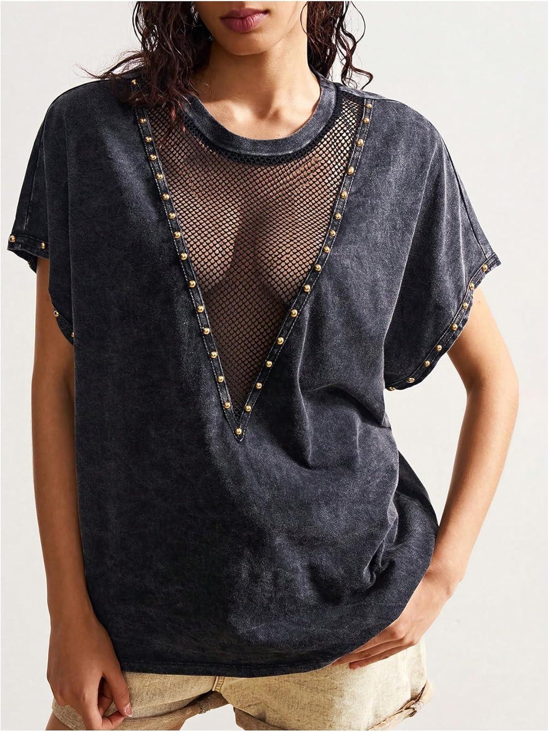 SOLY HUX Women’s Vintage Graphic Tees Mesh Short Sleeve Goth Y2k T Shirt Summer Tops Streetwear(Black)