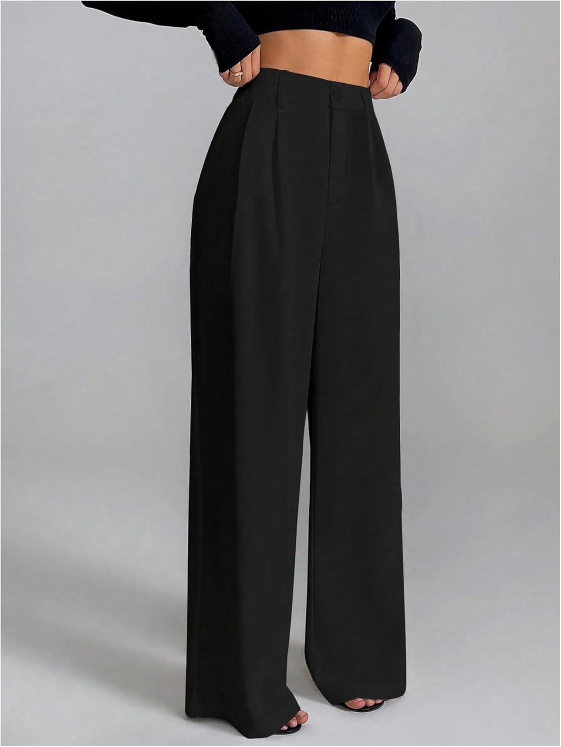 SOLY HUX Women’s Wide Leg Dress Pants High Waisted Pleated Loose Work Office Trousers(Pure Black)