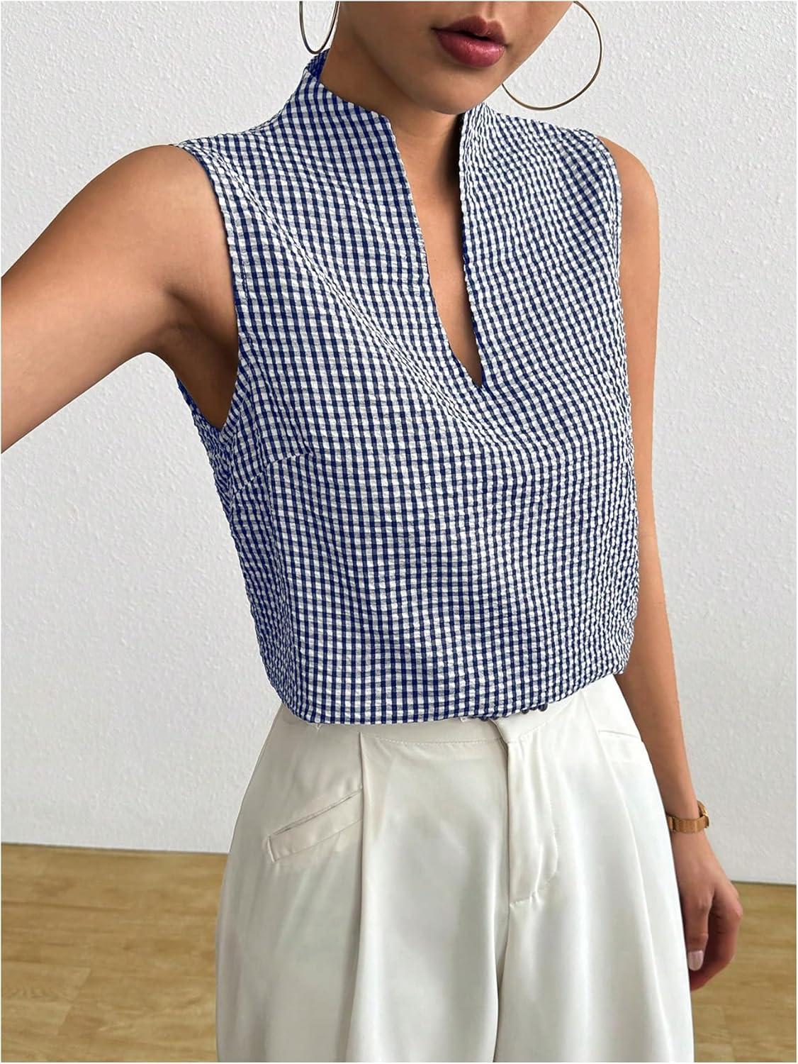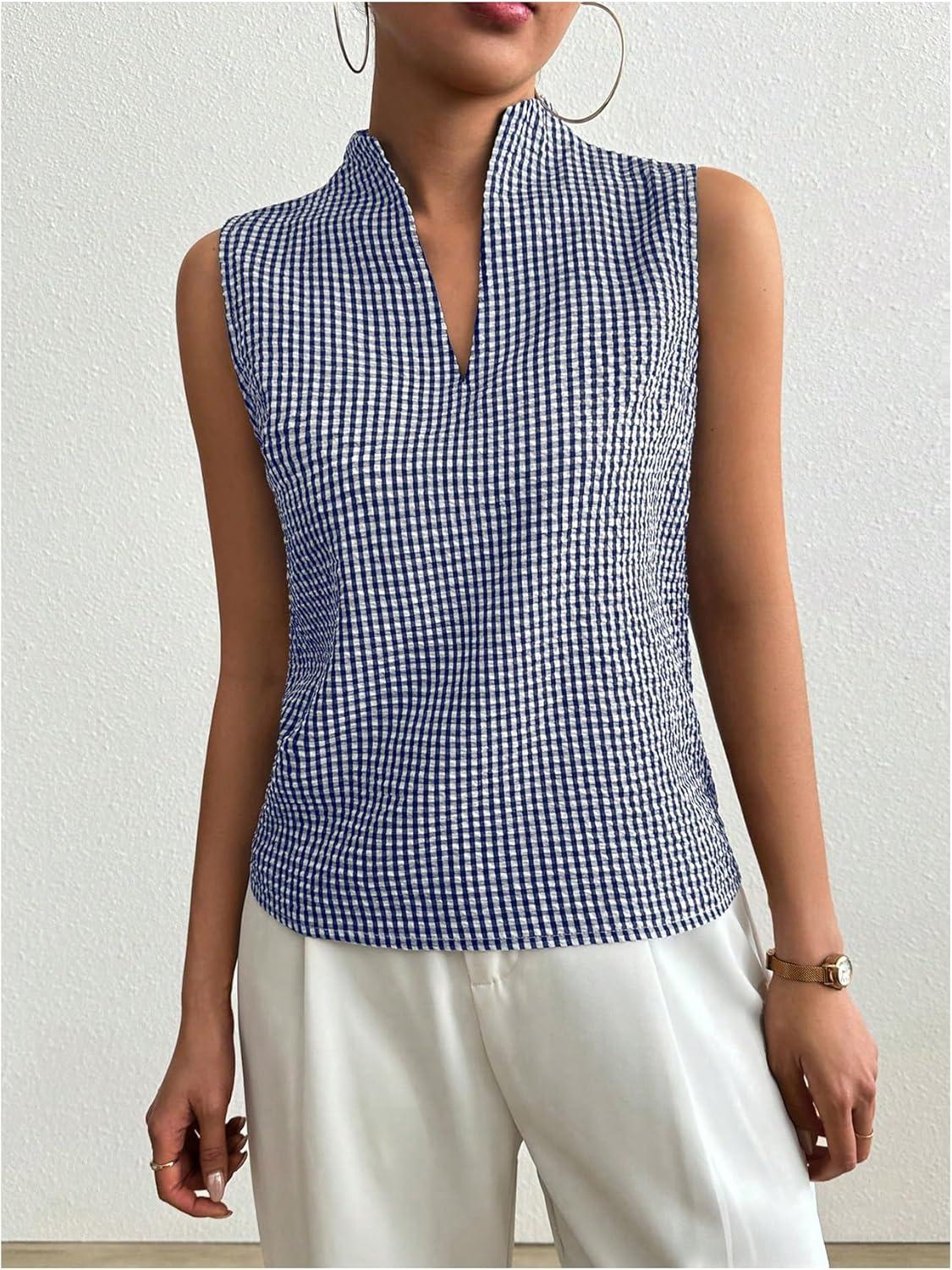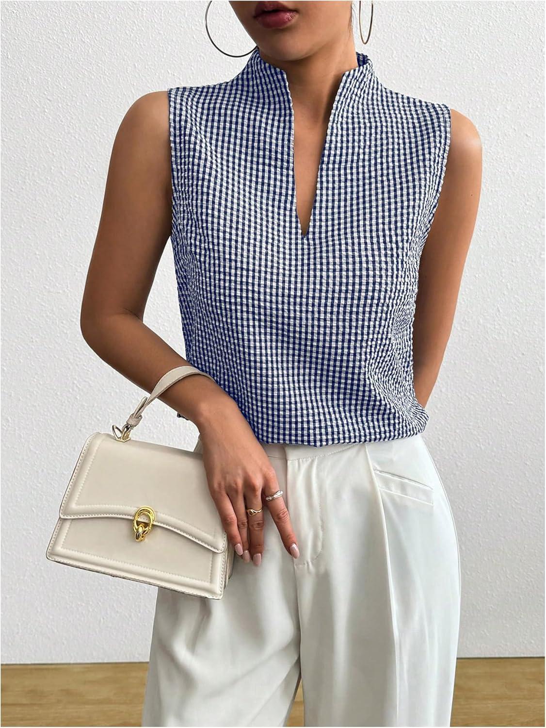 SOLY HUX Women’s Work Outfits V Neck Sleeveless Blouses Summer Casual Tank Tops Business Office Dressy Striped Shirts(Black Plaid)