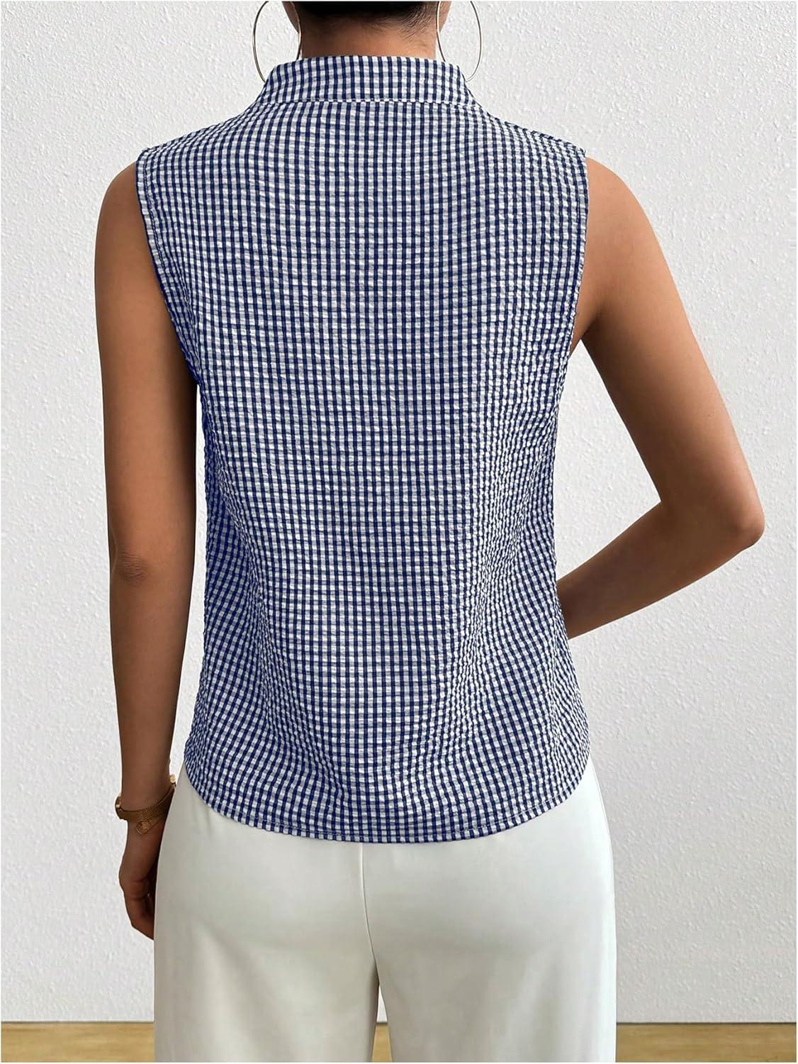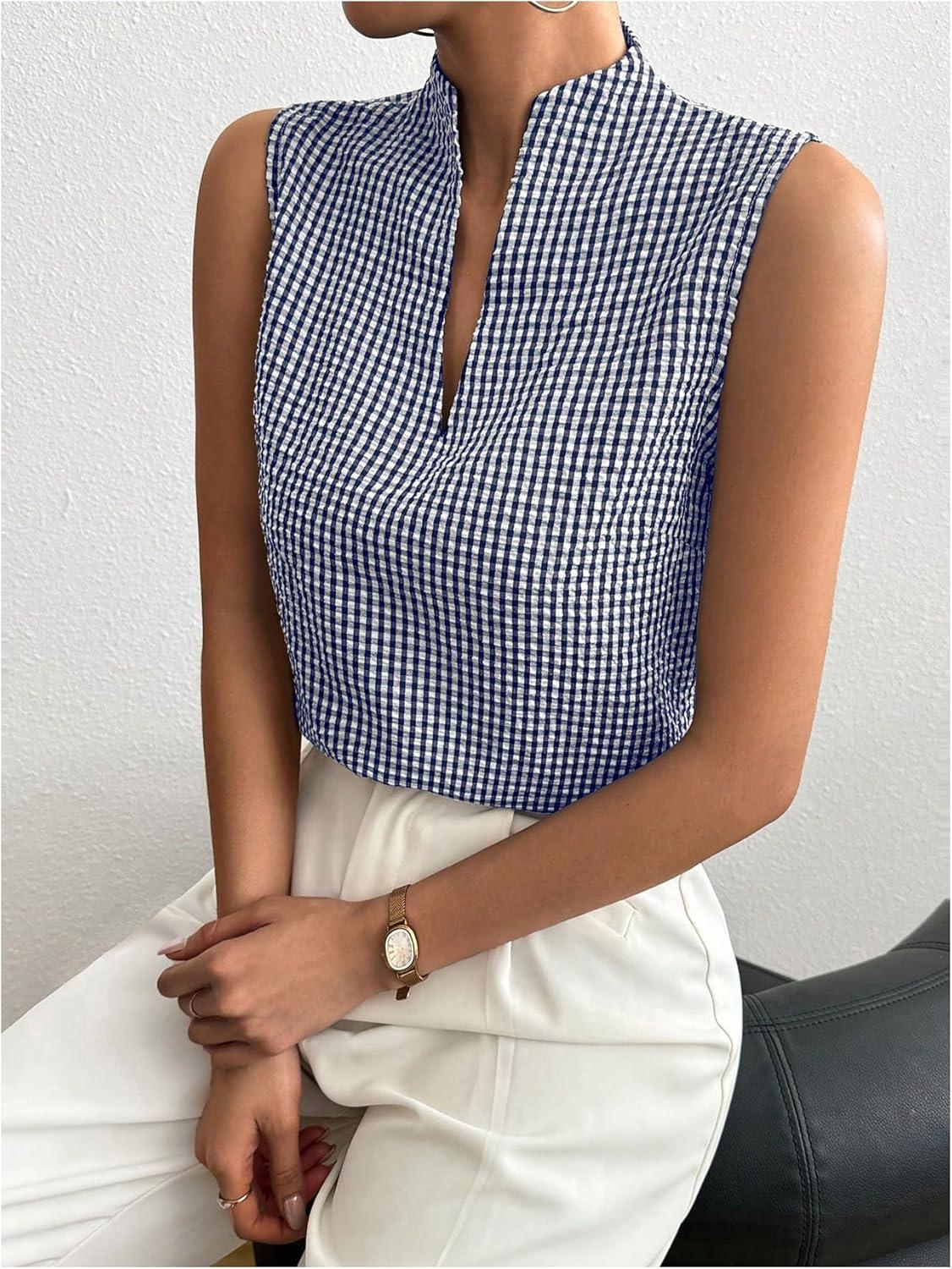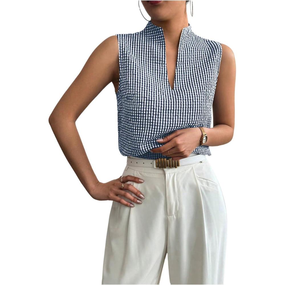 SOLY HUX Women’s Work Outfits V Neck Sleeveless Blouses Summer Casual Tank Tops Business Office Dressy Striped Shirts(Black Plaid)