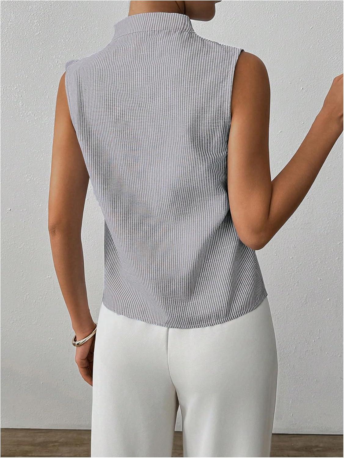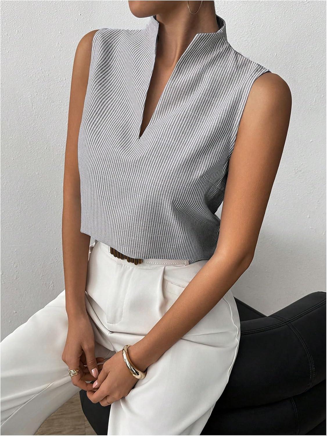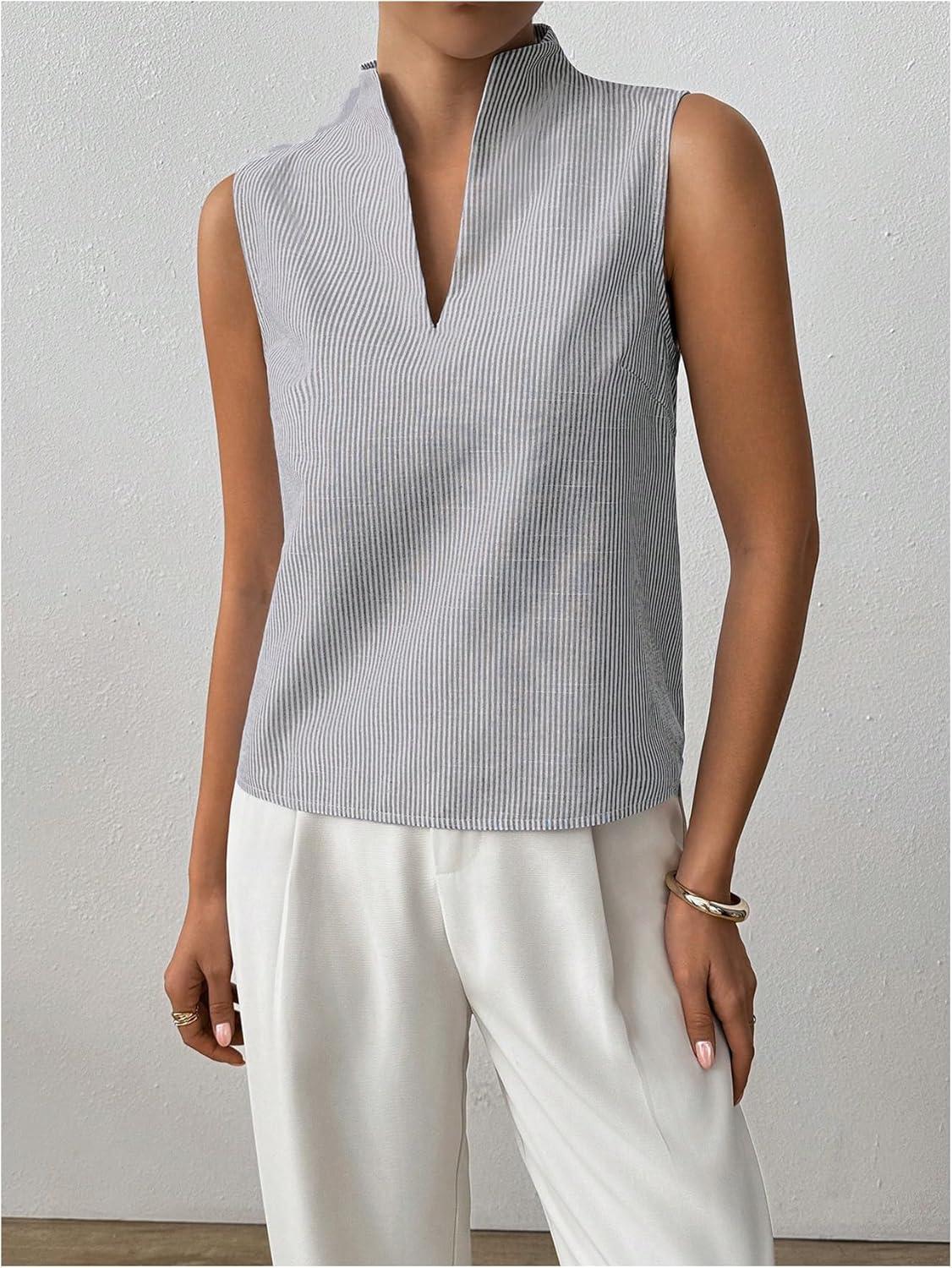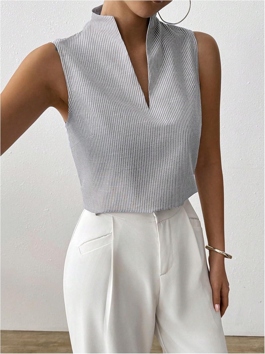 SOLY HUX Women’s Work Outfits V Neck Sleeveless Blouses Summer Casual Tank Tops Business Office Dressy Striped Shirts(Blue White Striped)