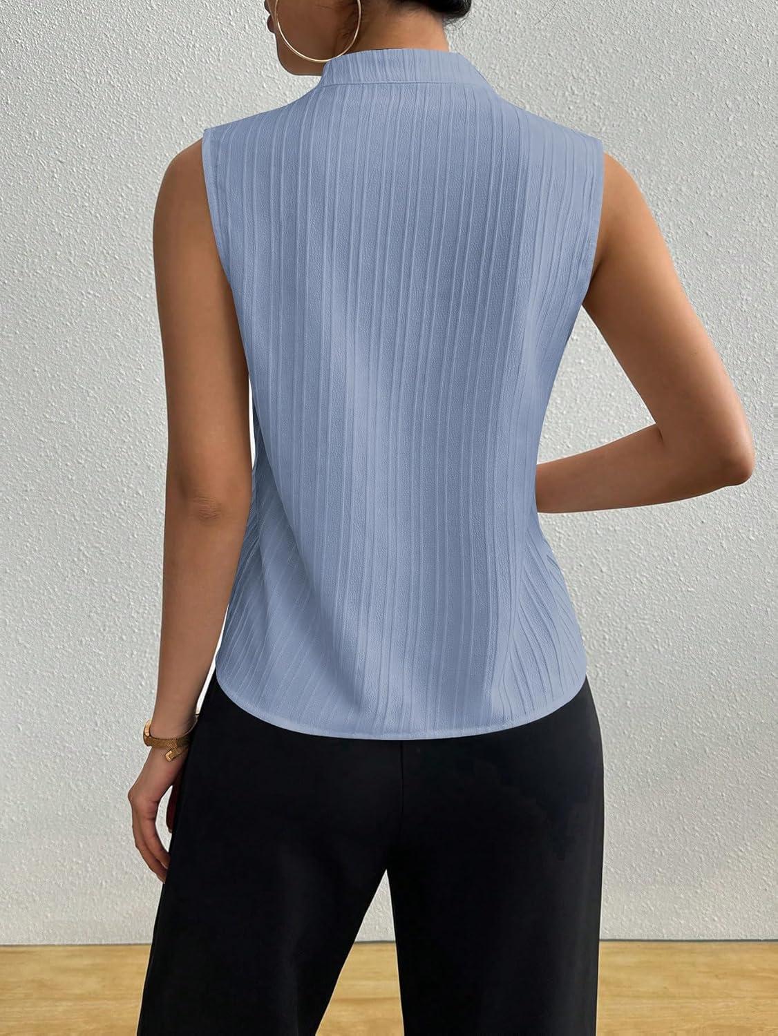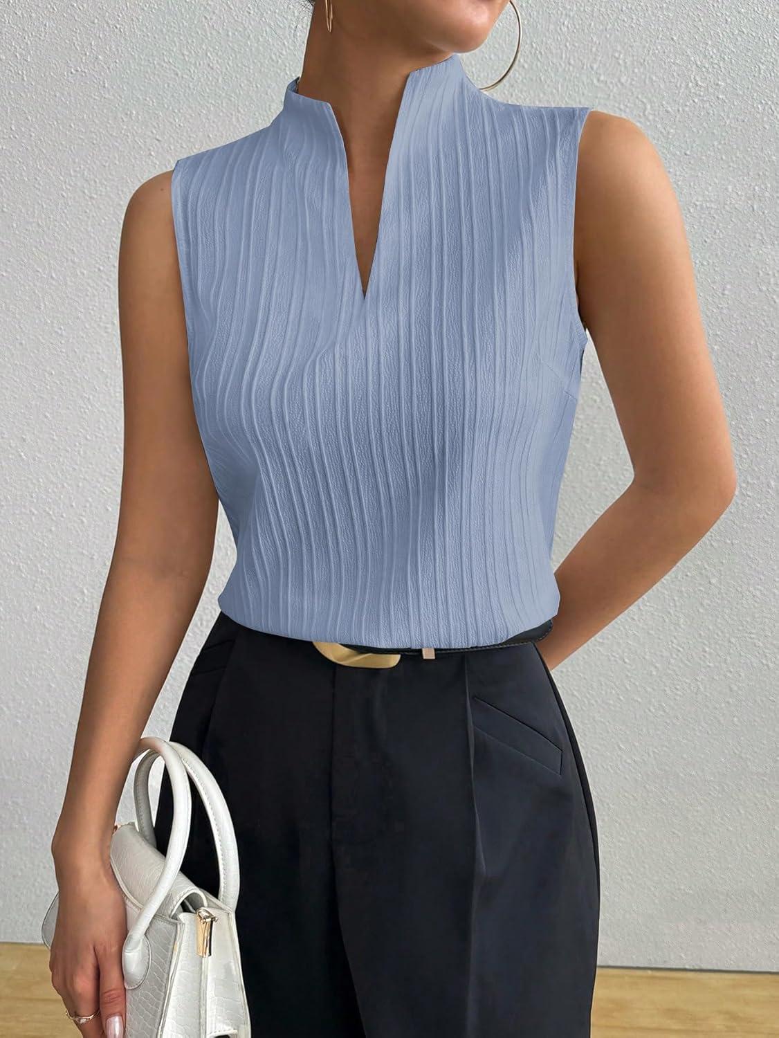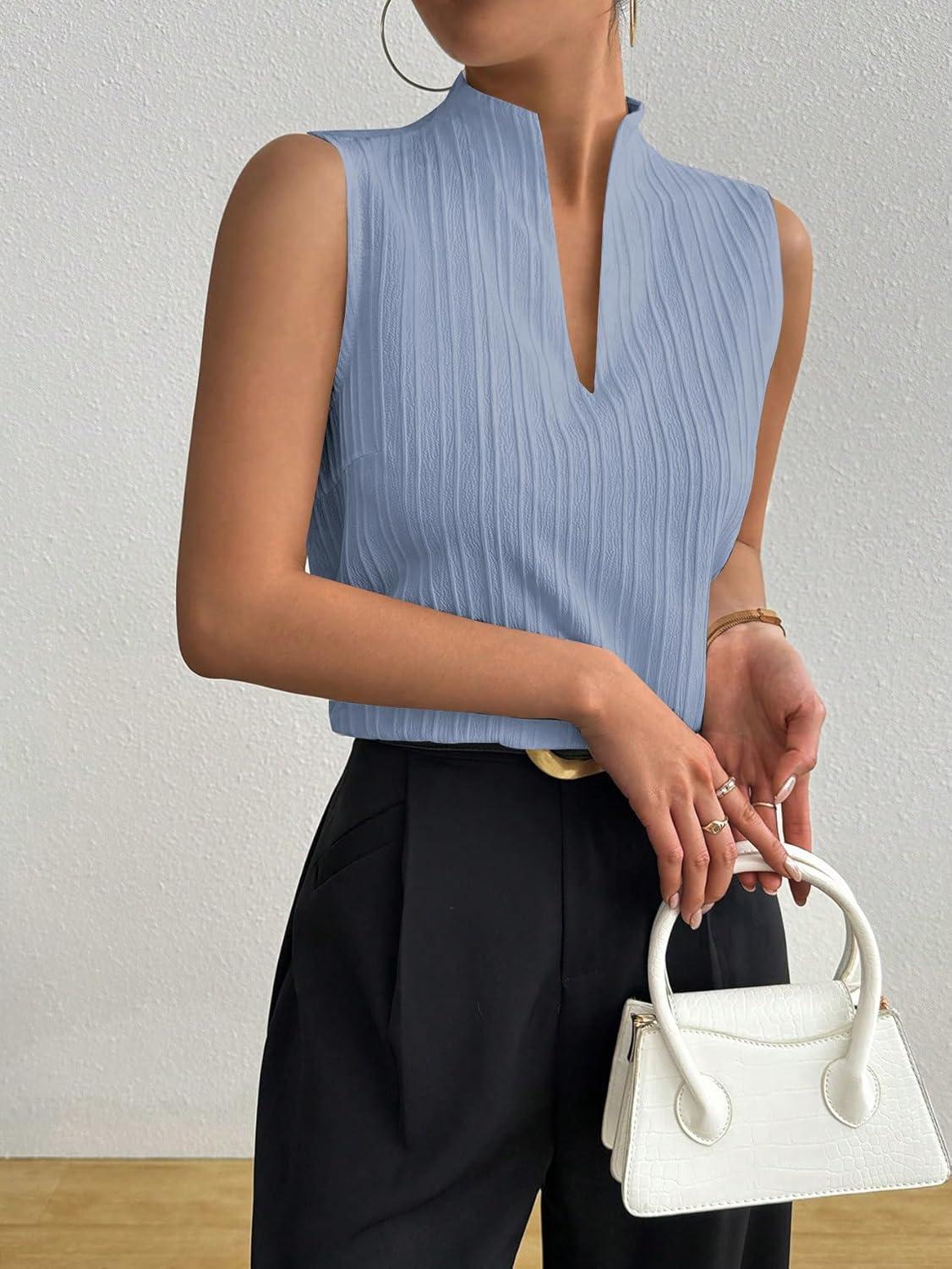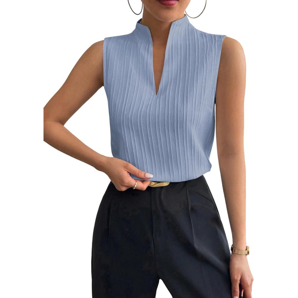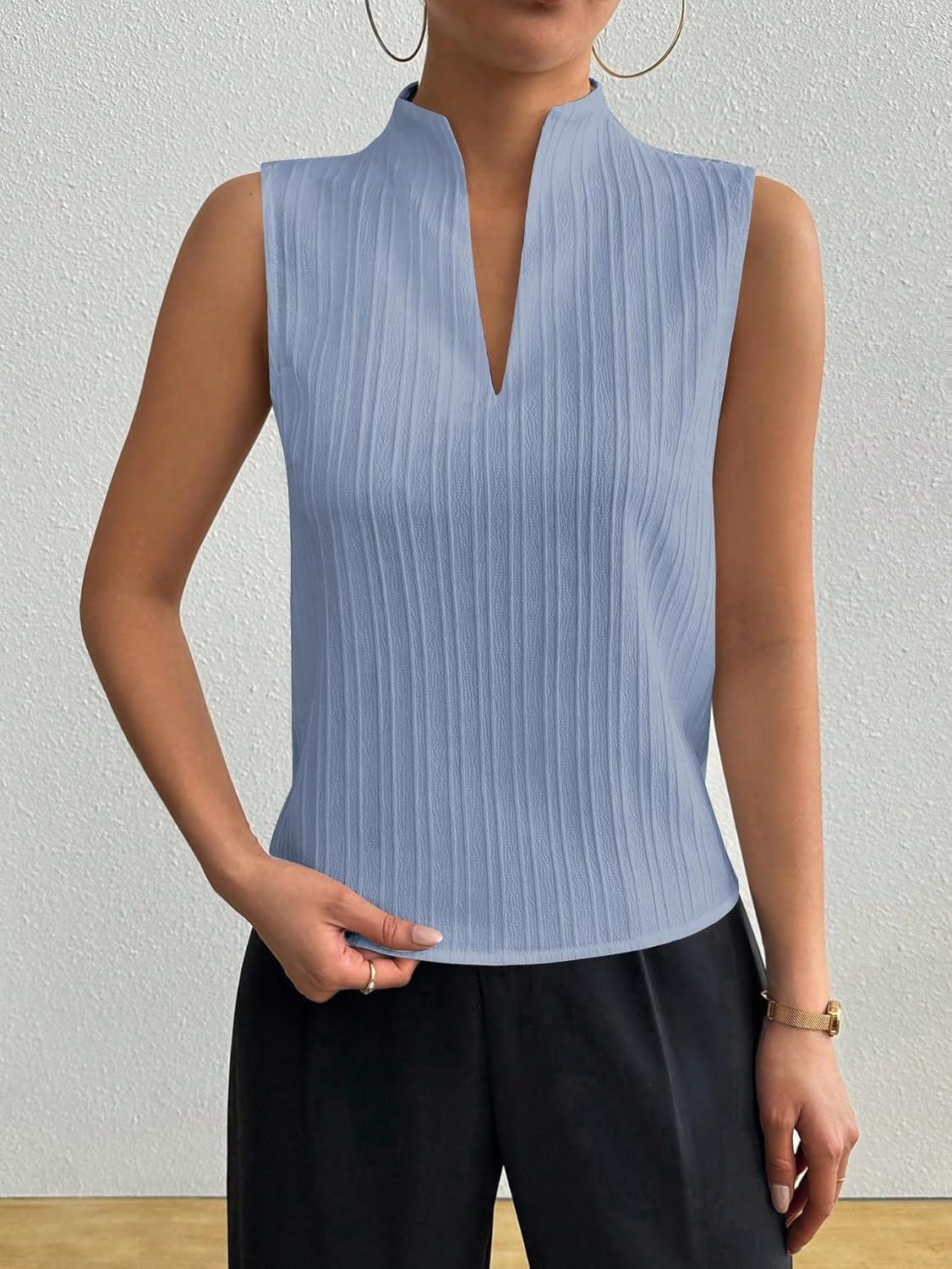 SOLY HUX Women’s Work Outfits V Neck Sleeveless Blouses Summer Casual Tank Tops Business Office Dressy Striped Shirts(Light Blue)