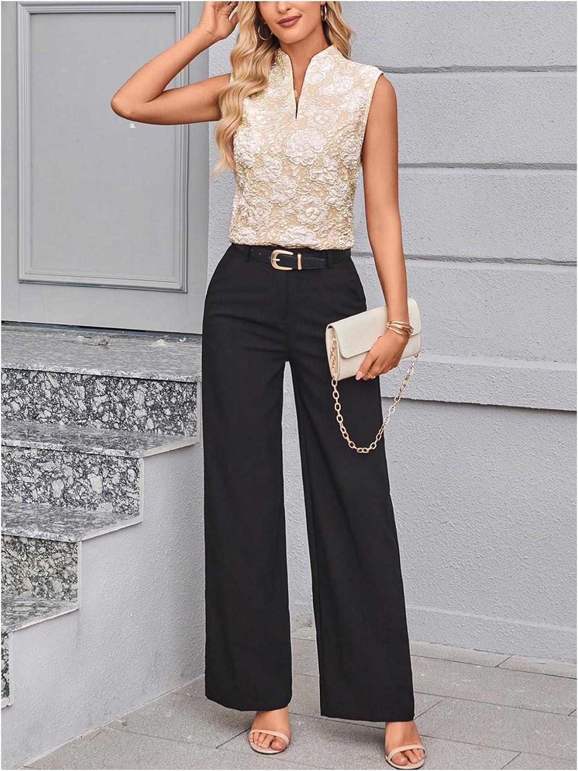 SOLY HUX Women’s Work Outfits V Neck Sleeveless Blouses Summer Casual Tank Tops Business Office Dressy Striped Shirts(Plain Apricot Floral)