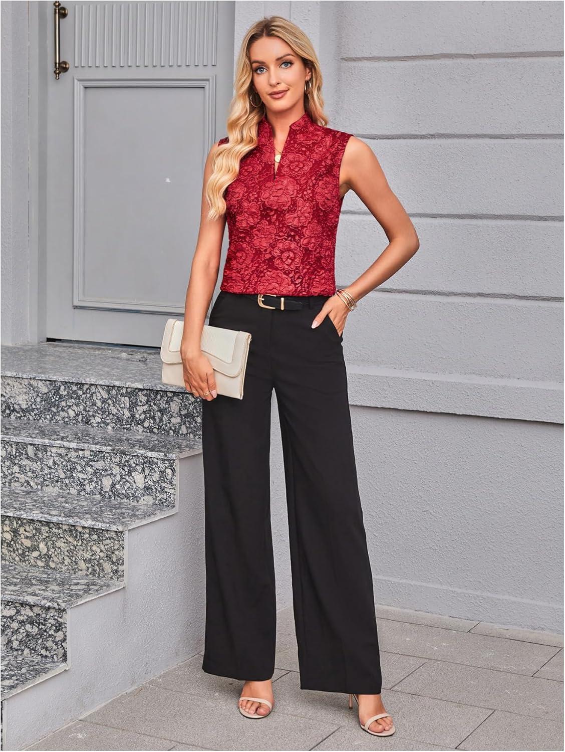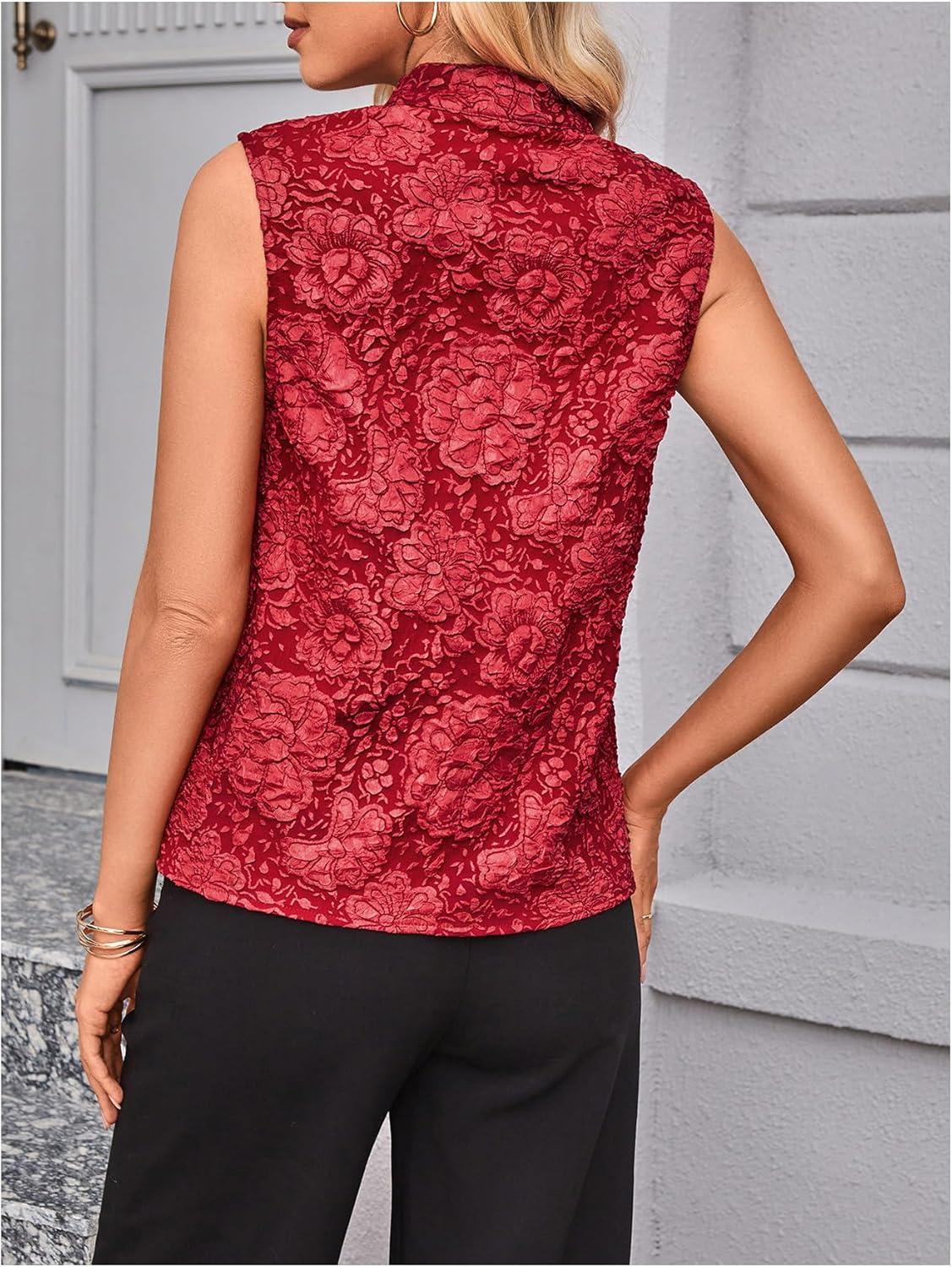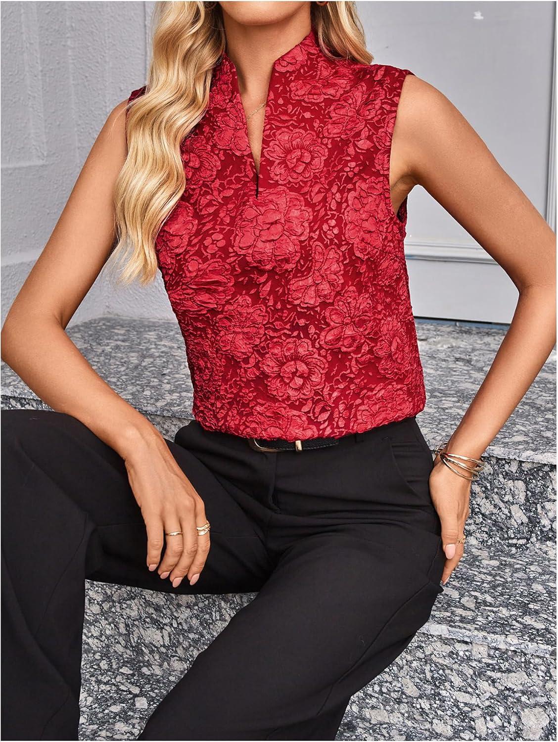 SOLY HUX Women’s Work Outfits V Neck Sleeveless Blouses Summer Casual Tank Tops Business Office Dressy Striped Shirts(Plain Red Floral)