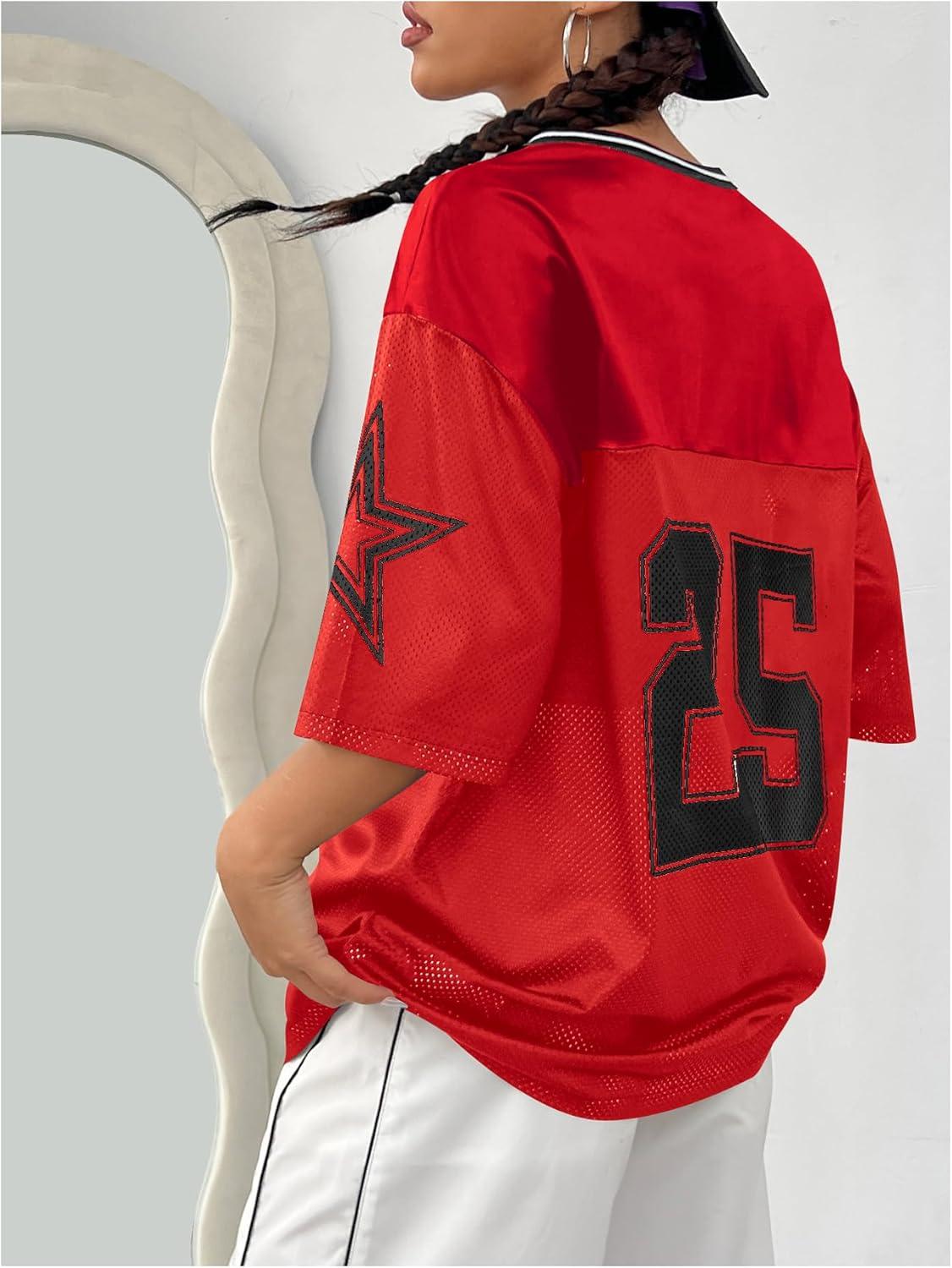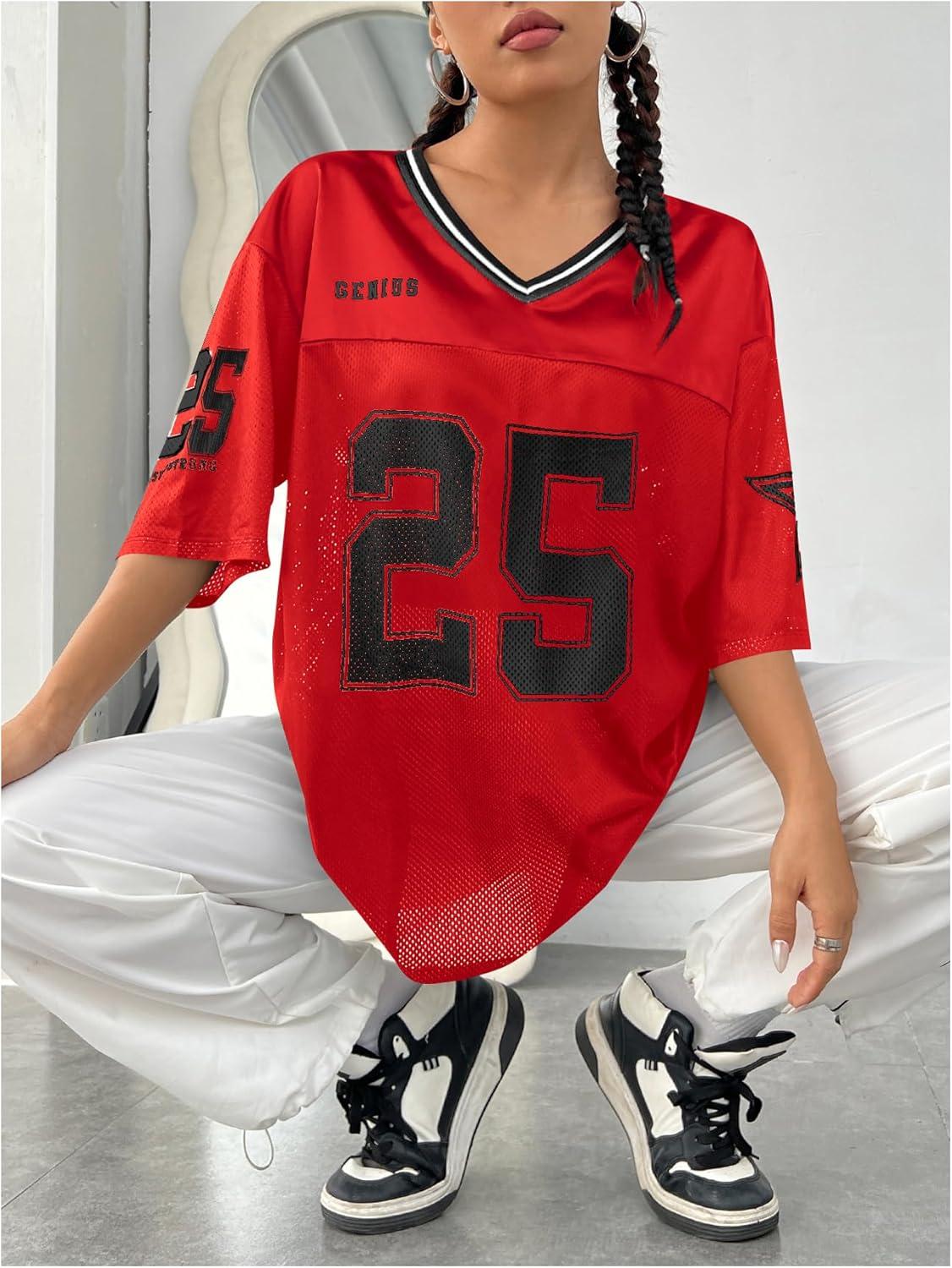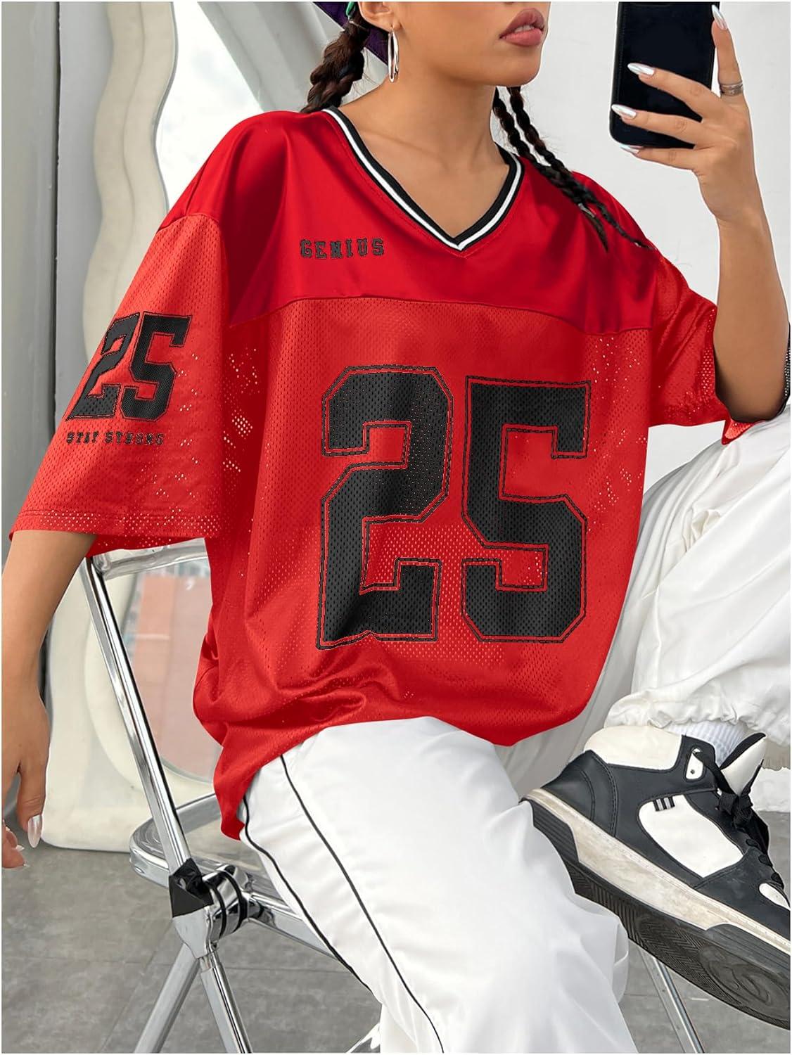 SOLY HUX Women’s Y2k Baggy T-Shirts V Neck Half Sleeve Sportswear Tees Jersey Top Streetwear(Red Number)