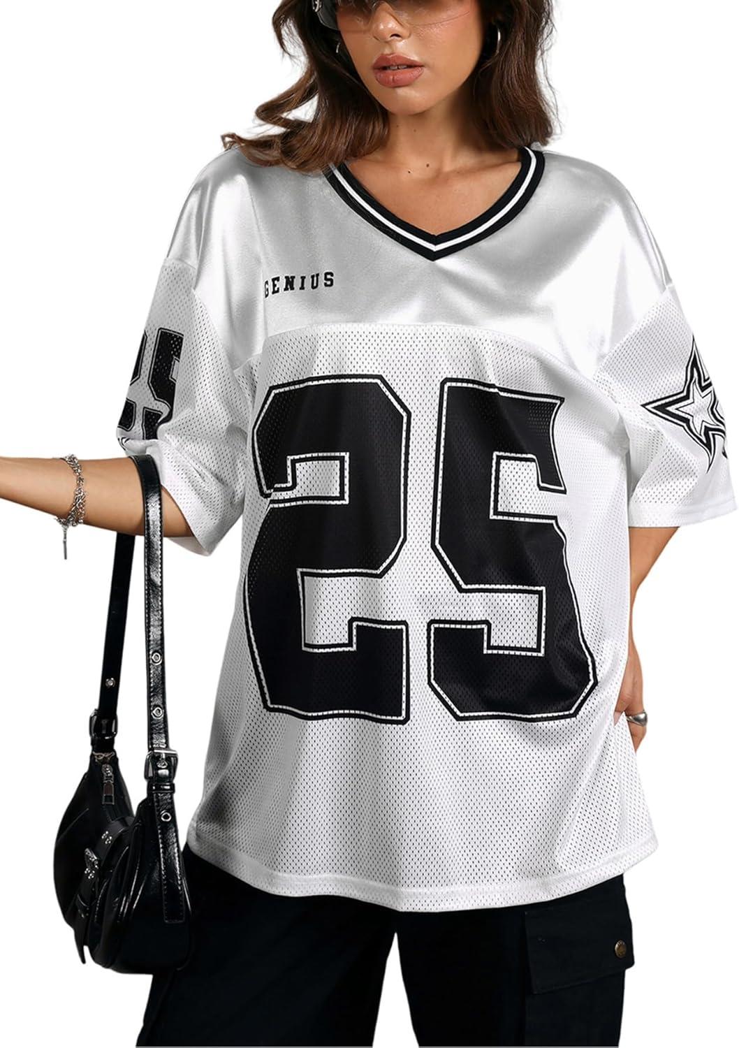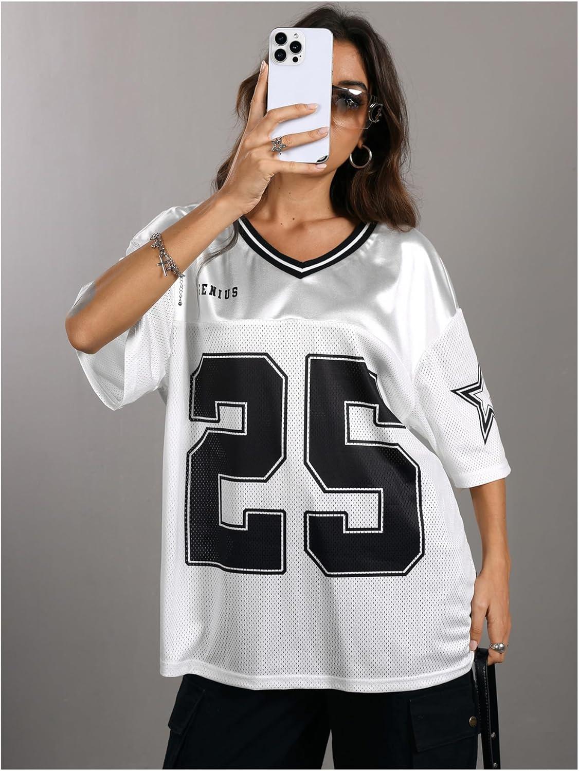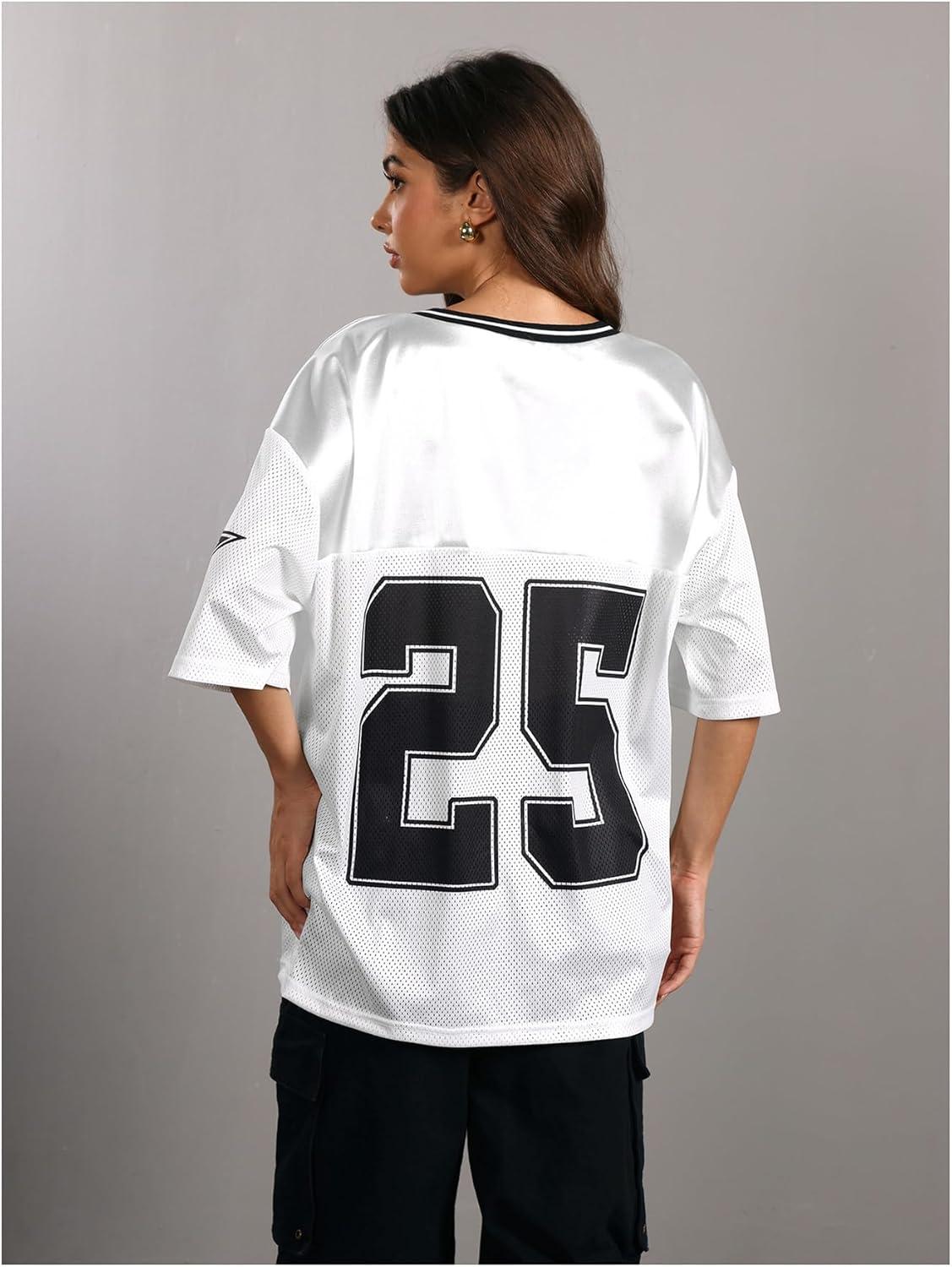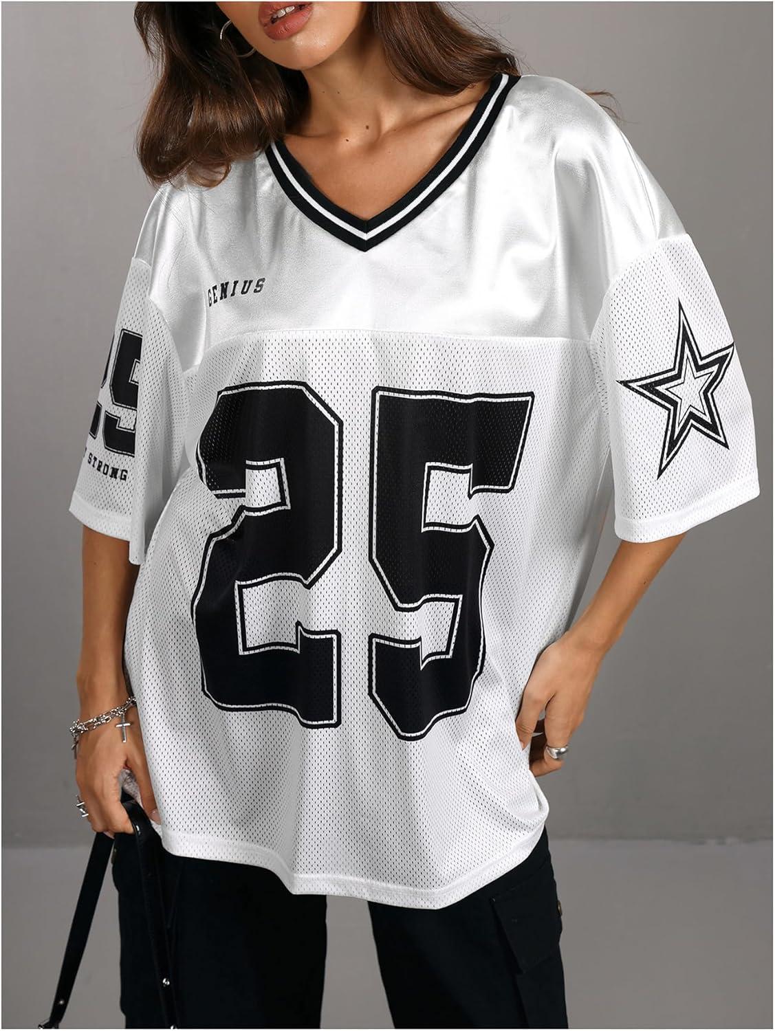 SOLY HUX Women’s Y2k Baggy T-Shirts V Neck Half Sleeve Sportswear Tees Jersey Top Streetwear(White Number)