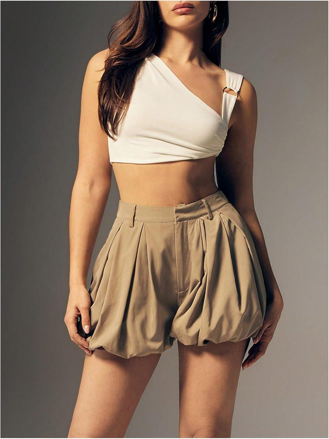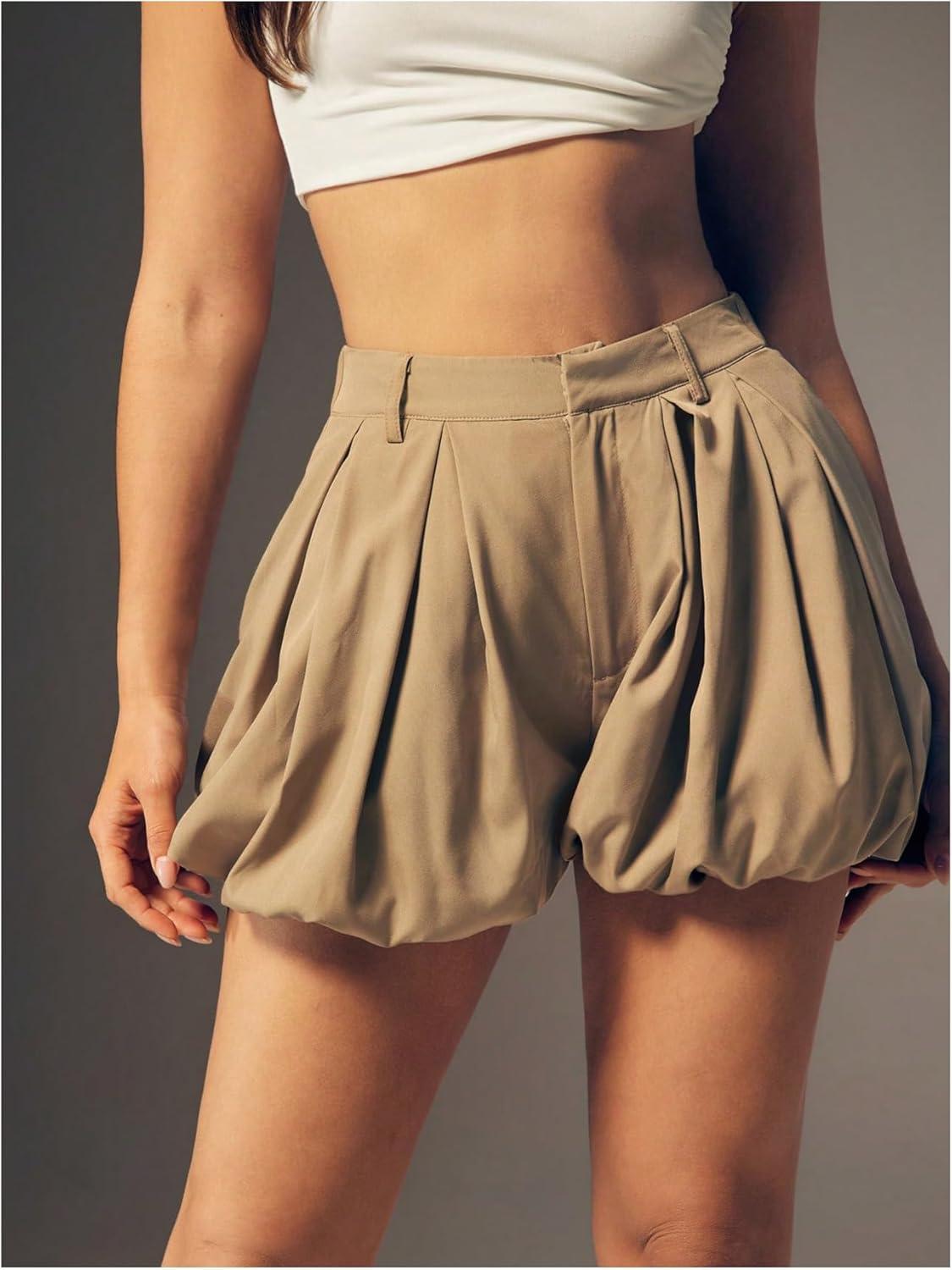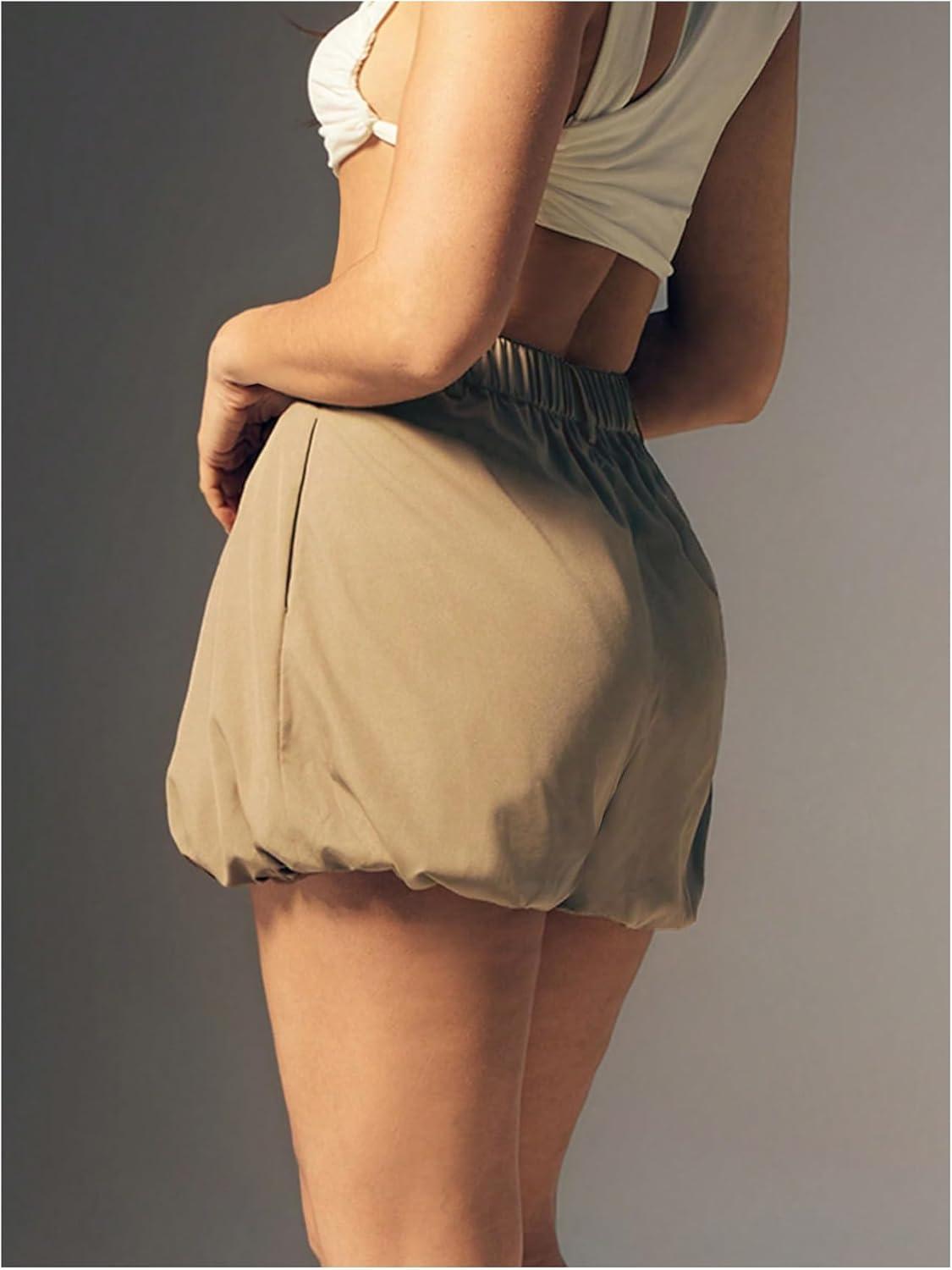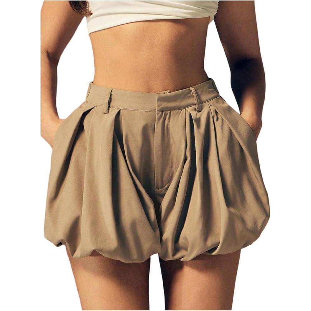 SOLY HUX Women’s Y2k Bubble Shorts High Waisted Puffy Balloon Summer Mini Shorts with Pockets(Plain Khaki)