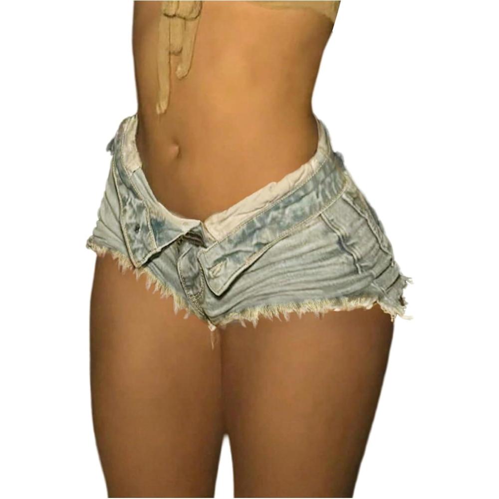 SOLY HUX Women’s Y2k Distressed Mini Denim Shorts Low Waist Jeans Short Pants Party Rave Clubwear(Light Wash)