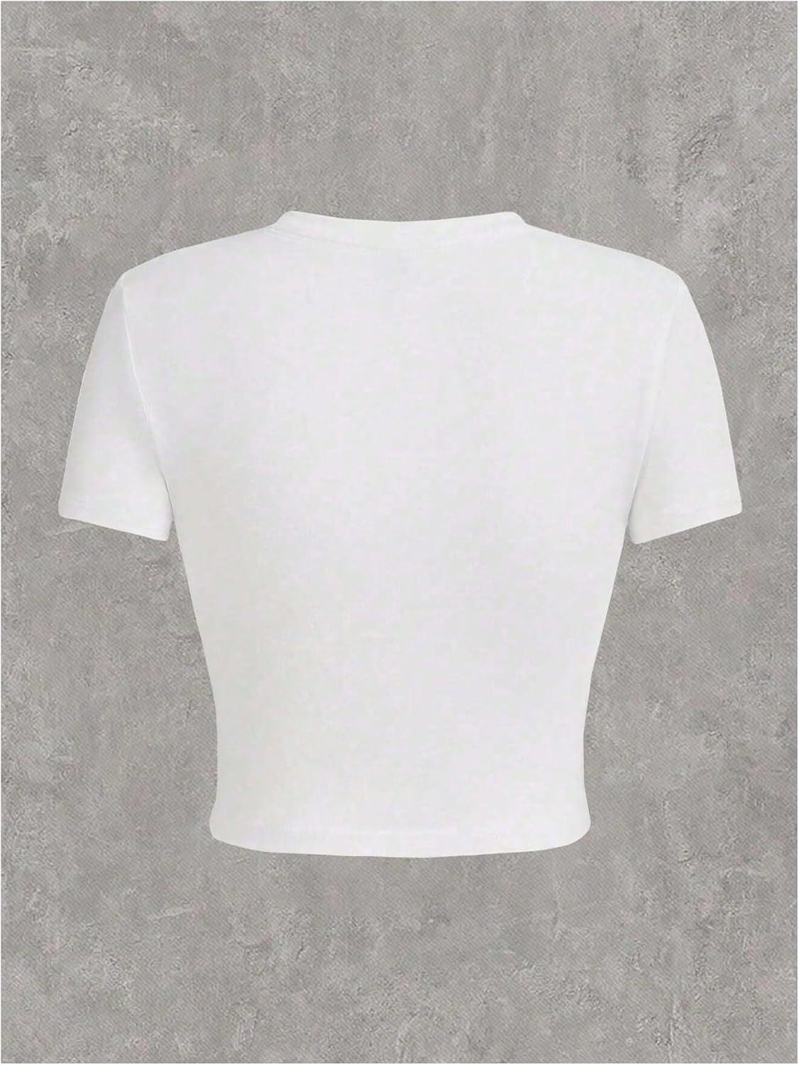 SOLY HUX Women’s Y2k Graphic Tees Short Sleeve Aesthetic Vintage T Shirt Summer Crop Tops(White Graphic)
