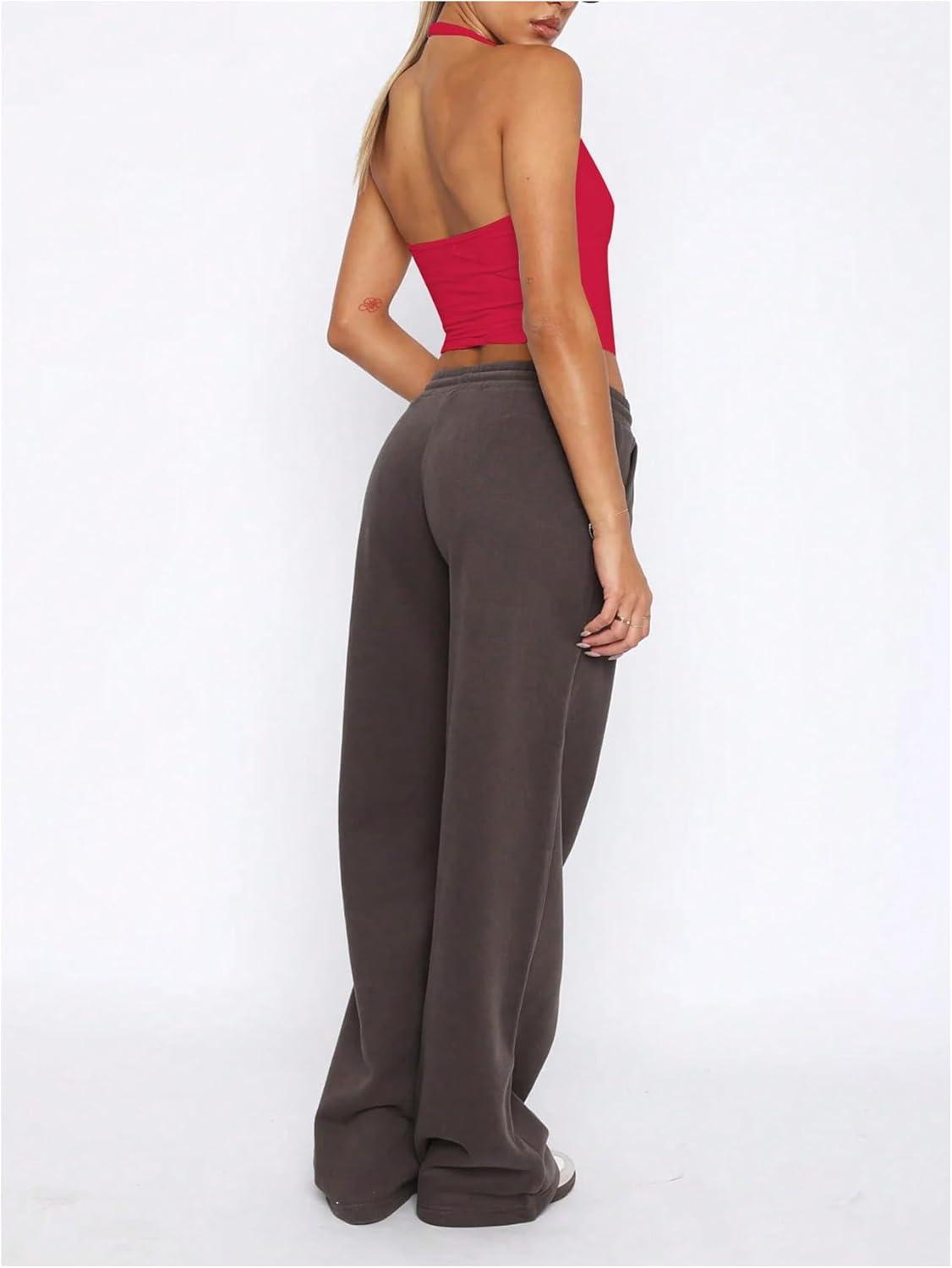SOLY HUX Women’s Y2K Halter Crop Tops V Neck Sleeveless Backless Going Out Slim Fit Tops(Solid Red)