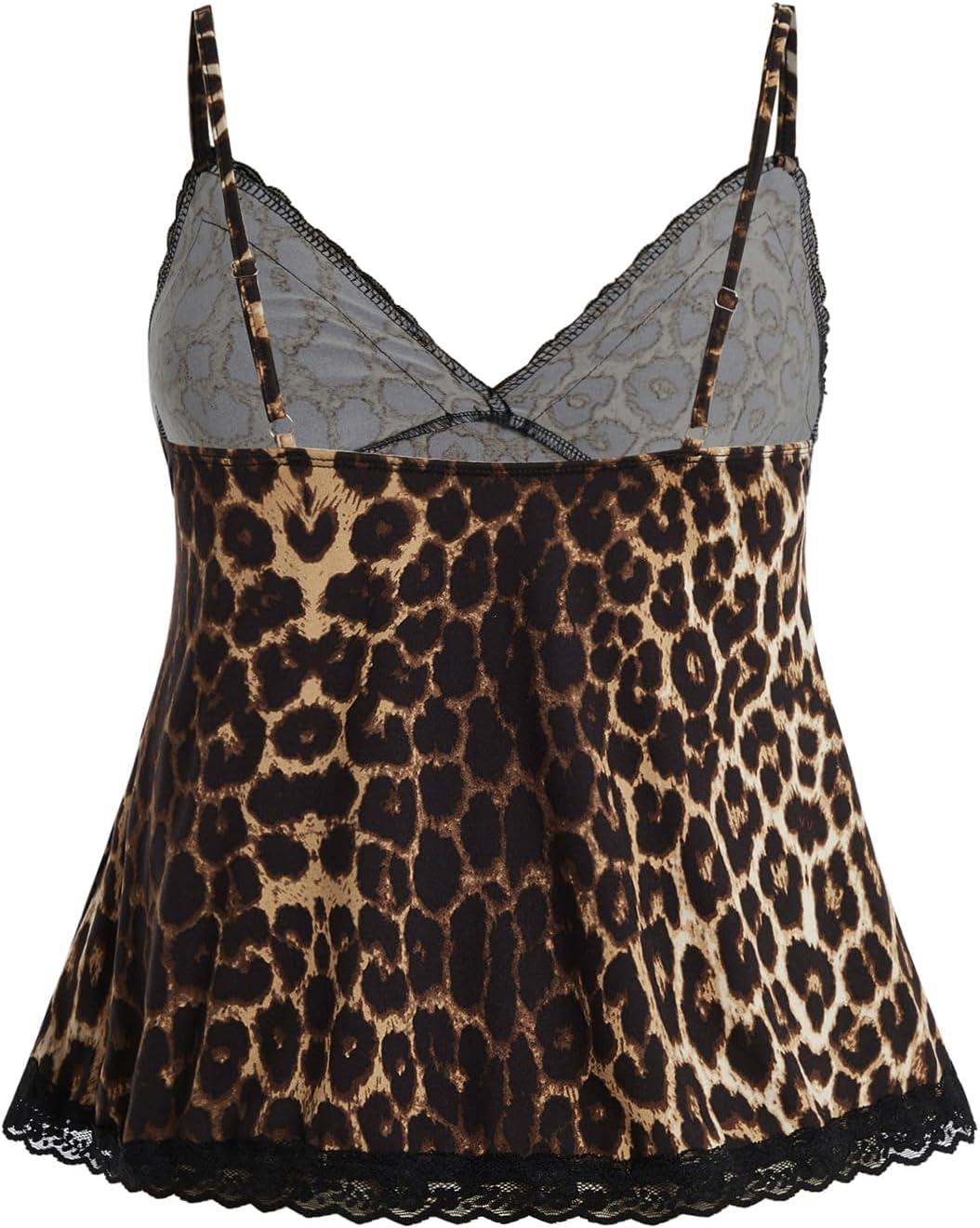 SOLY HUX Womens Y2K Lace Cami Sleeveless Striped Spaghetti Strap Camisole Gothic Babydoll Tops(Brown Leopard)