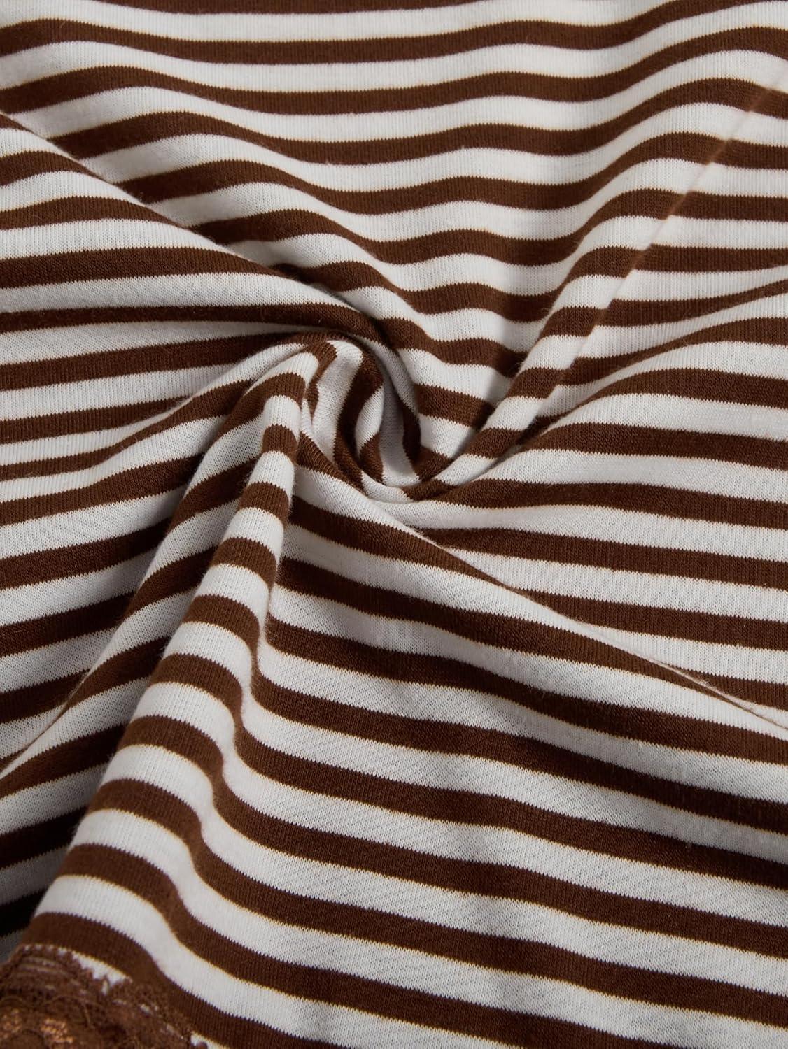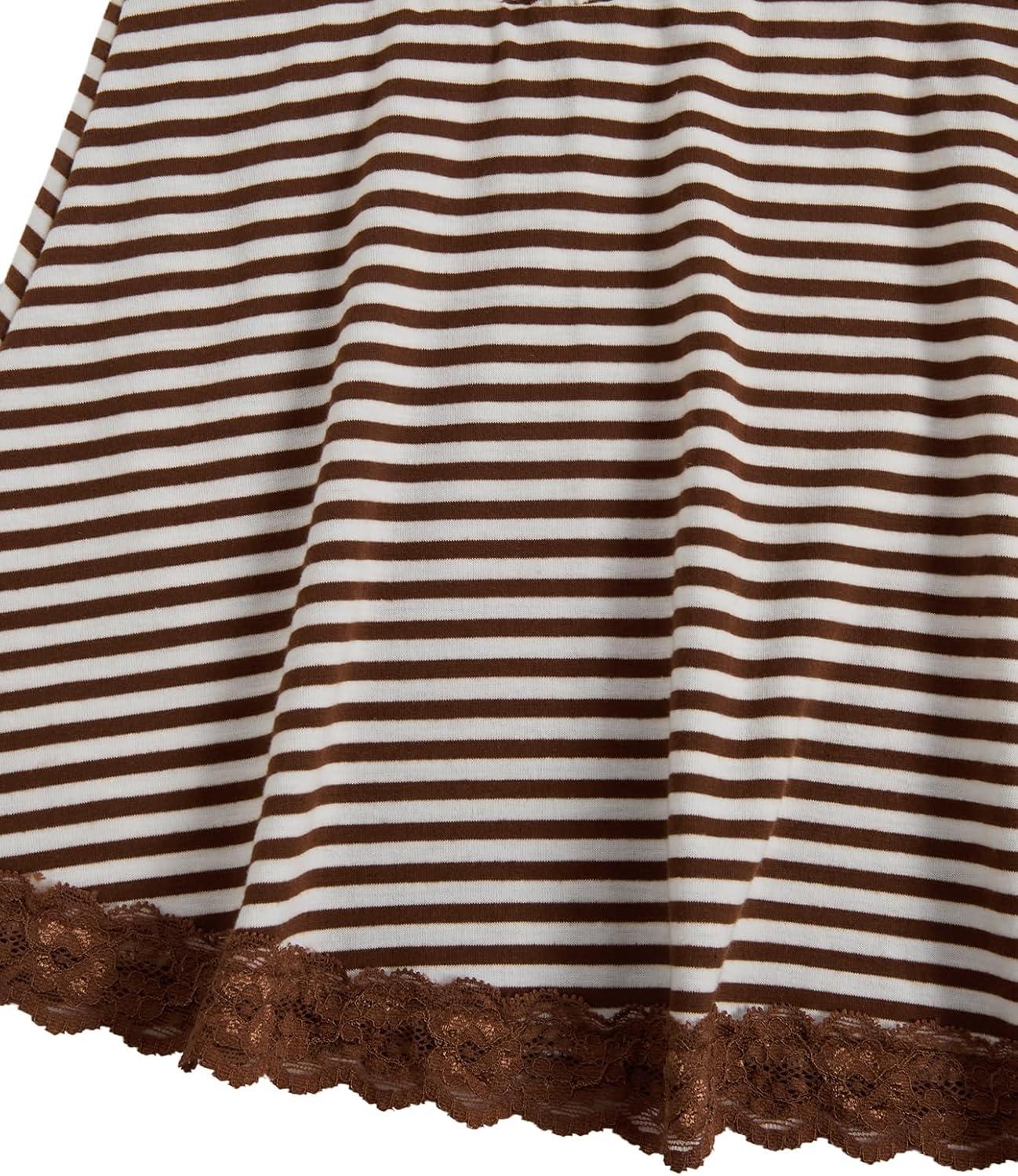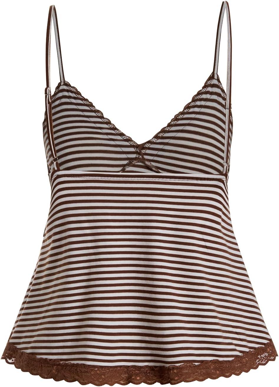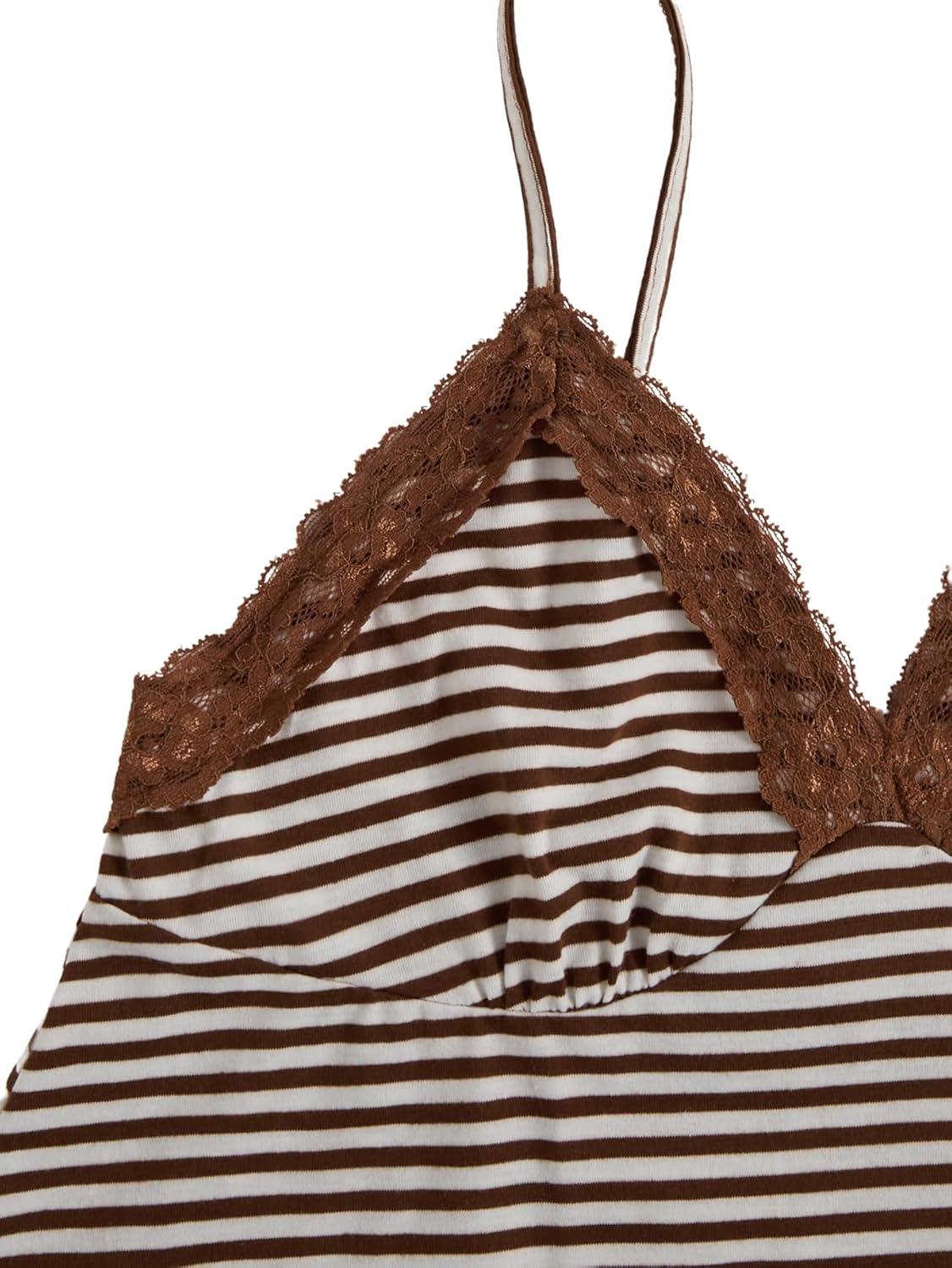 SOLY HUX Womens Y2K Lace Cami Sleeveless Striped Spaghetti Strap Camisole Gothic Babydoll Tops(Coffee Brown Striped)