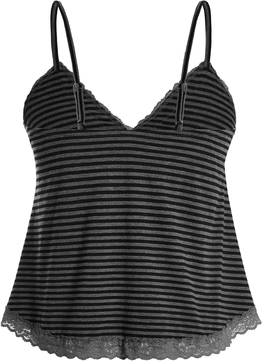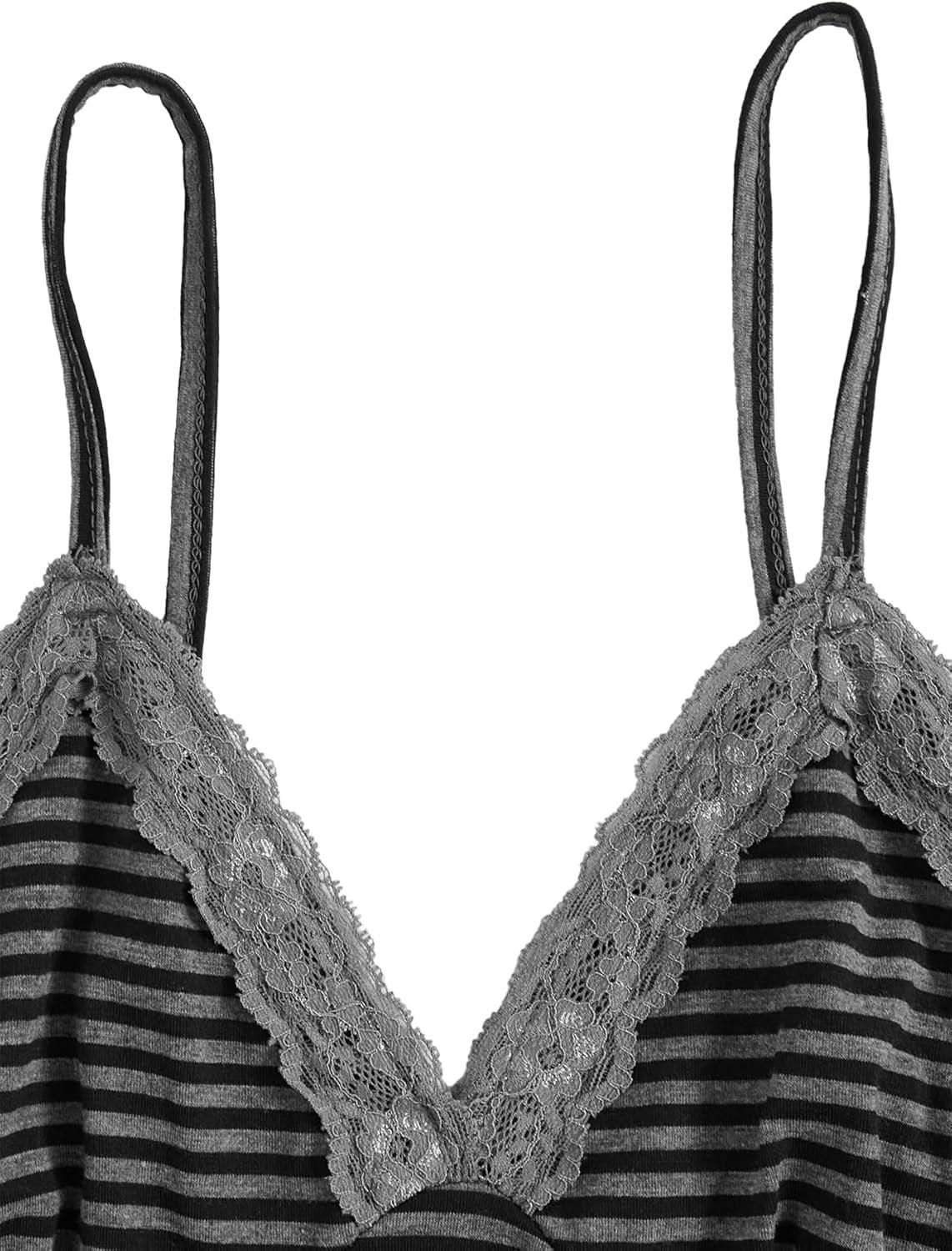 SOLY HUX Womens Y2K Lace Cami Sleeveless Striped Spaghetti Strap Camisole Gothic Babydoll Tops(Grey Black Striped)