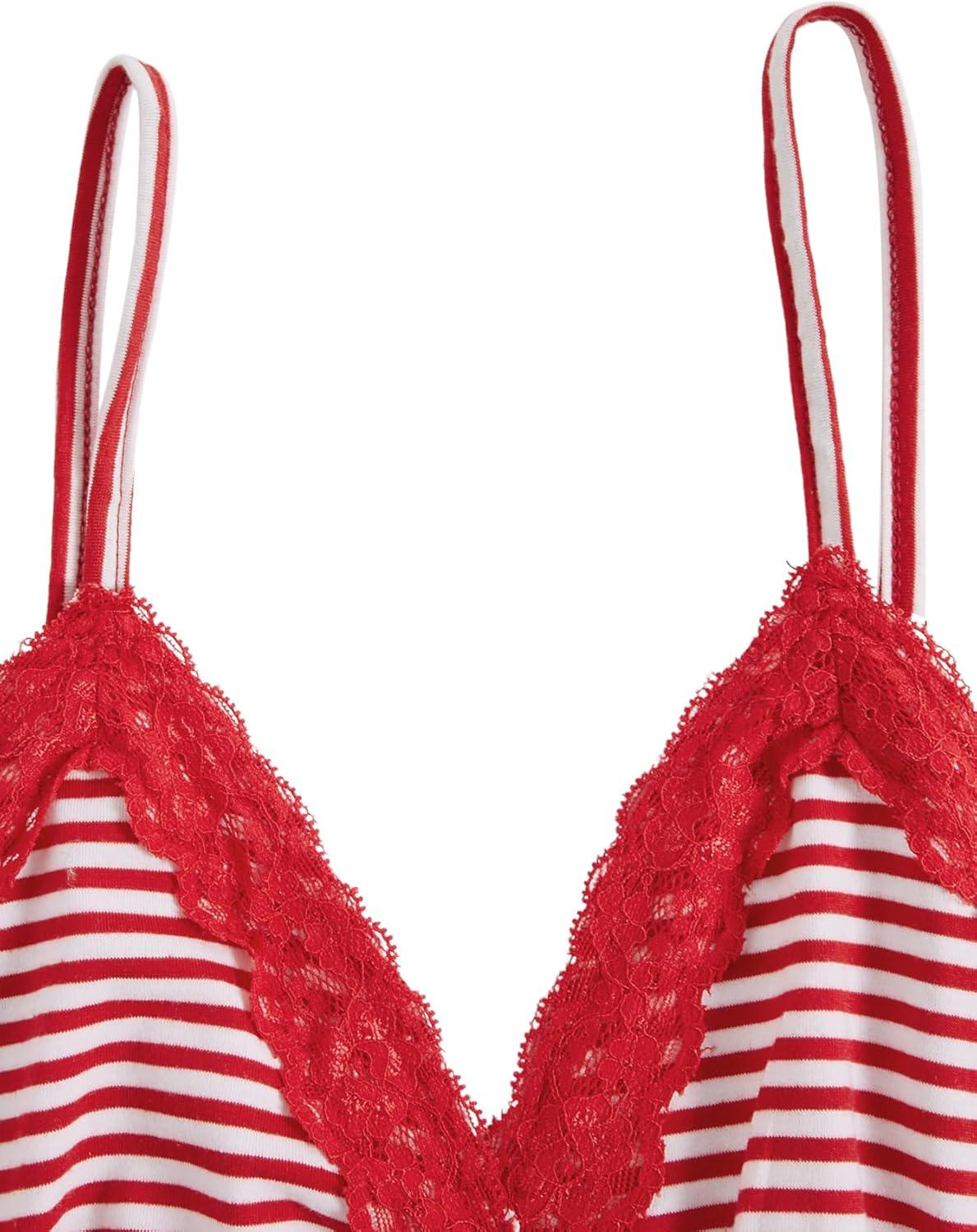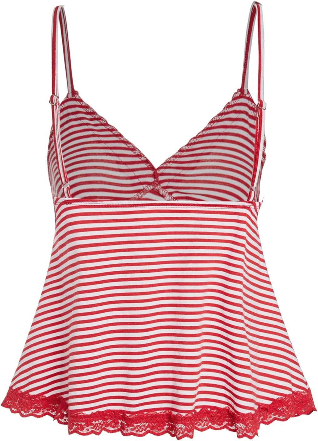 SOLY HUX Womens Y2K Lace Cami Sleeveless Striped Spaghetti Strap Camisole Gothic Babydoll Tops(Red White Striped)