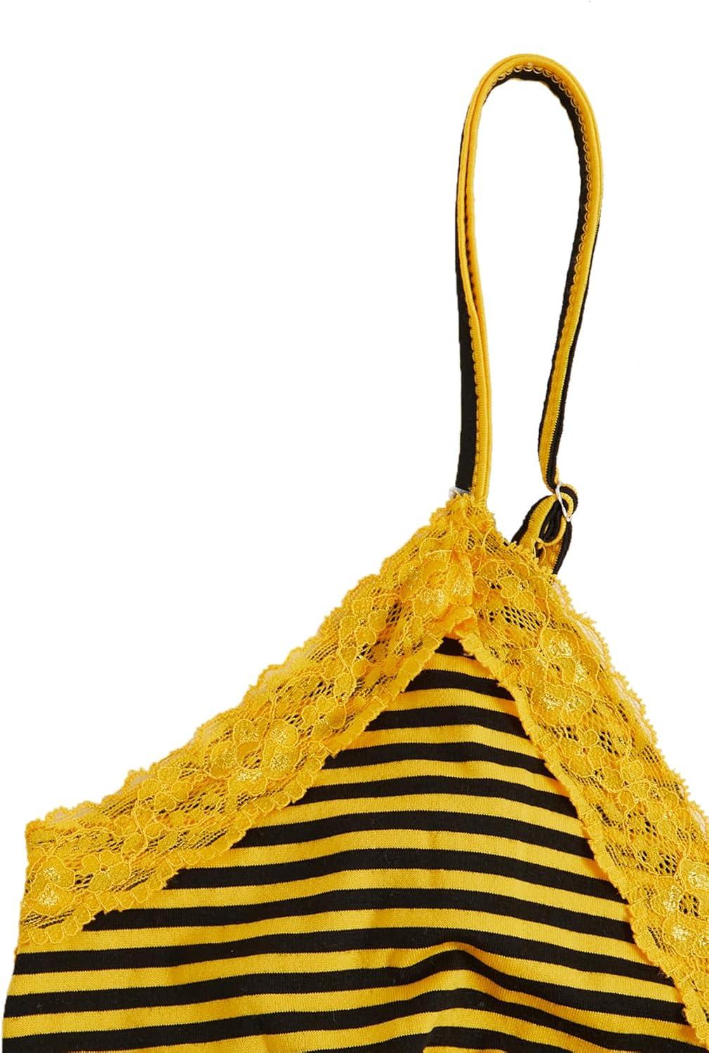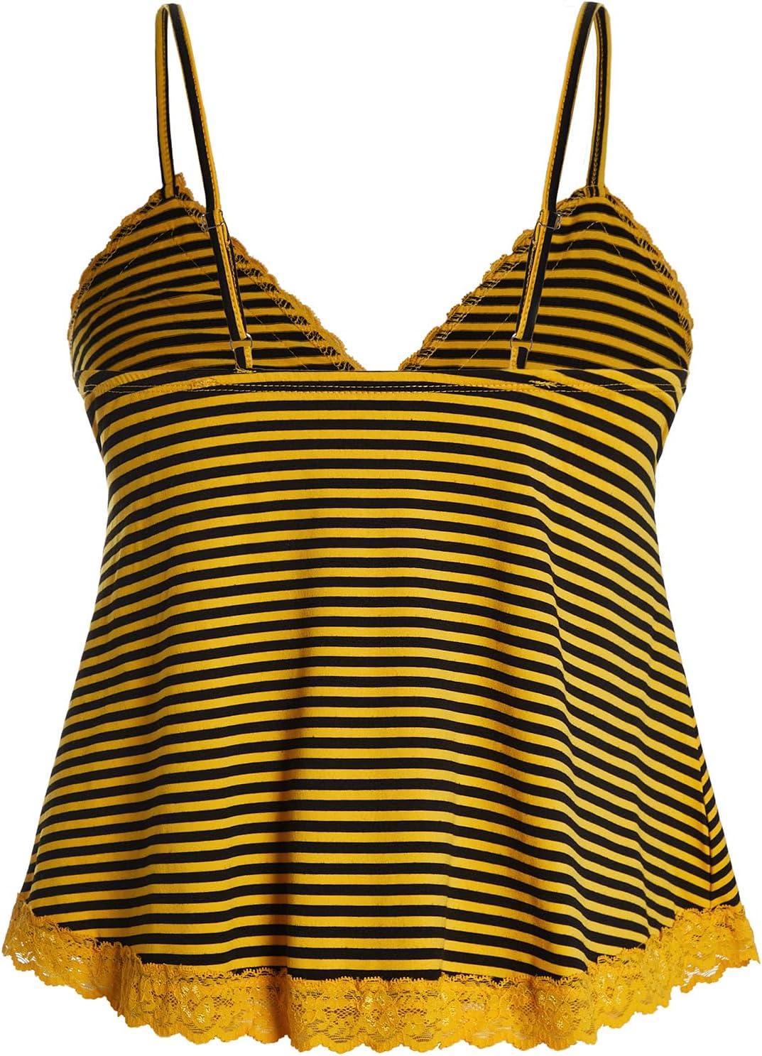 SOLY HUX Womens Y2K Lace Cami Sleeveless Striped Spaghetti Strap Camisole Gothic Babydoll Tops(Yellow Black Striped)