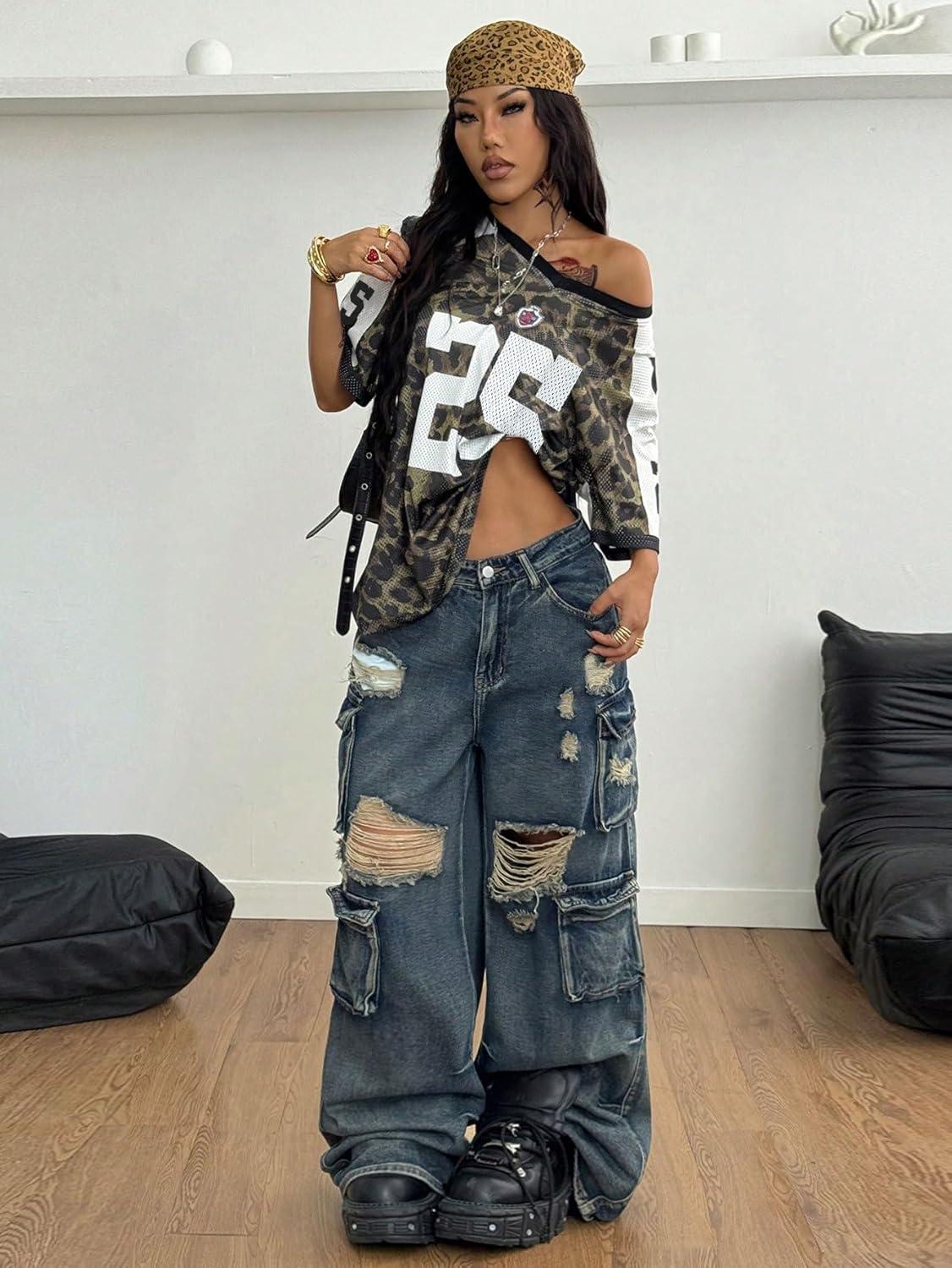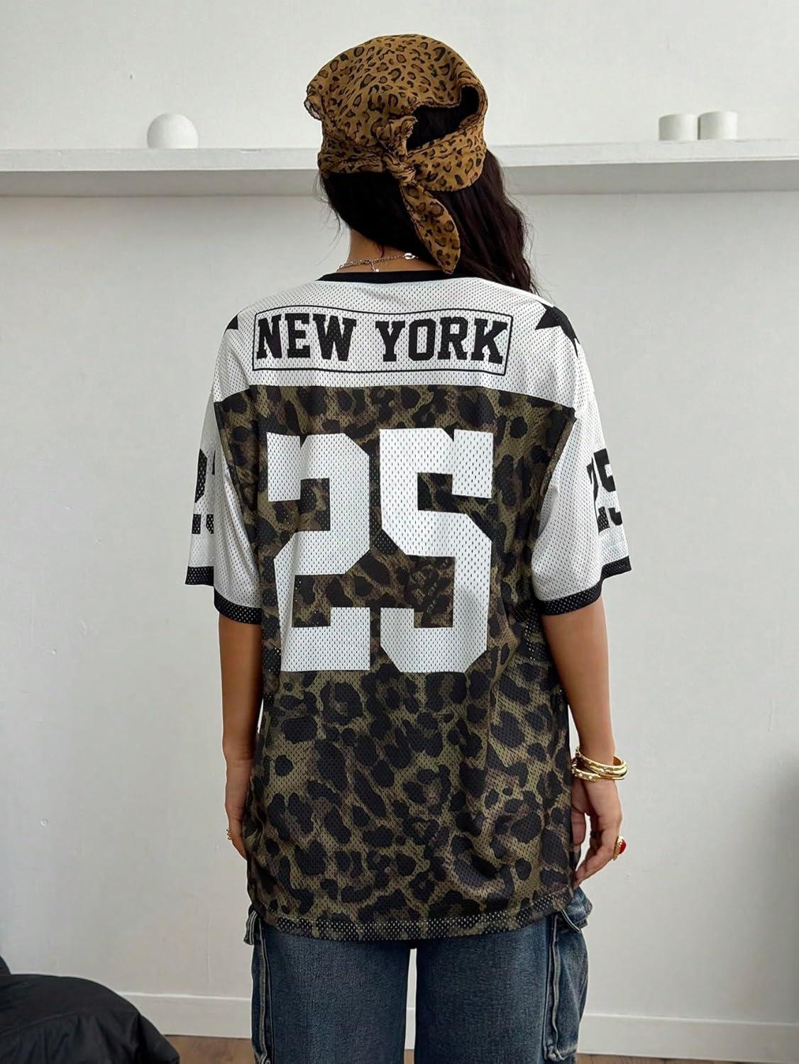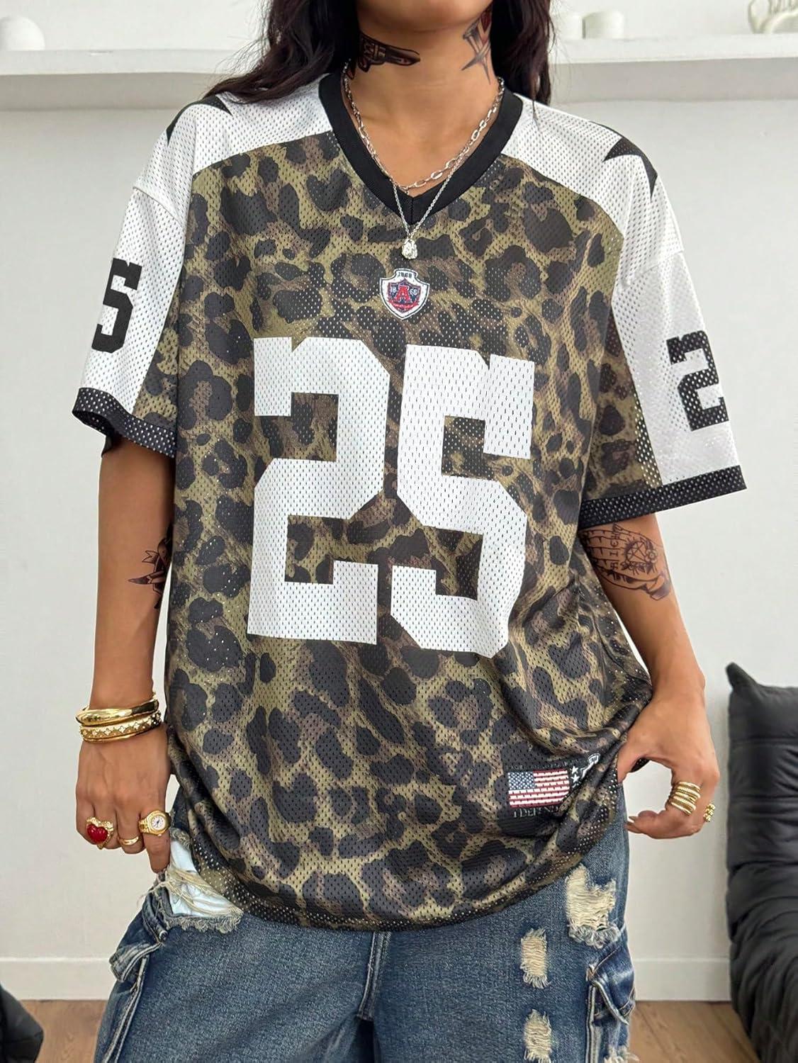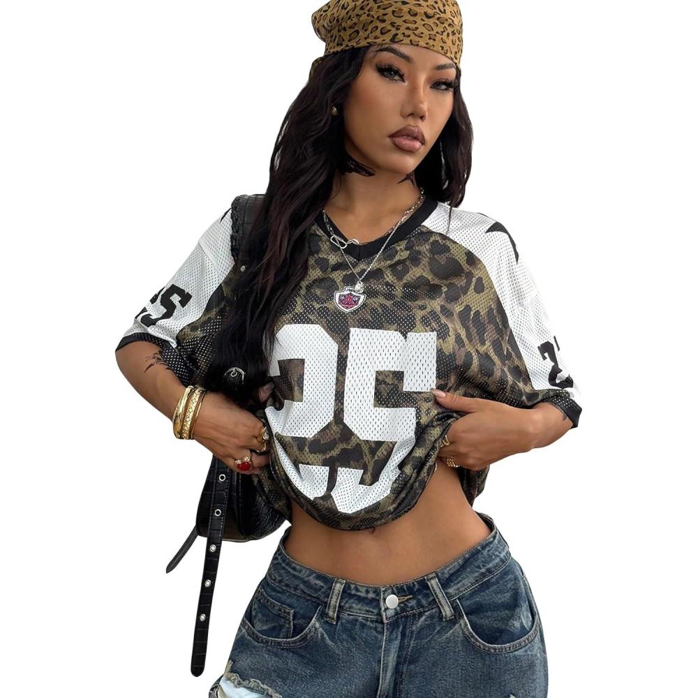 SOLY HUX Women’s Y2k Leopard Number Graphic Oversized Tops Football Jersey Shirts Streetwear(Multi Leopard)