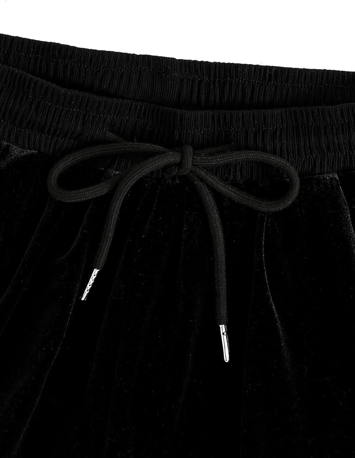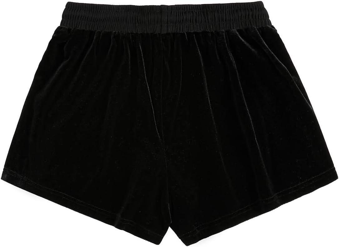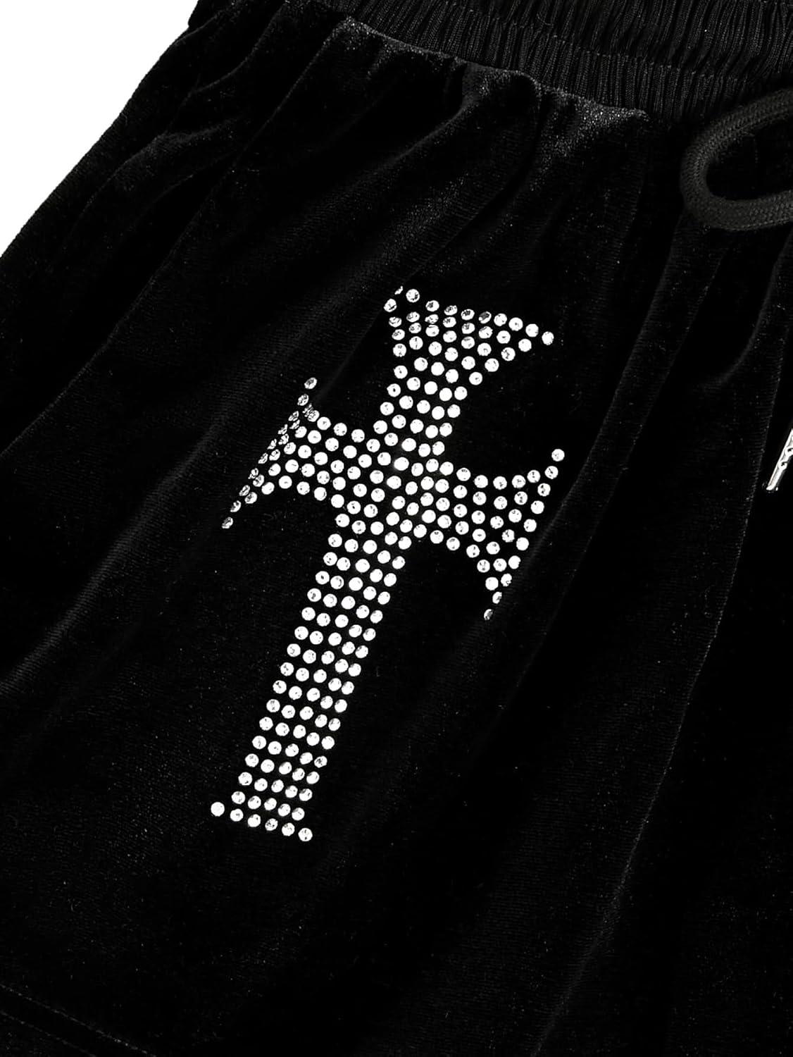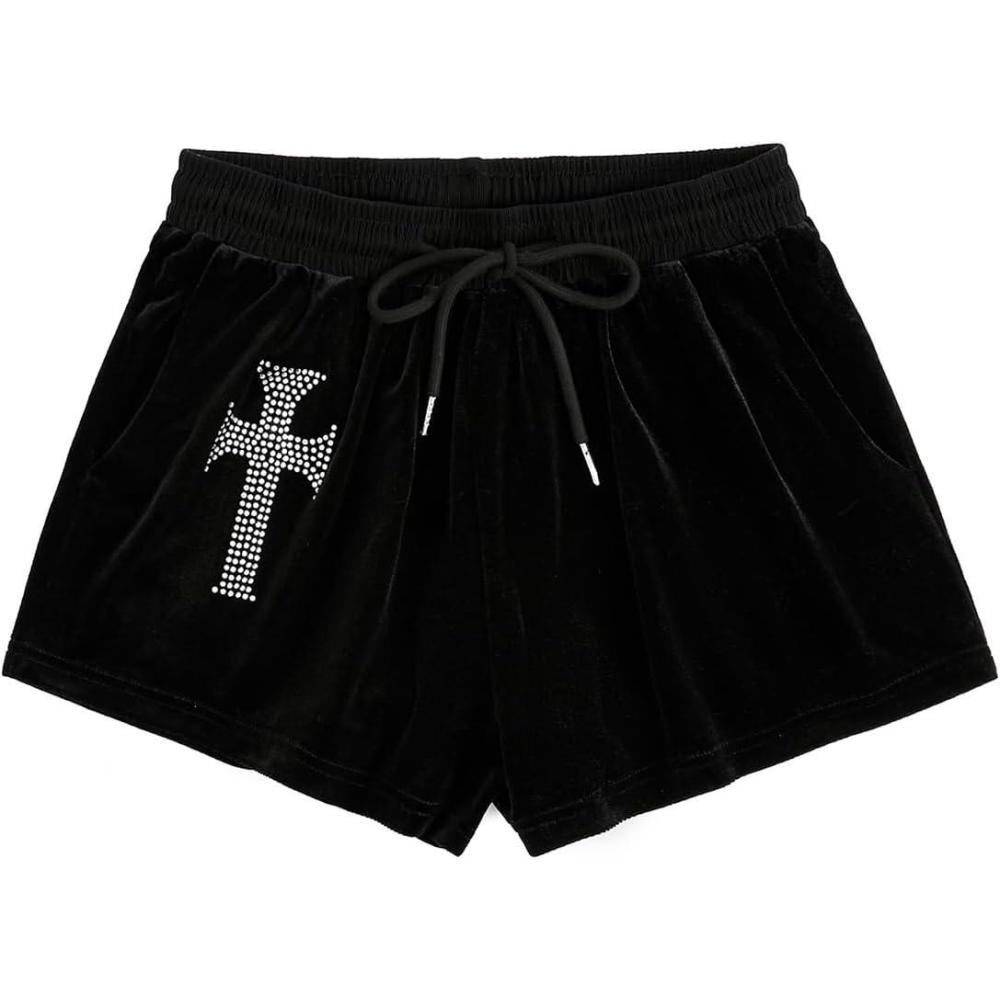 SOLY HUX Women’s Y2k Rhinestone Velvet Shorts Drawstring Elastic Waist Track Shorts(Black Geometric)