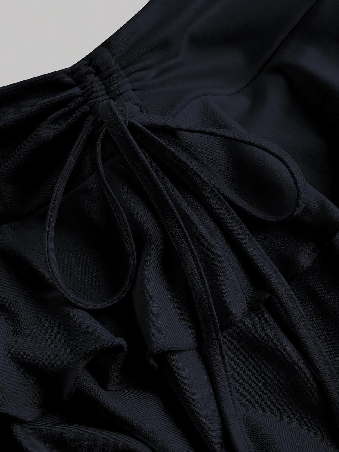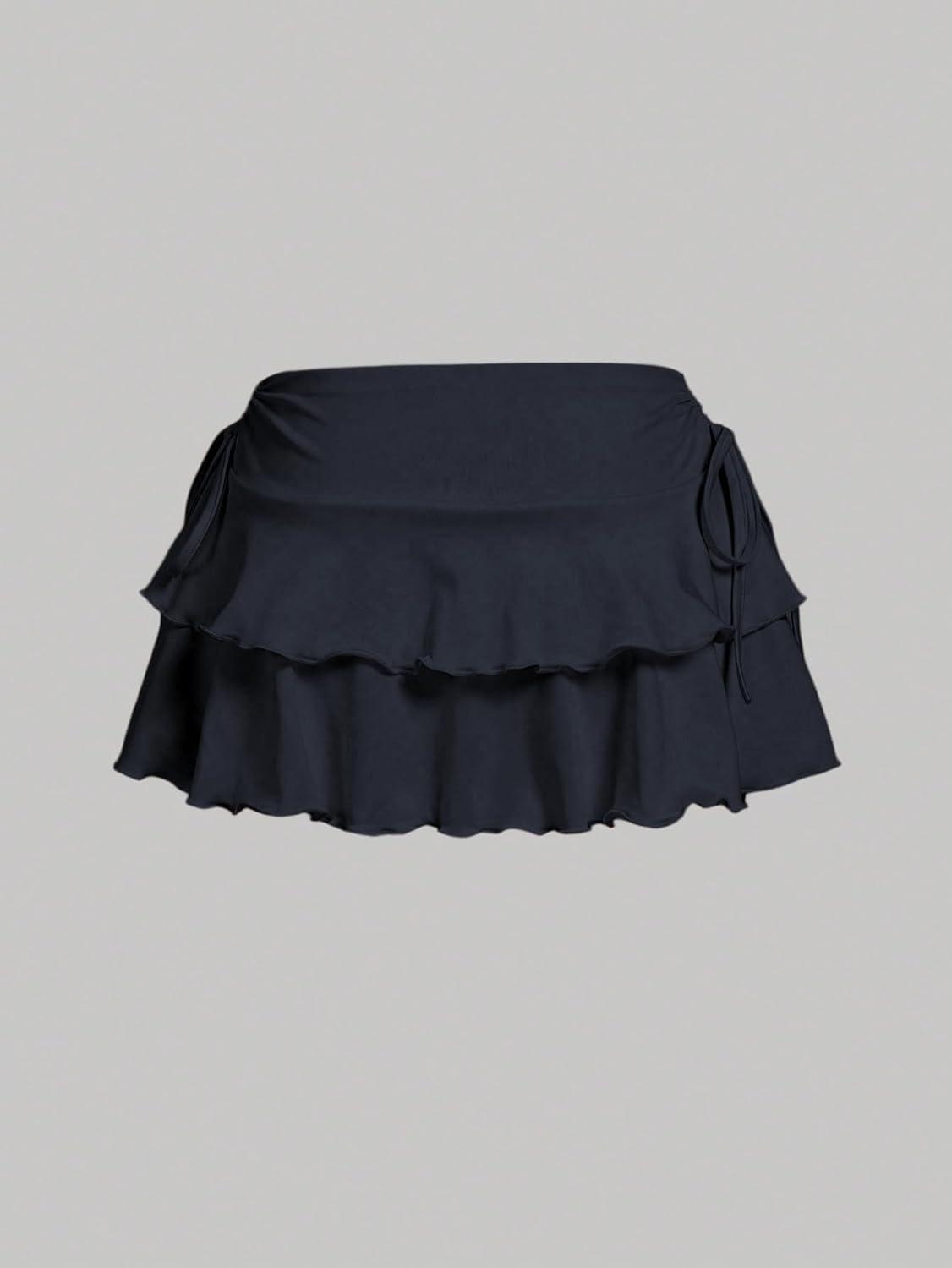 SOLY HUX Women’s Y2K Ruffle Mini Skirt with Shorts Underneath High Waisted Tiered Skirts Coquette Skorts(Plain Dark Blue)