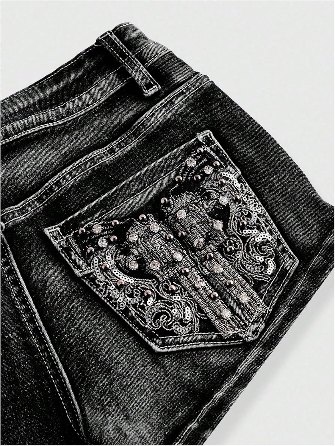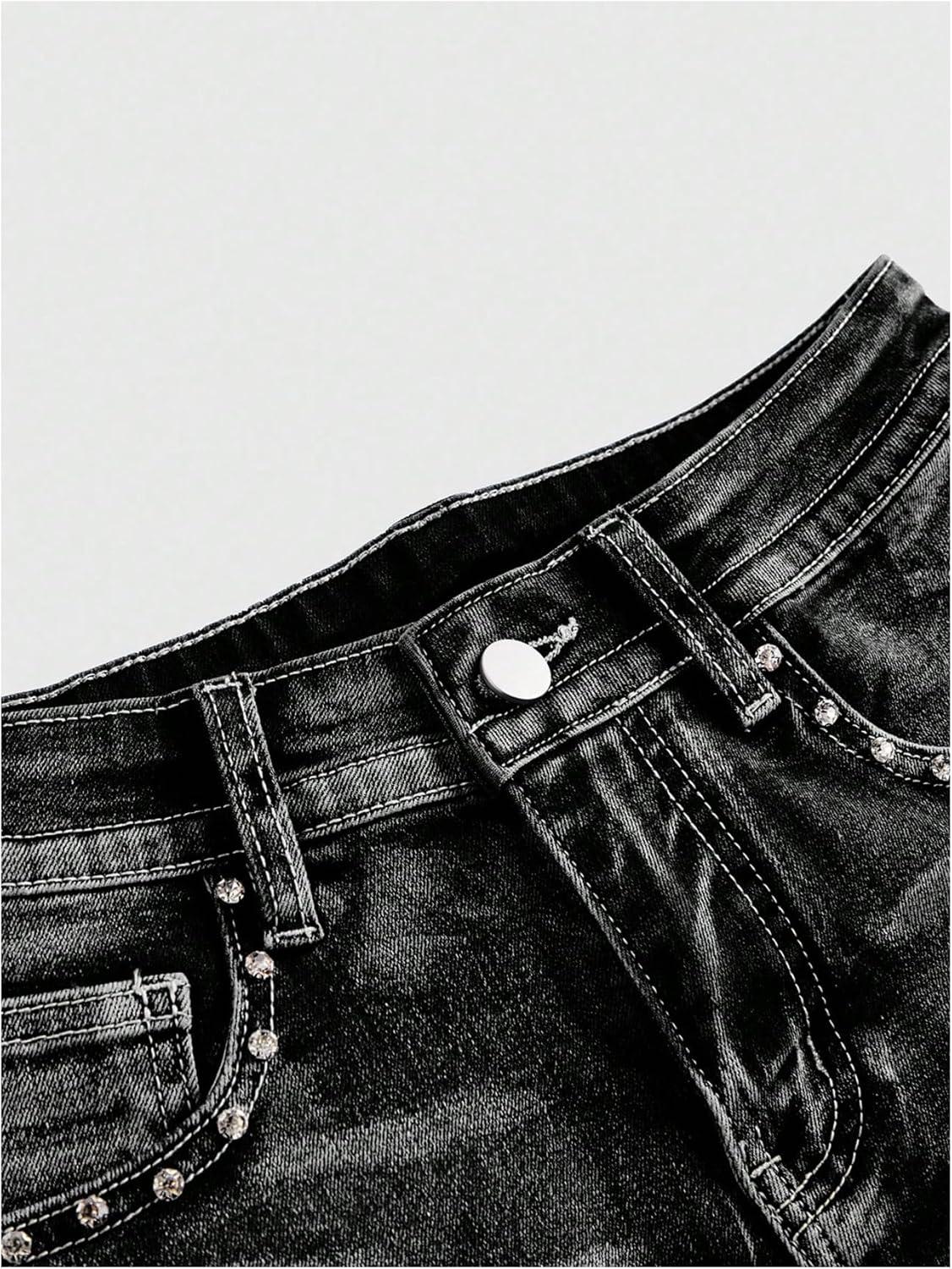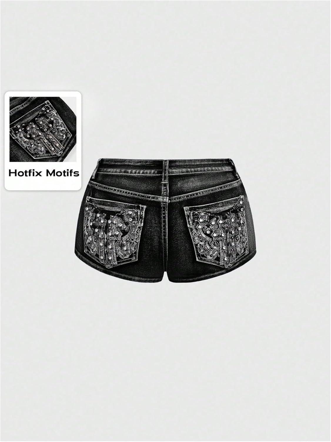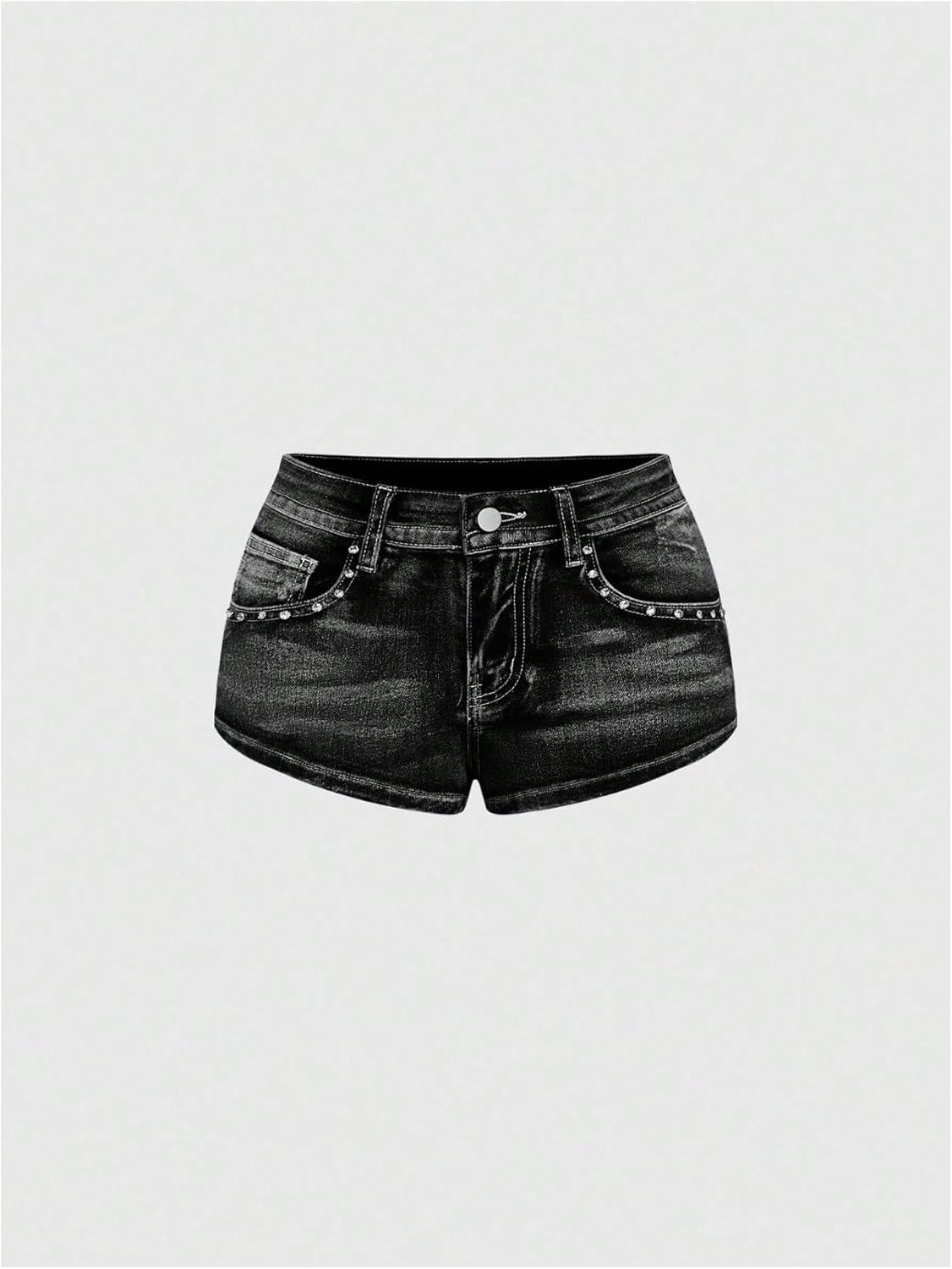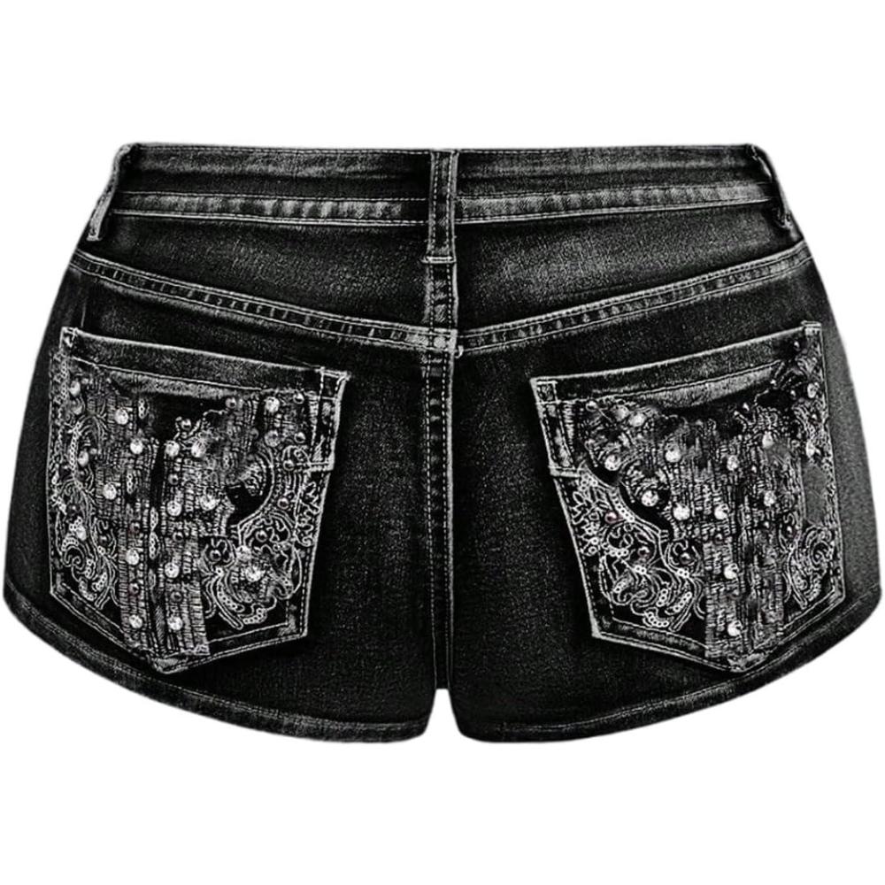 SOLY HUX Women’s Y2k Sparkly Jeans Skinny Mini Denim Shorts Music Festival Rave Outfits(Dark Grey)