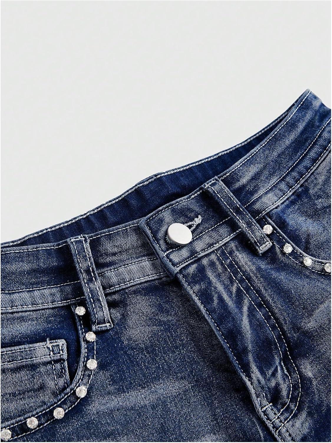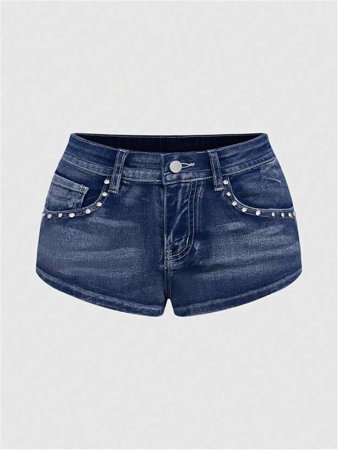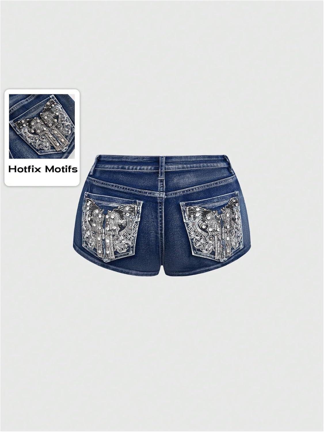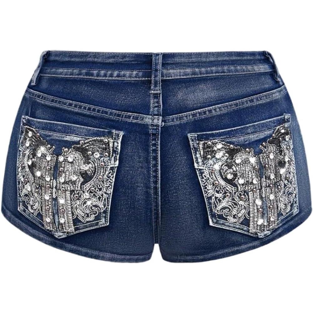 SOLY HUX Women’s Y2k Sparkly Jeans Skinny Mini Denim Shorts Music Festival Rave Outfits(Dark Wash)