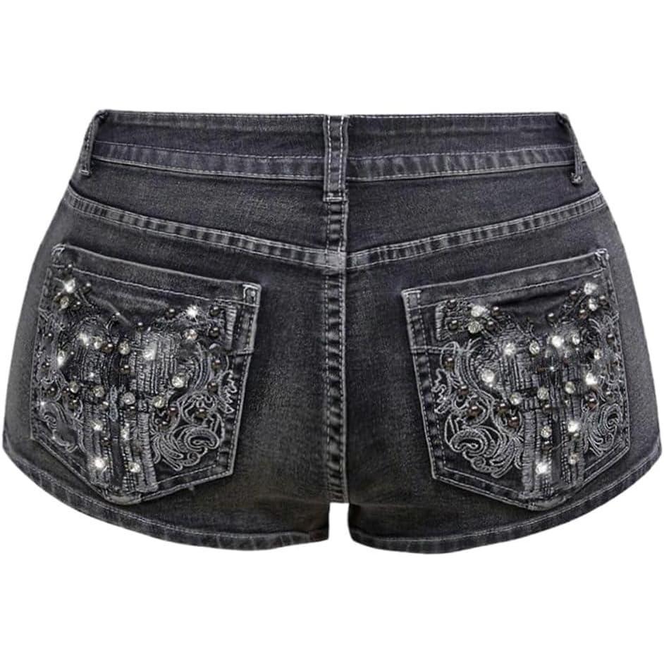 SOLY HUX Women’s Y2k Sparkly Jeans Skinny Mini Denim Shorts Music Festival Rave Outfits(Grey Graphic)