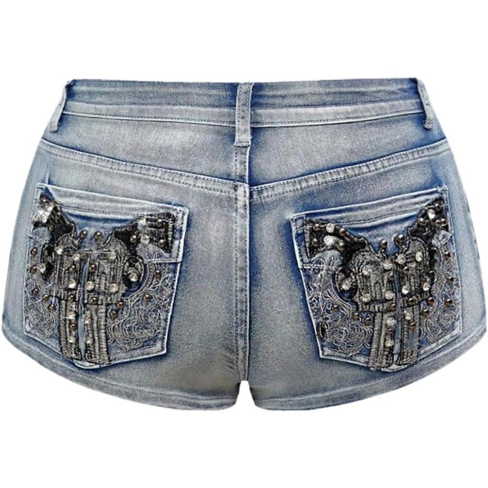 SOLY HUX Women’s Y2k Sparkly Jeans Skinny Mini Denim Shorts Music Festival Rave Outfits(Light Blue)