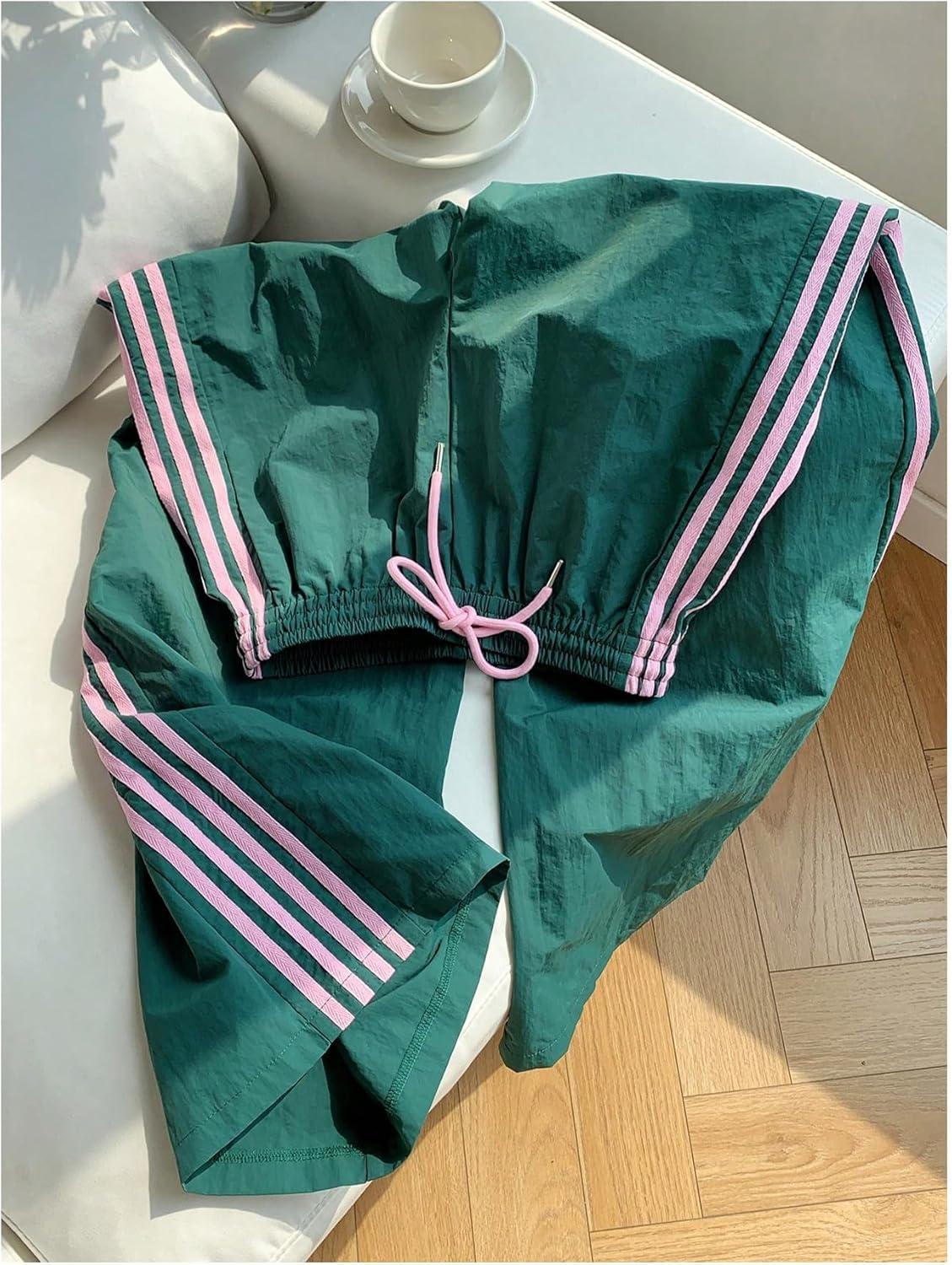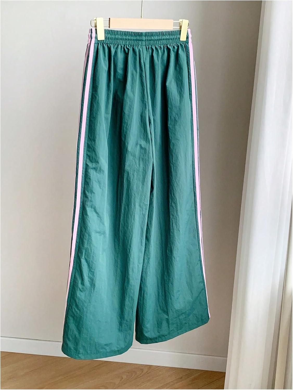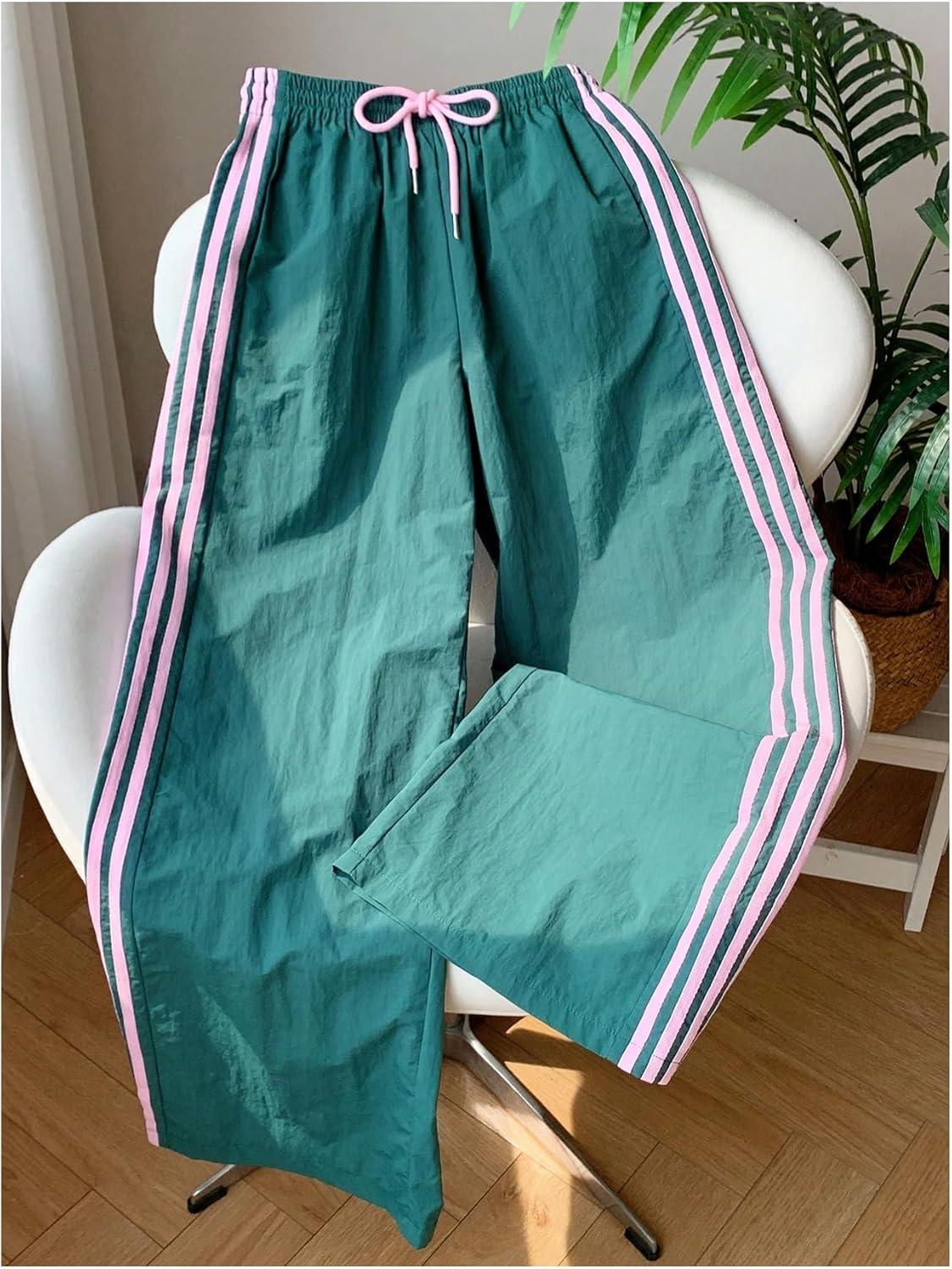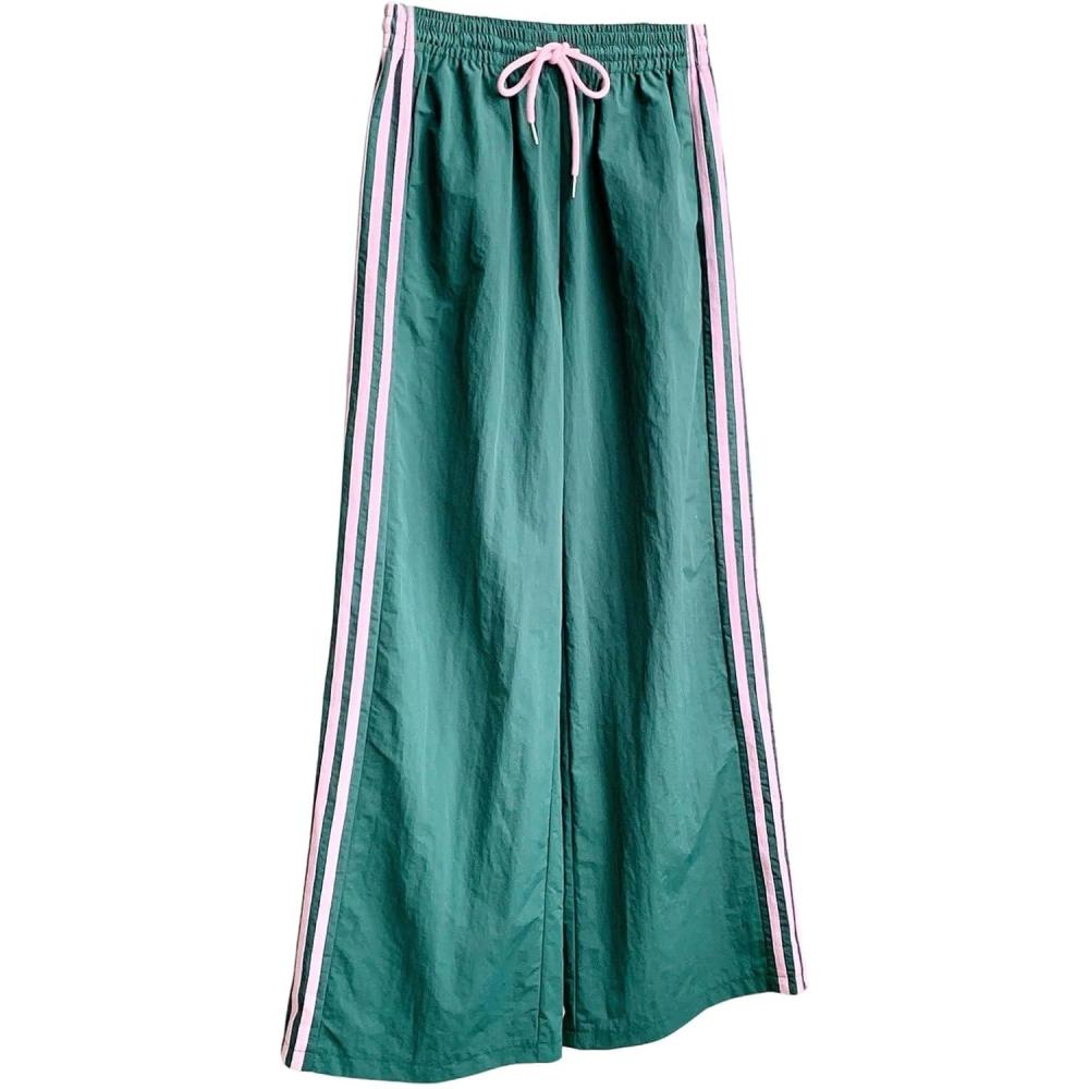 SOLY HUX Women’s Y2k Striped Side Baggy Pants Drawstring Elastic Waist Wide Leg Track Pants Streetwear(Green Striped)