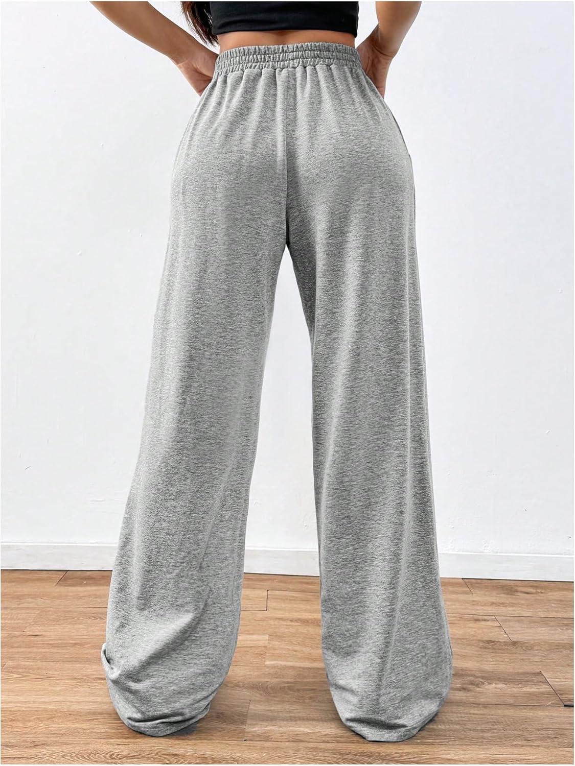 SOLY HUX Women’s Y2k Sweatpants Drawstring Waist Wide Leg Gothic Grunge Pants Streetwear(Light Grey)