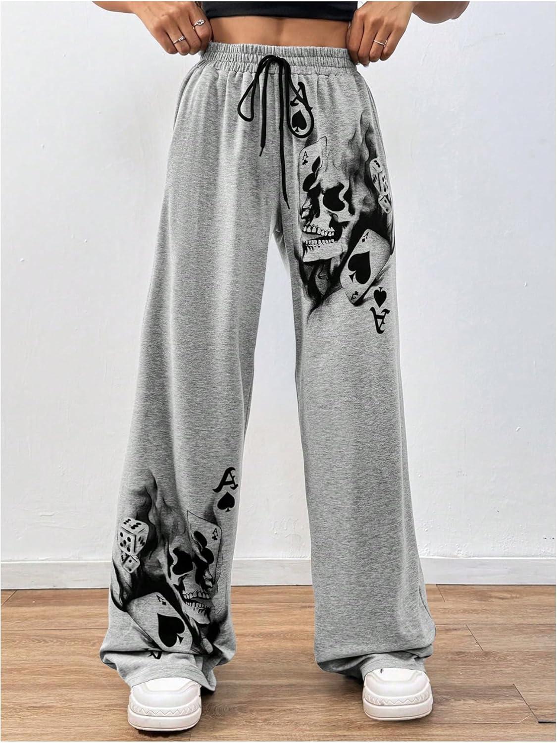 SOLY HUX Women’s Y2k Sweatpants Drawstring Waist Wide Leg Gothic Grunge Pants Streetwear(Grey Graphic)